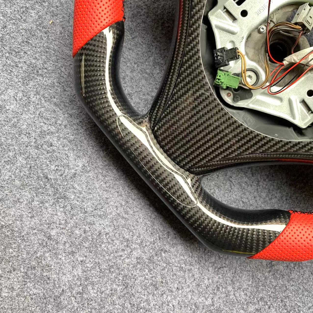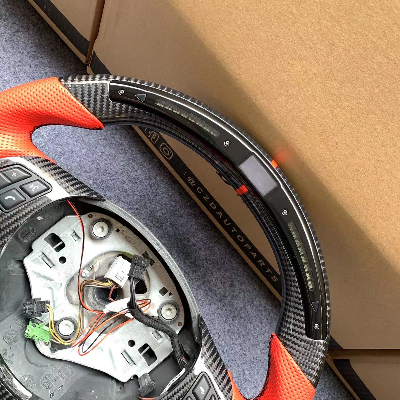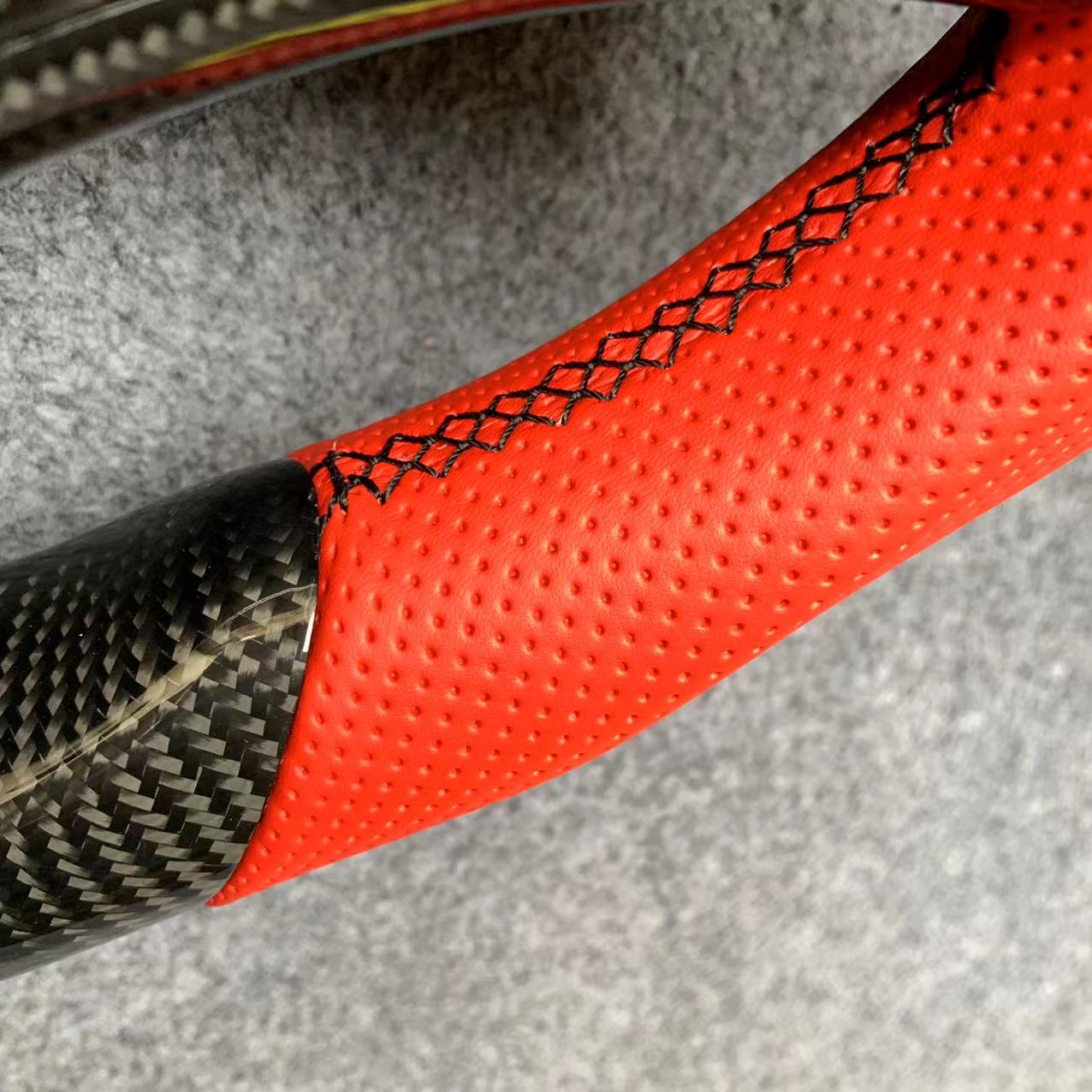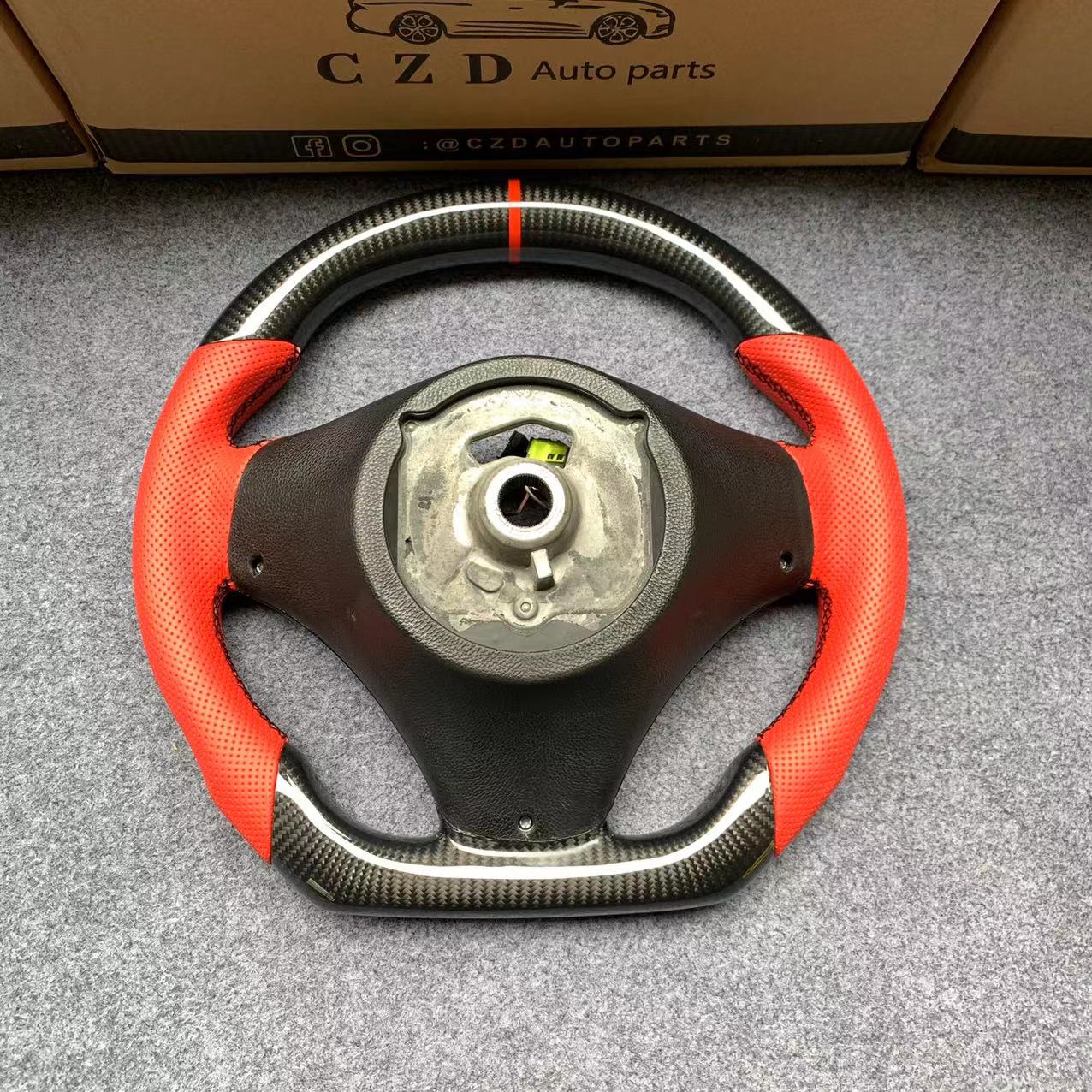 CZD auto parts for BMW M3 E90 E92 E93 2008-2013 carbon fiber steering wheel with red perforated leather side & LED
