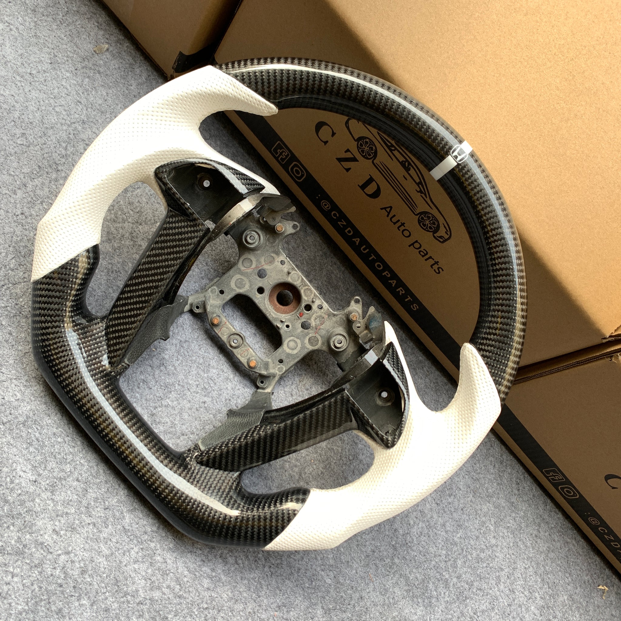 CZD auto parts for Honda Accord CP1 CP2 CP3 carbon fiber steering wheel with white perforated leather side