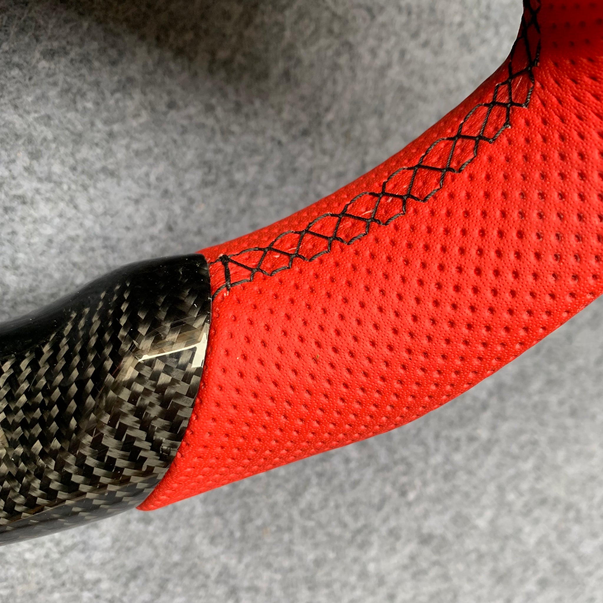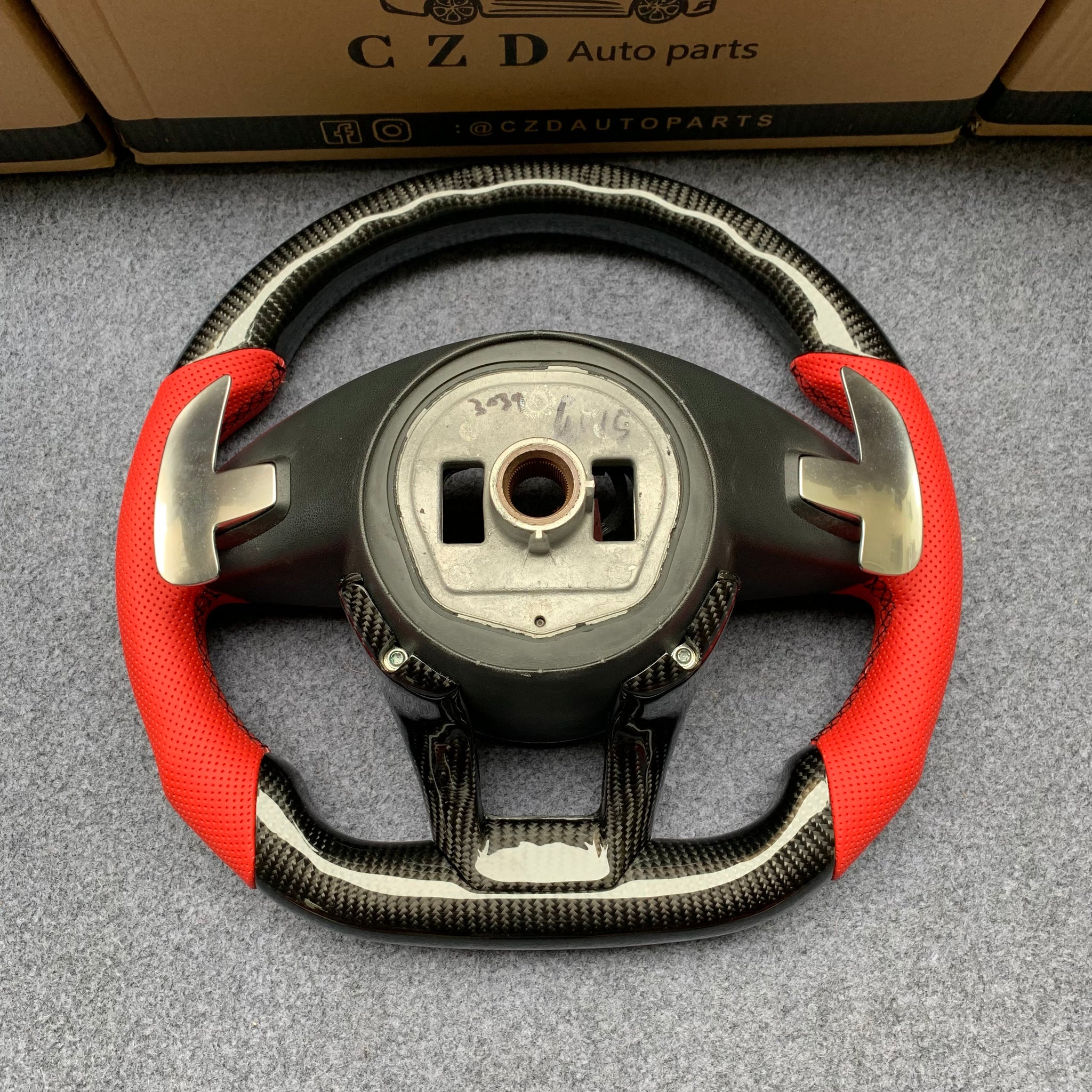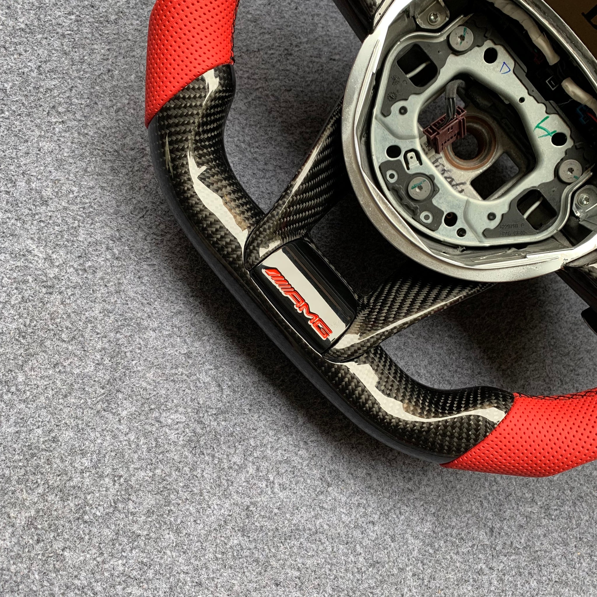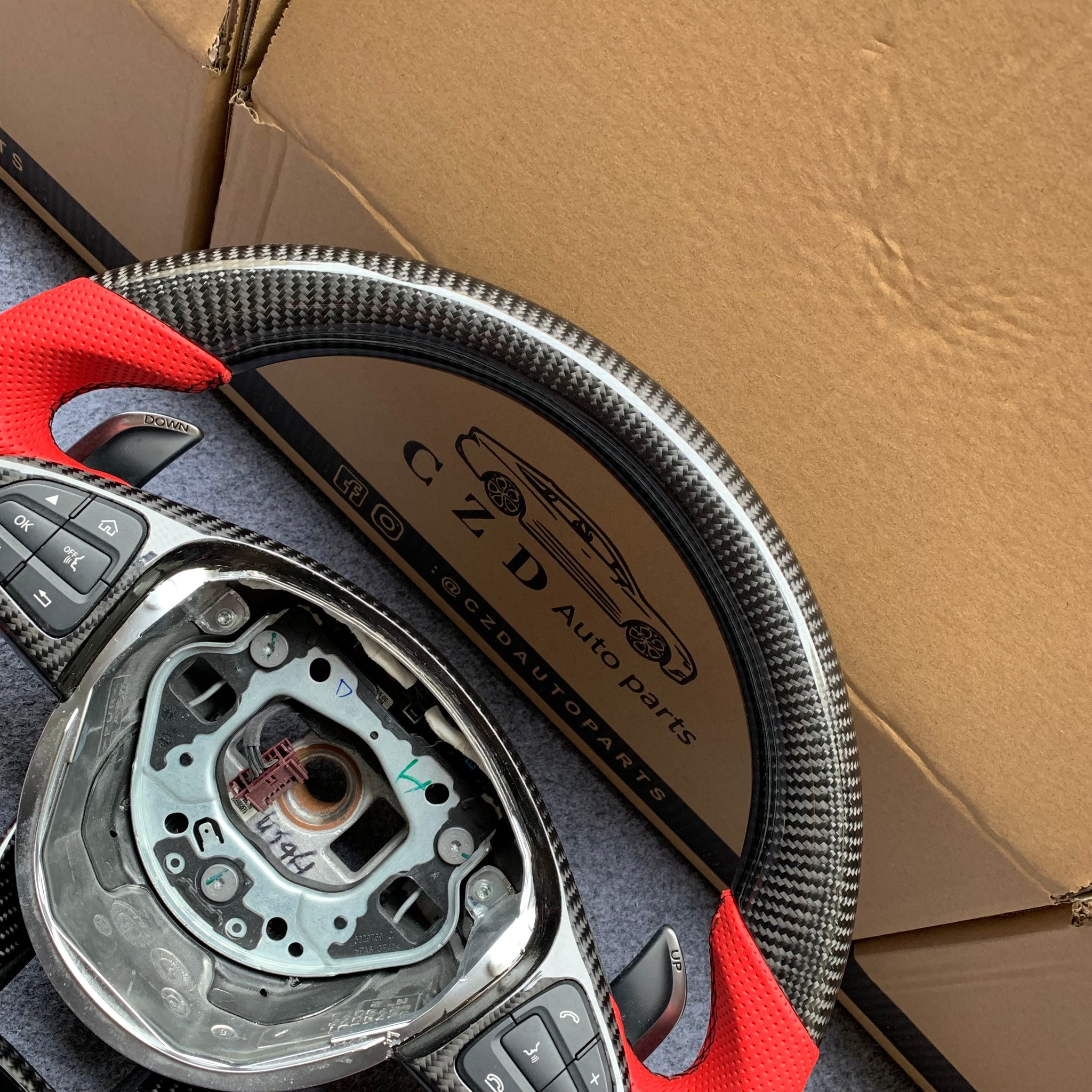 CZD auto parts for Mercedes Benz W205 AMG C43 GLA 45 C218 W213 X253 C253 W166 W222 R172 R231 carbon fiber steering wheel with red perforated leather side