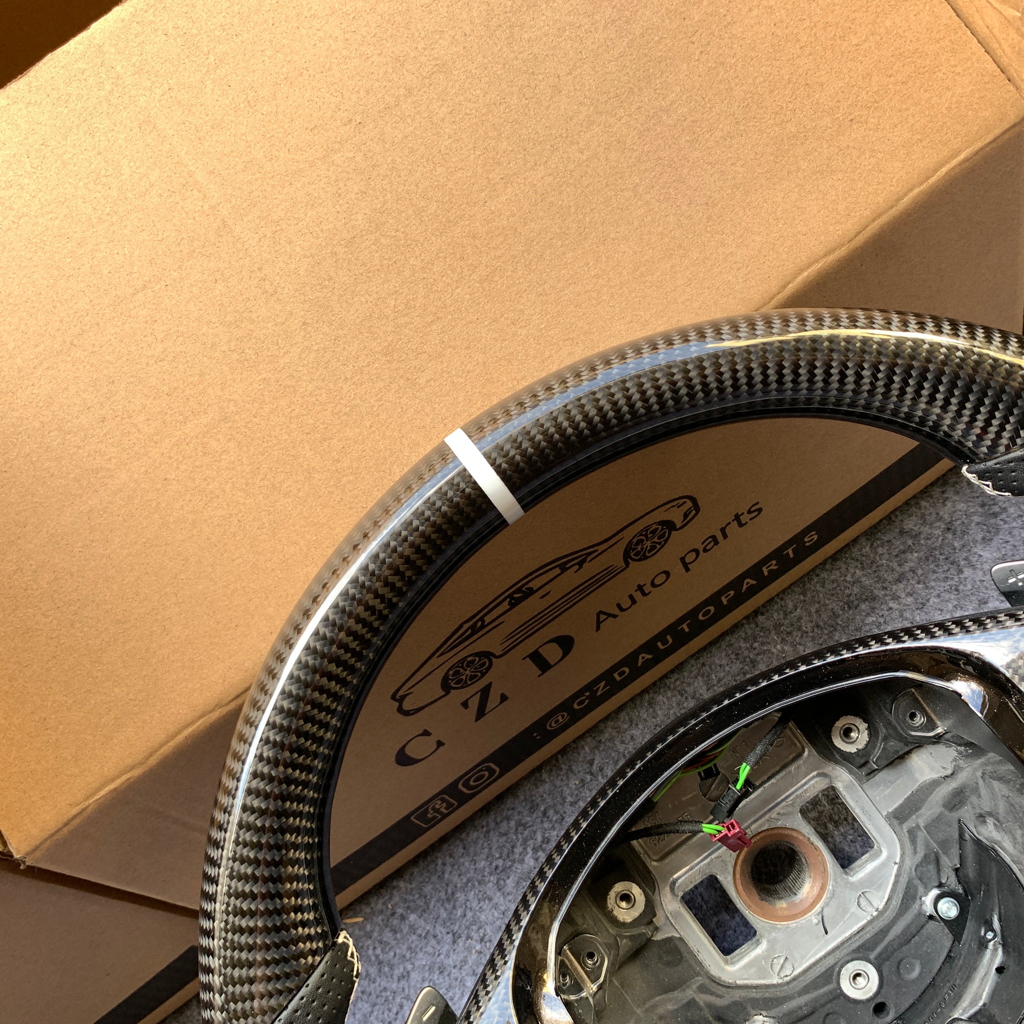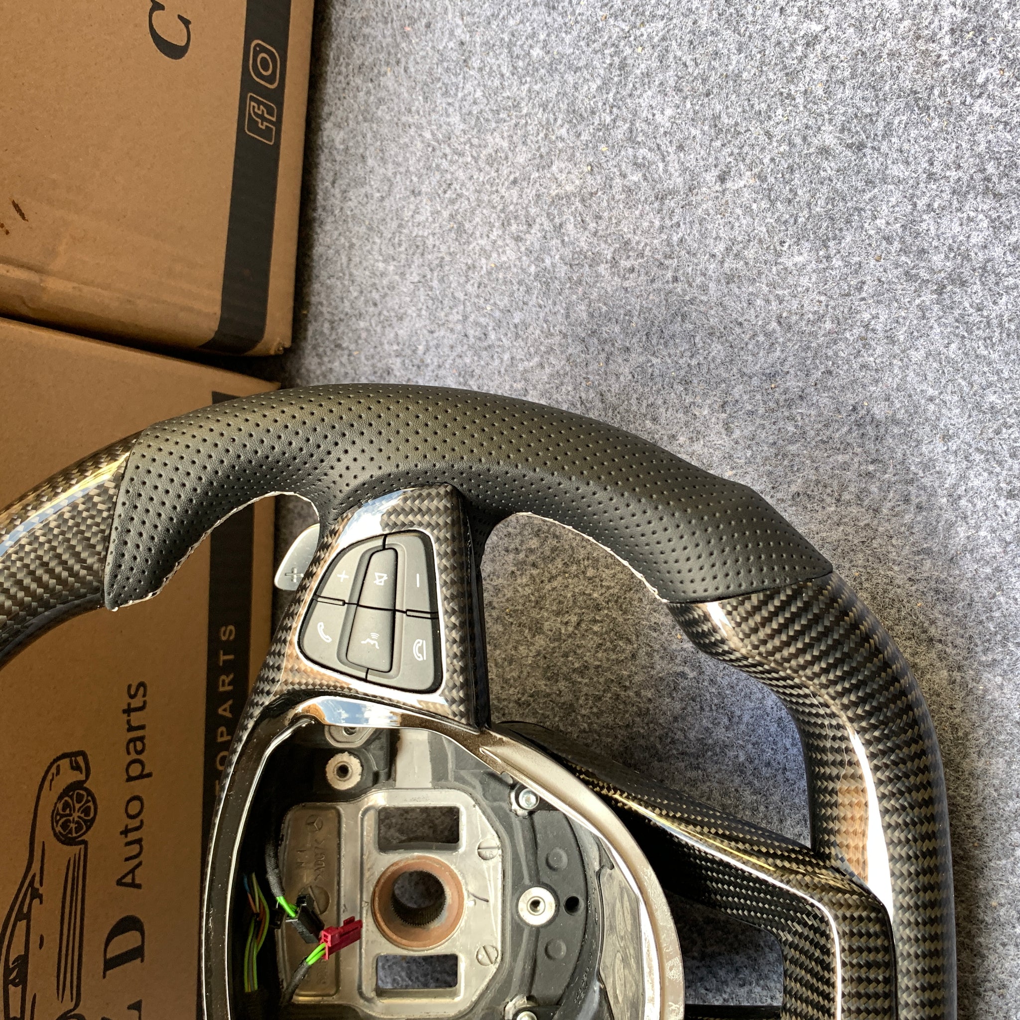 CZD auto parts for Mercedes Benz W205 AMG C43 GLA 45 C218 W213 X253 C253 W166 W222 R172 R231 carbon fiber steering wheel with smooth leather side