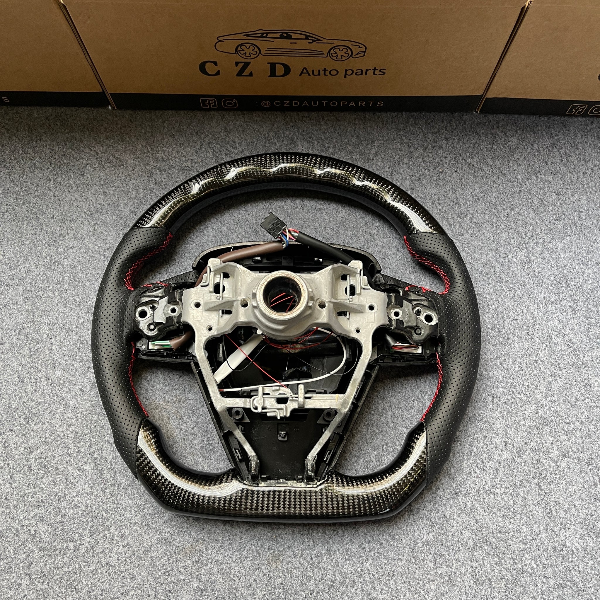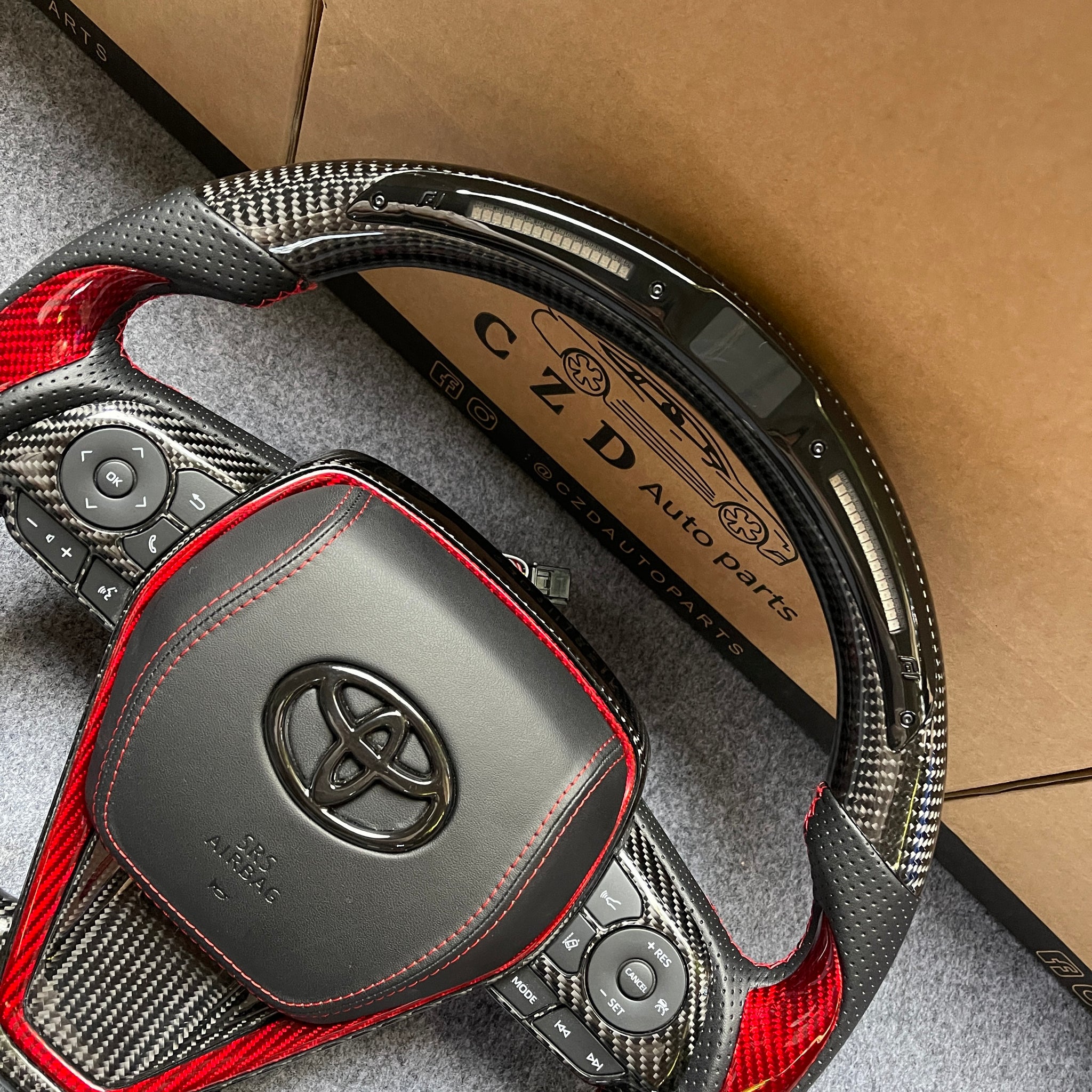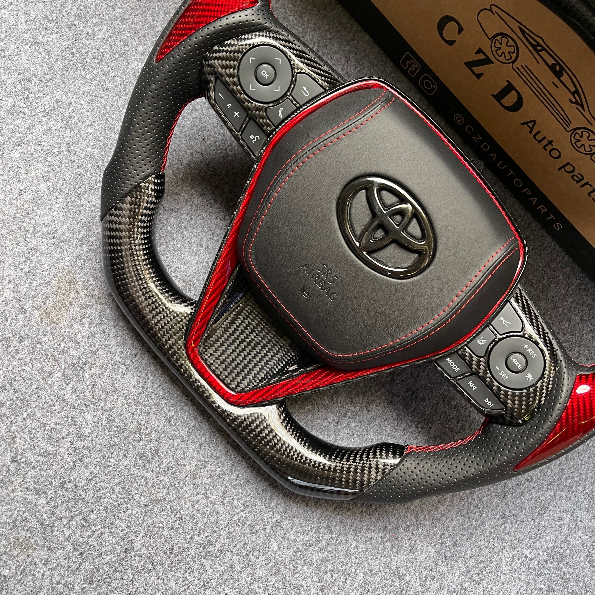 CZD autoparts for Toyota 8th gen Camry se xse le xle 2018-2022 carbon fiber steering wheel with red thumb grips