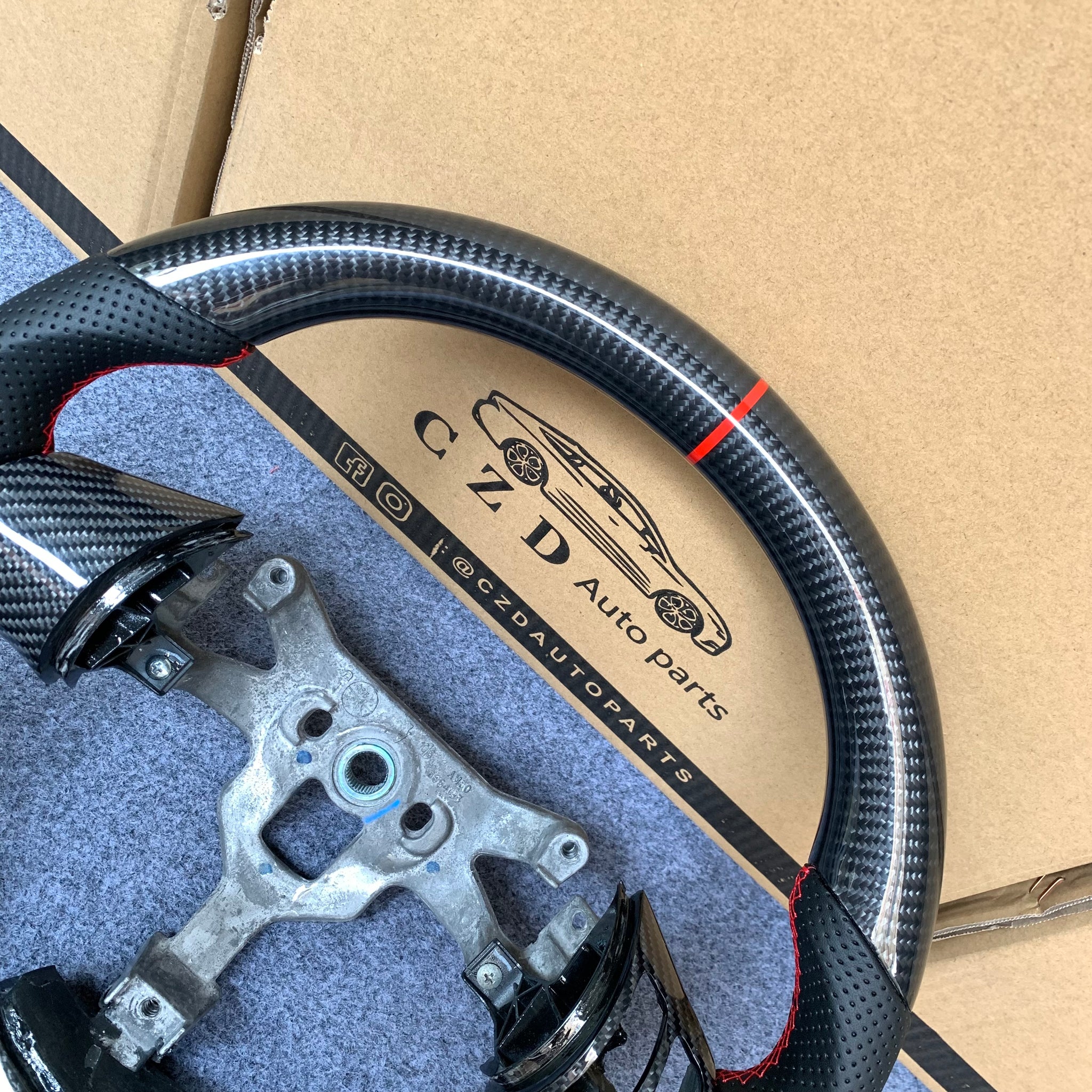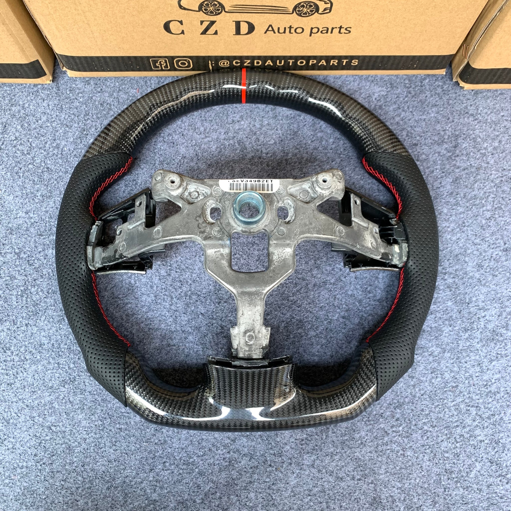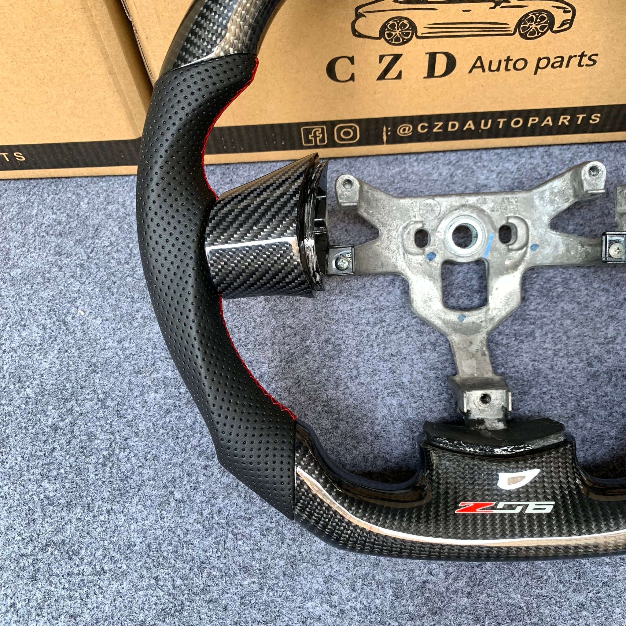 CZD autoparts for Chevrolet Corvette C6 Z06 C6 2005-2013 carbon fiber steering wheel with black perforated leather side