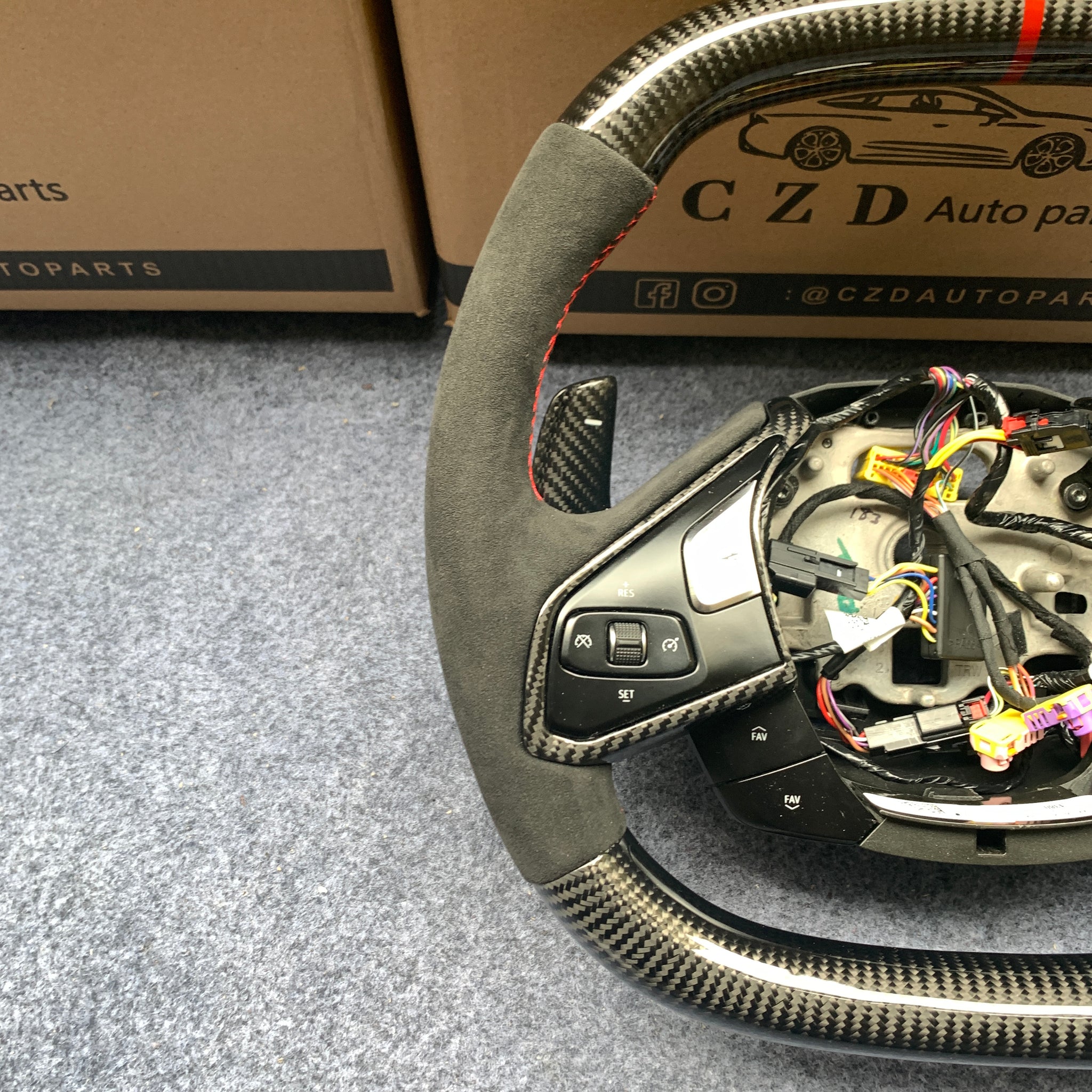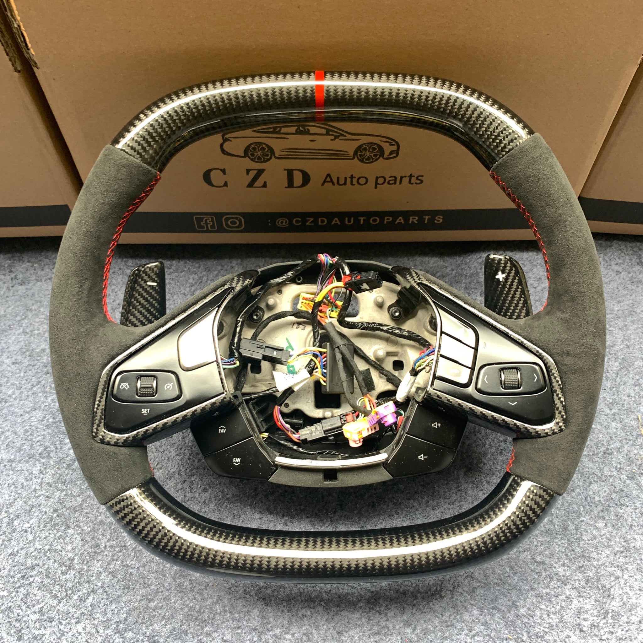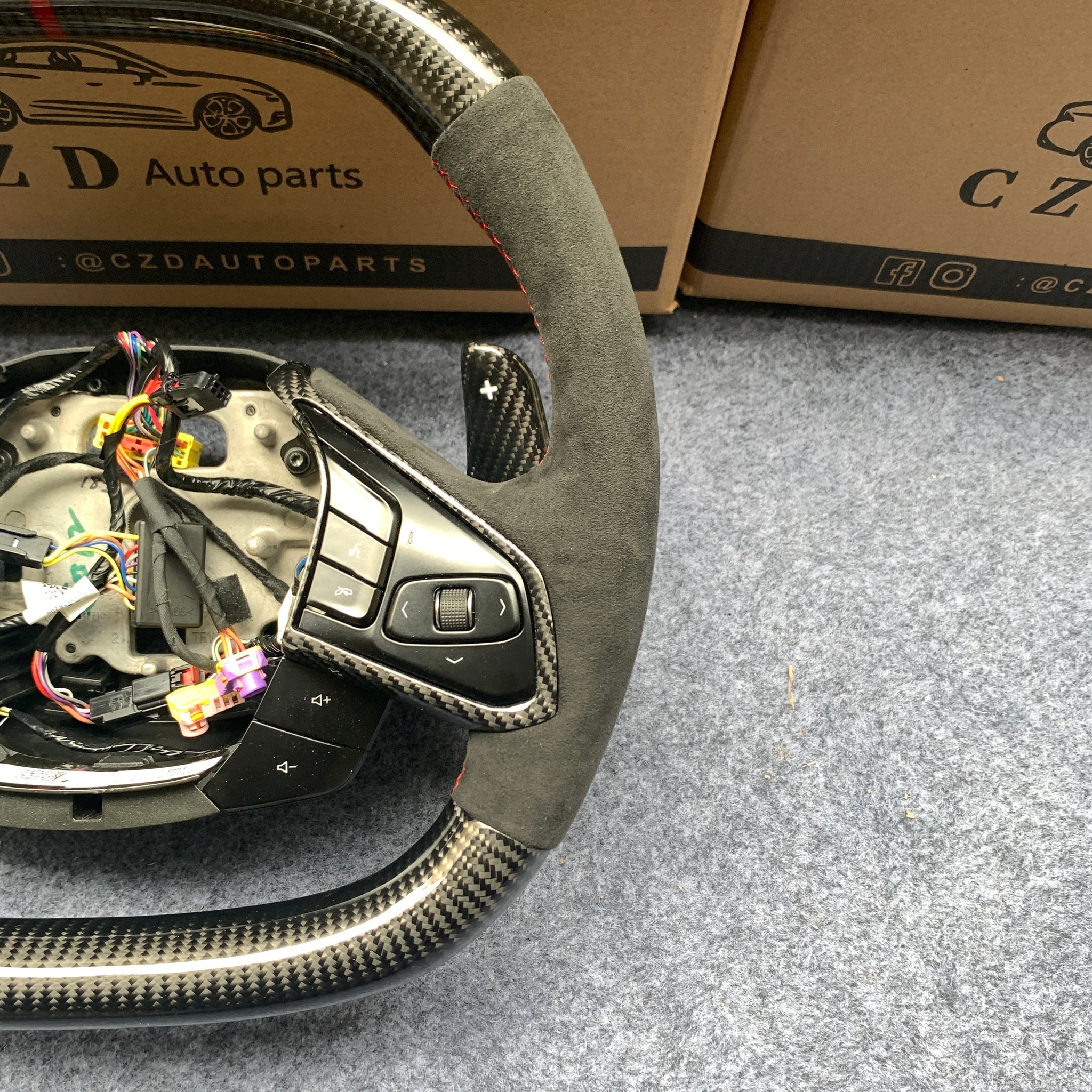 CZD auto parts carbon fiber steering wheel for Chevrolet Corvette C8 with red stitching