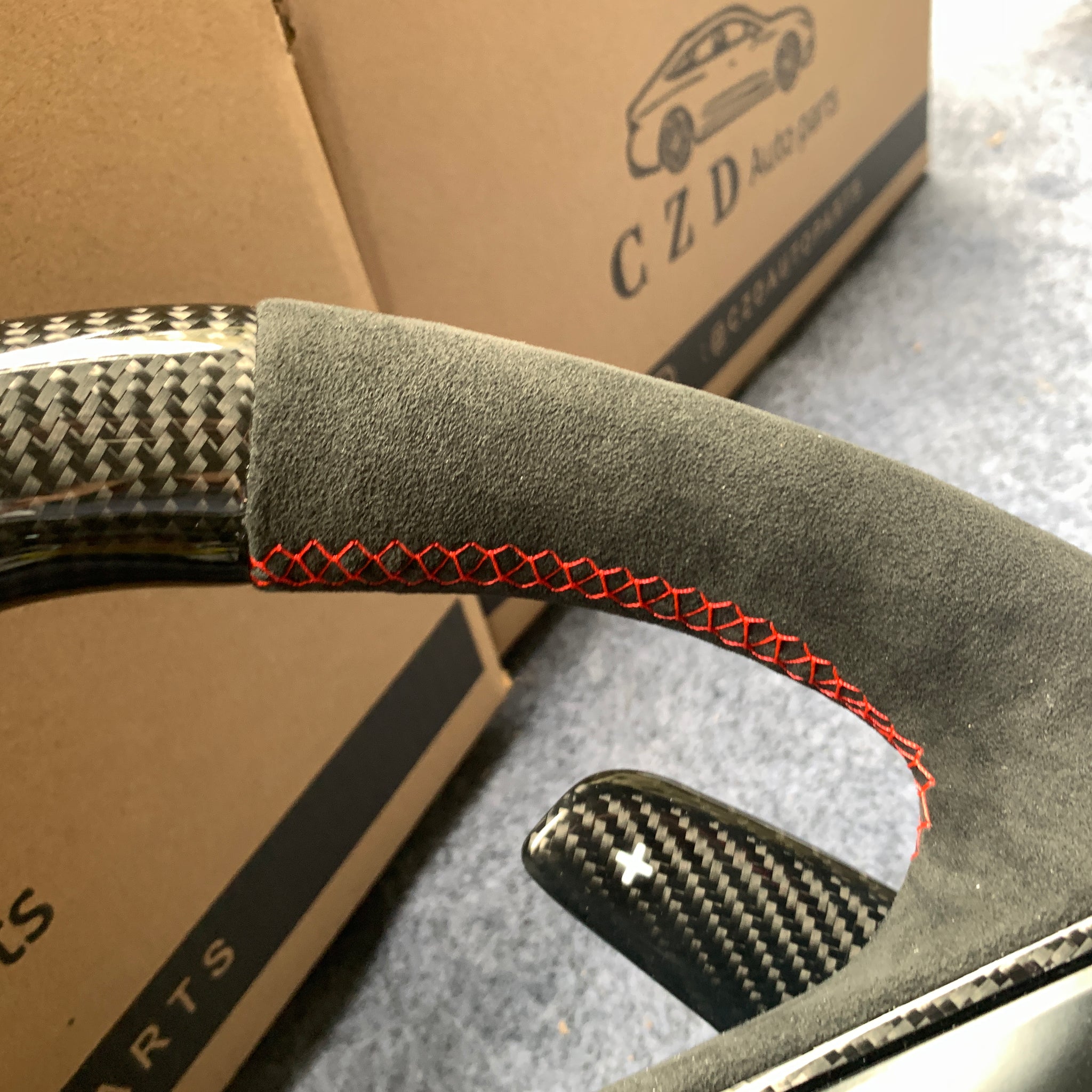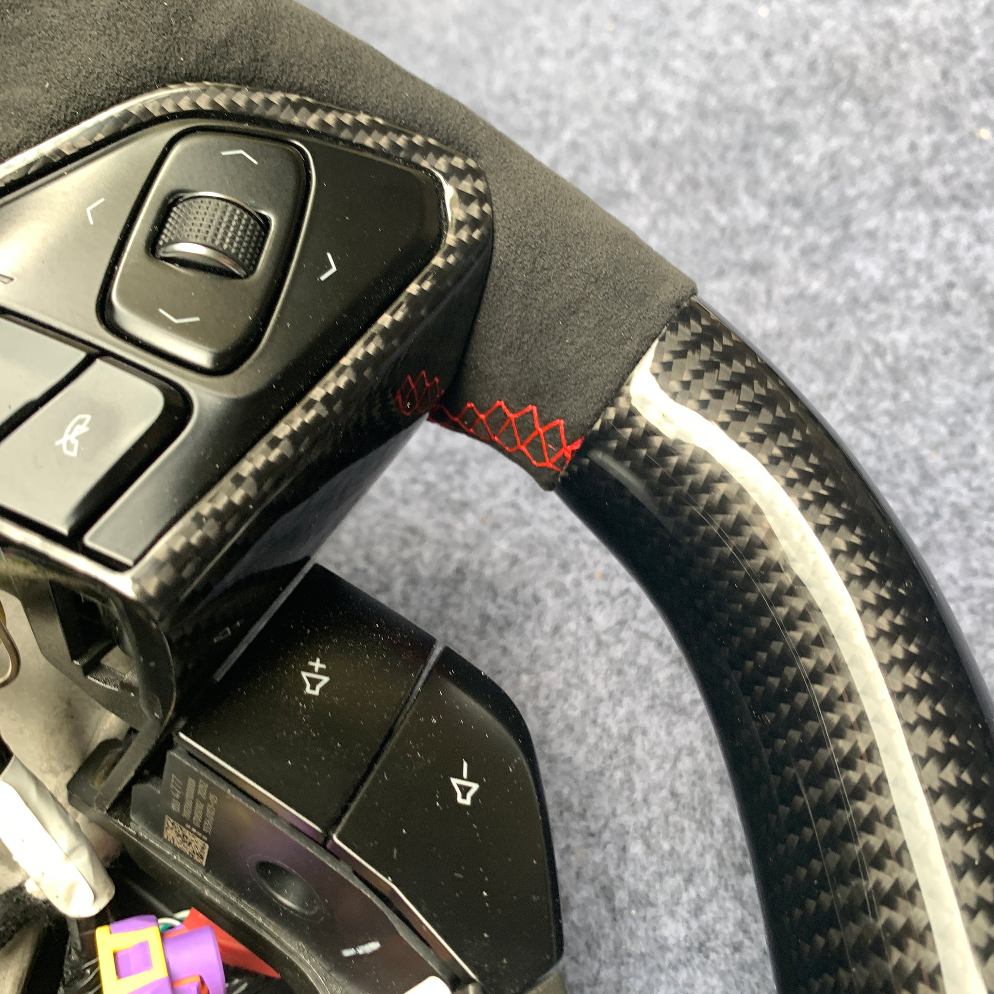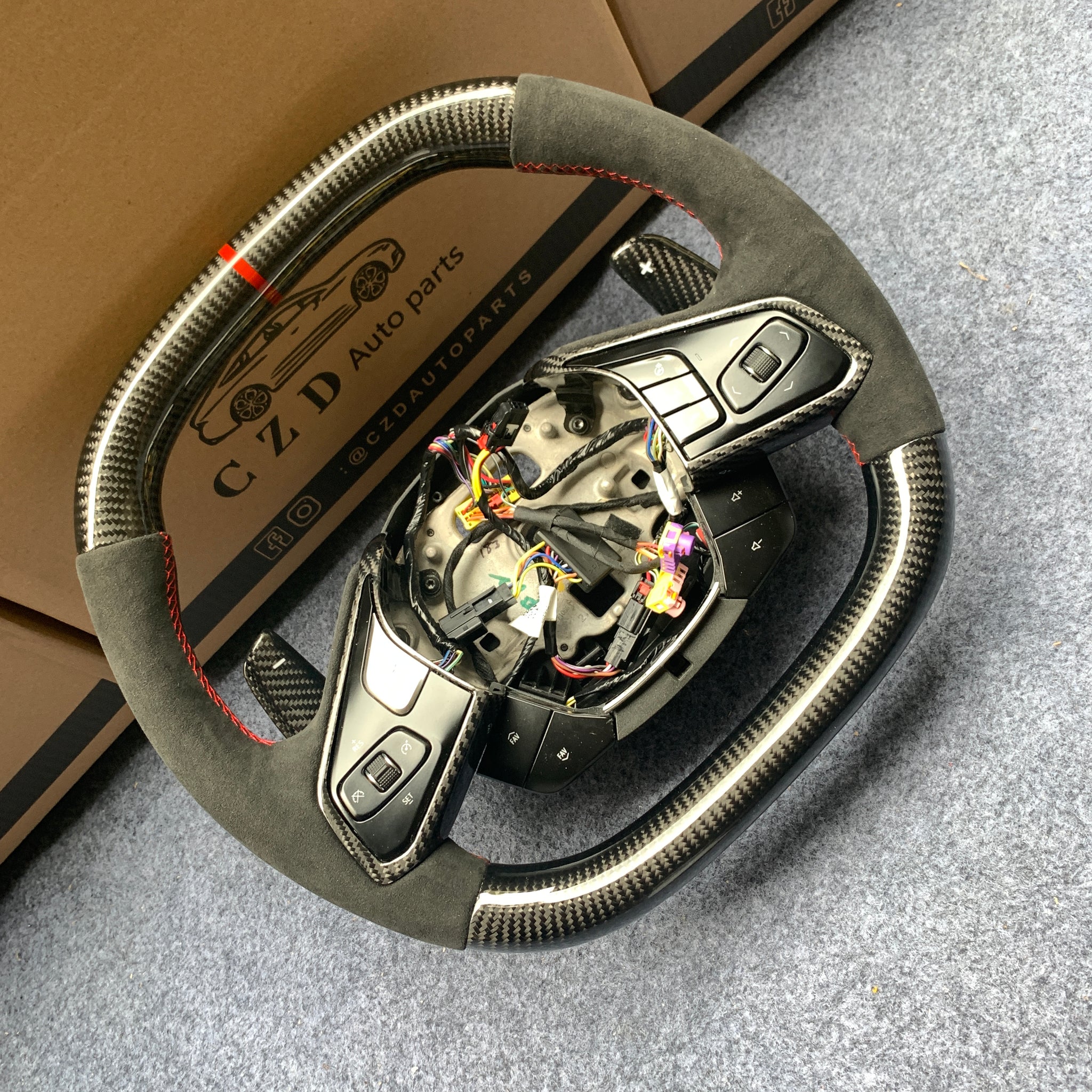 CZD auto parts carbon fiber steering wheel for Chevrolet Corvette C8 with red stitching