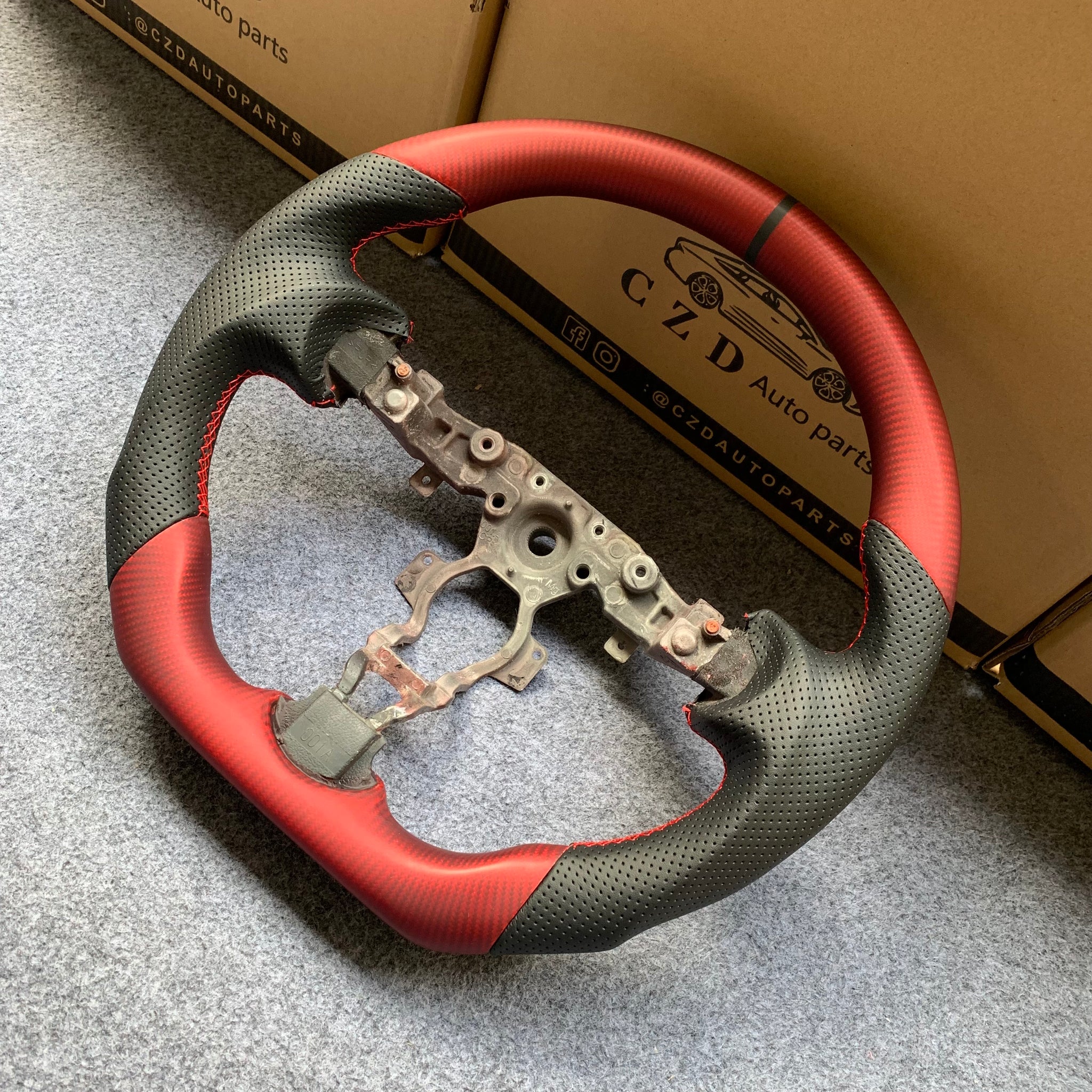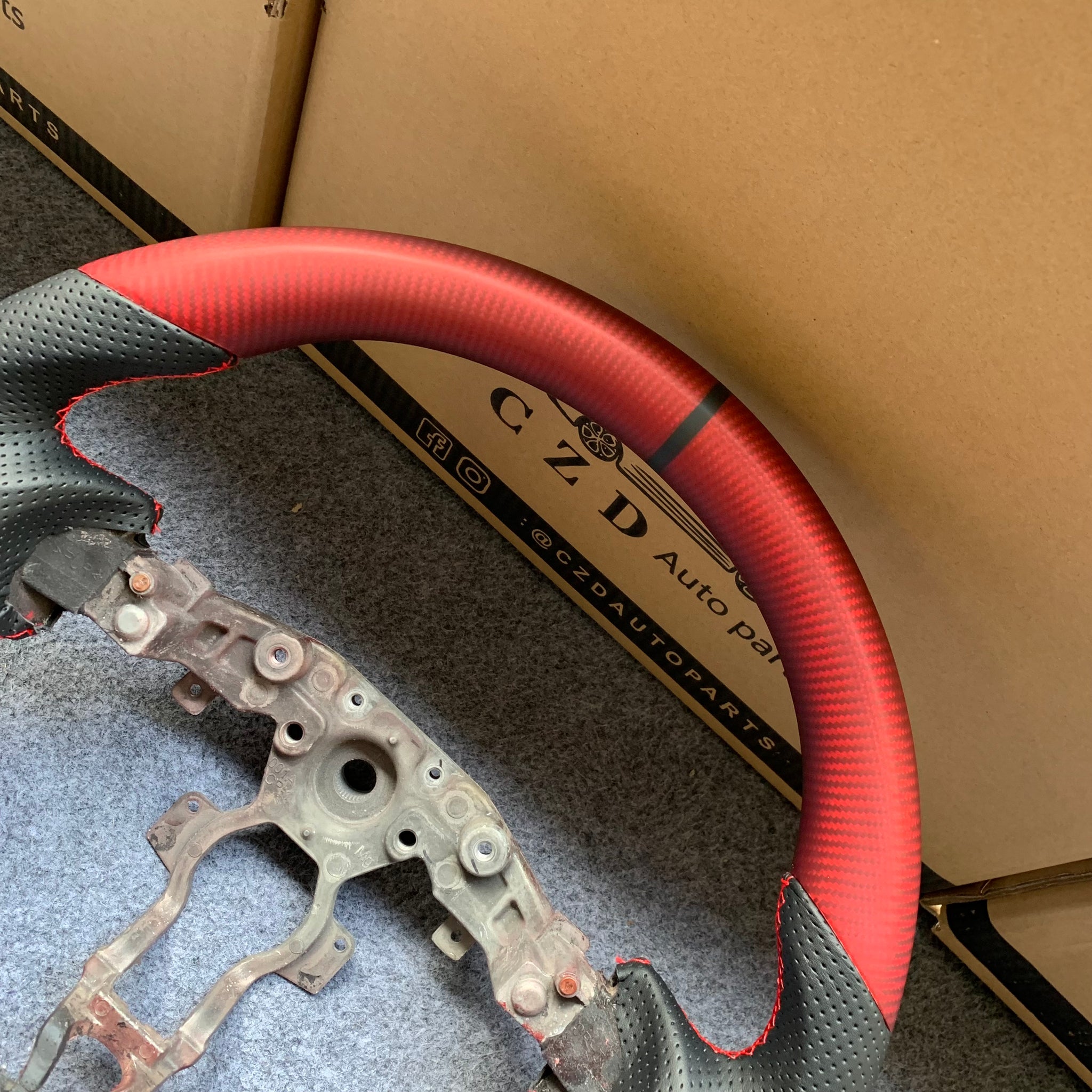 CZD autoparts for Nissan 7th gen Maxima 2009-2014 carbon fiber steering wheel  with red smooth leather top & bottom