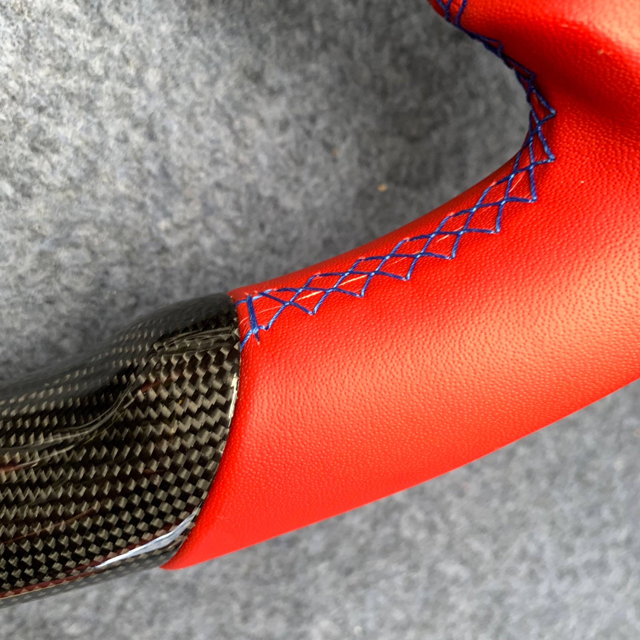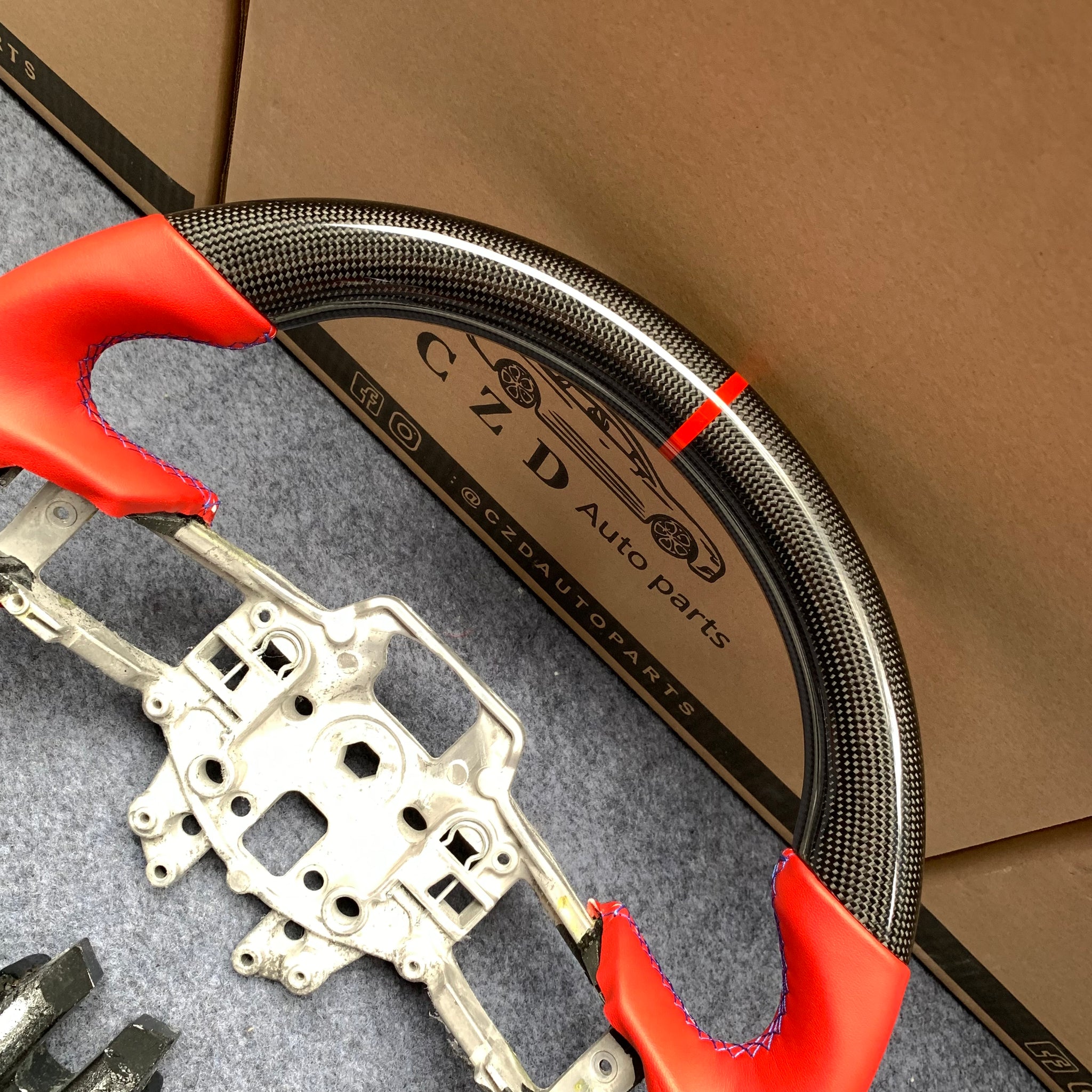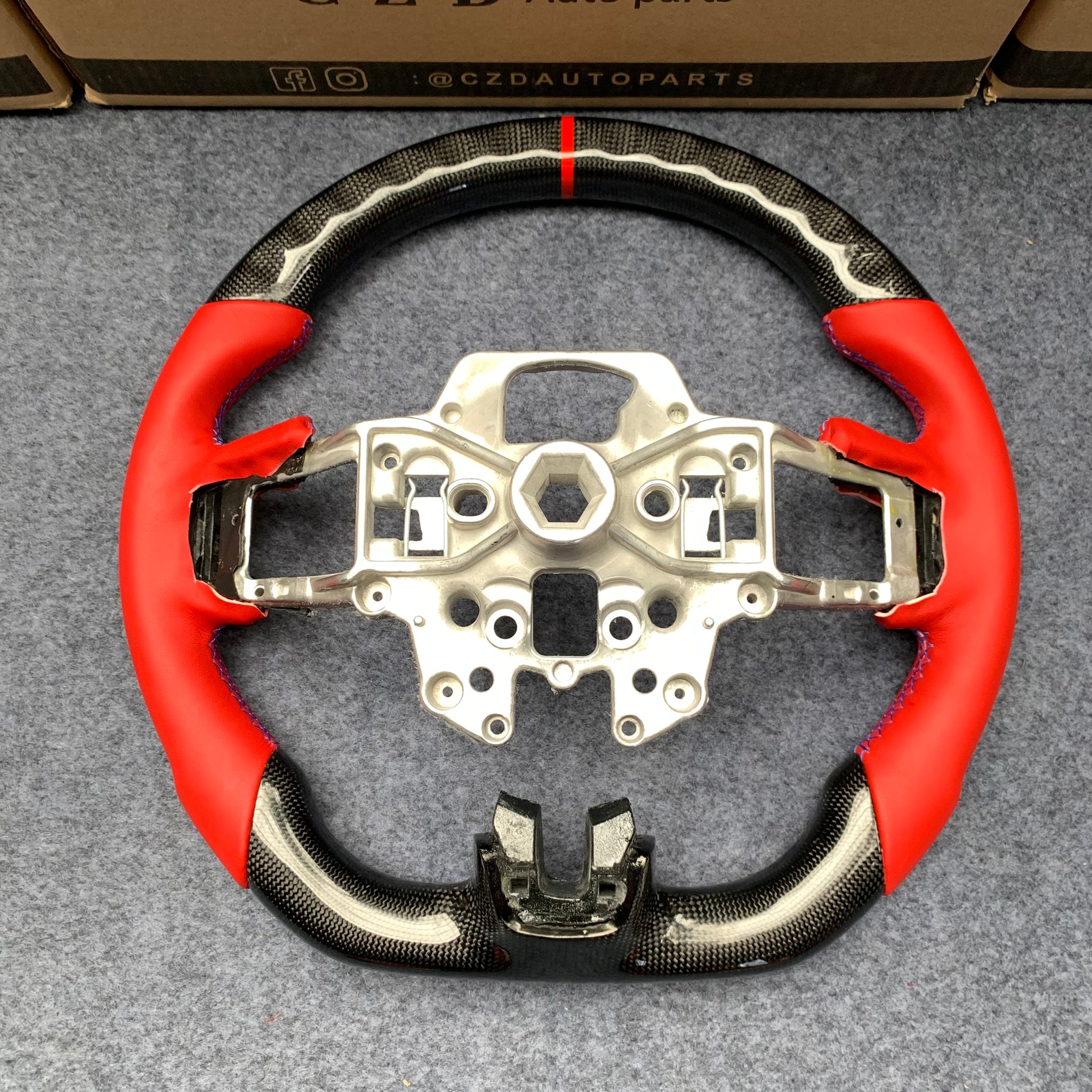 CZD autoparts for Ford Mustang 2015-2017 carbon fiber steering wheel with red smooth leather