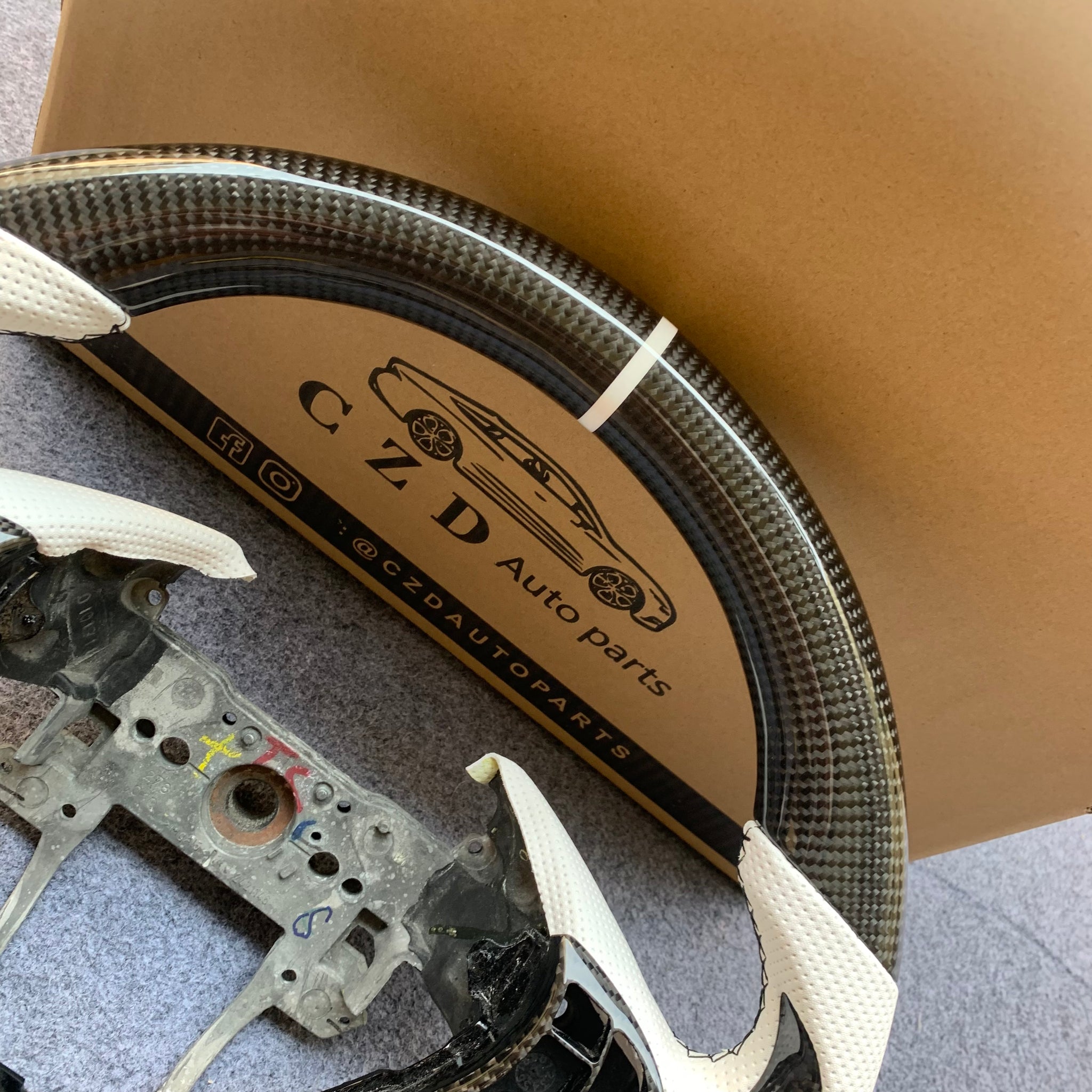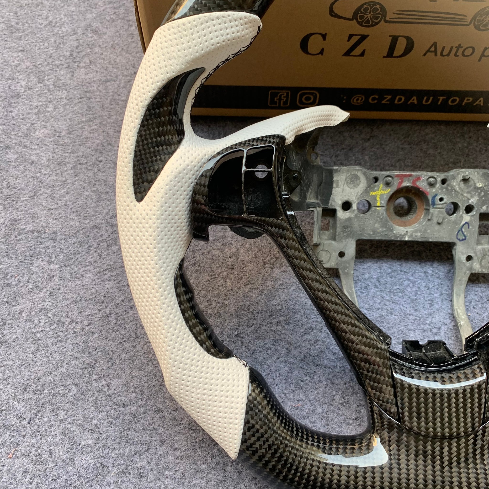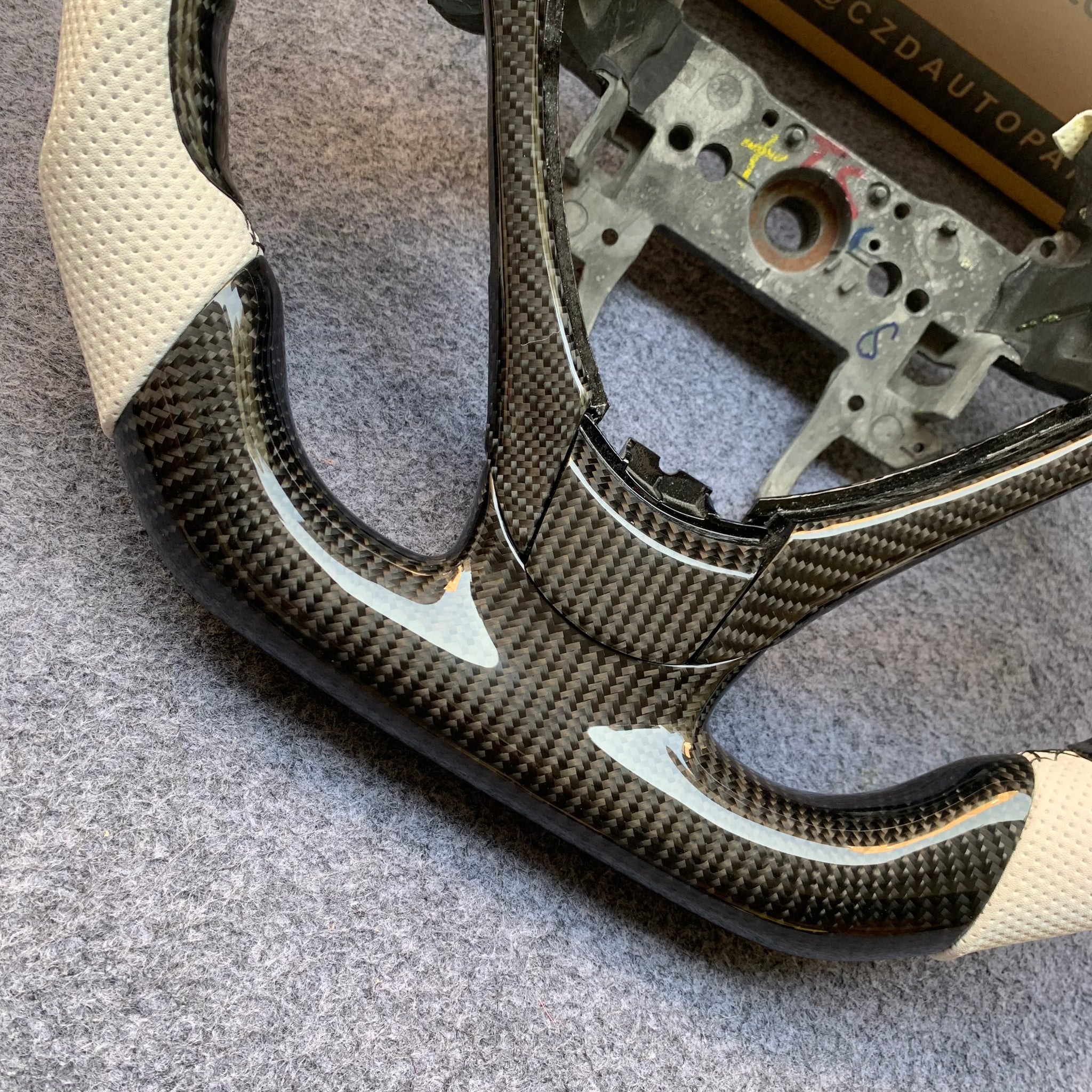 CZD autoparts for Acura ZDX 2009-2012 carbon fiber steering wheel with white perforated leather side