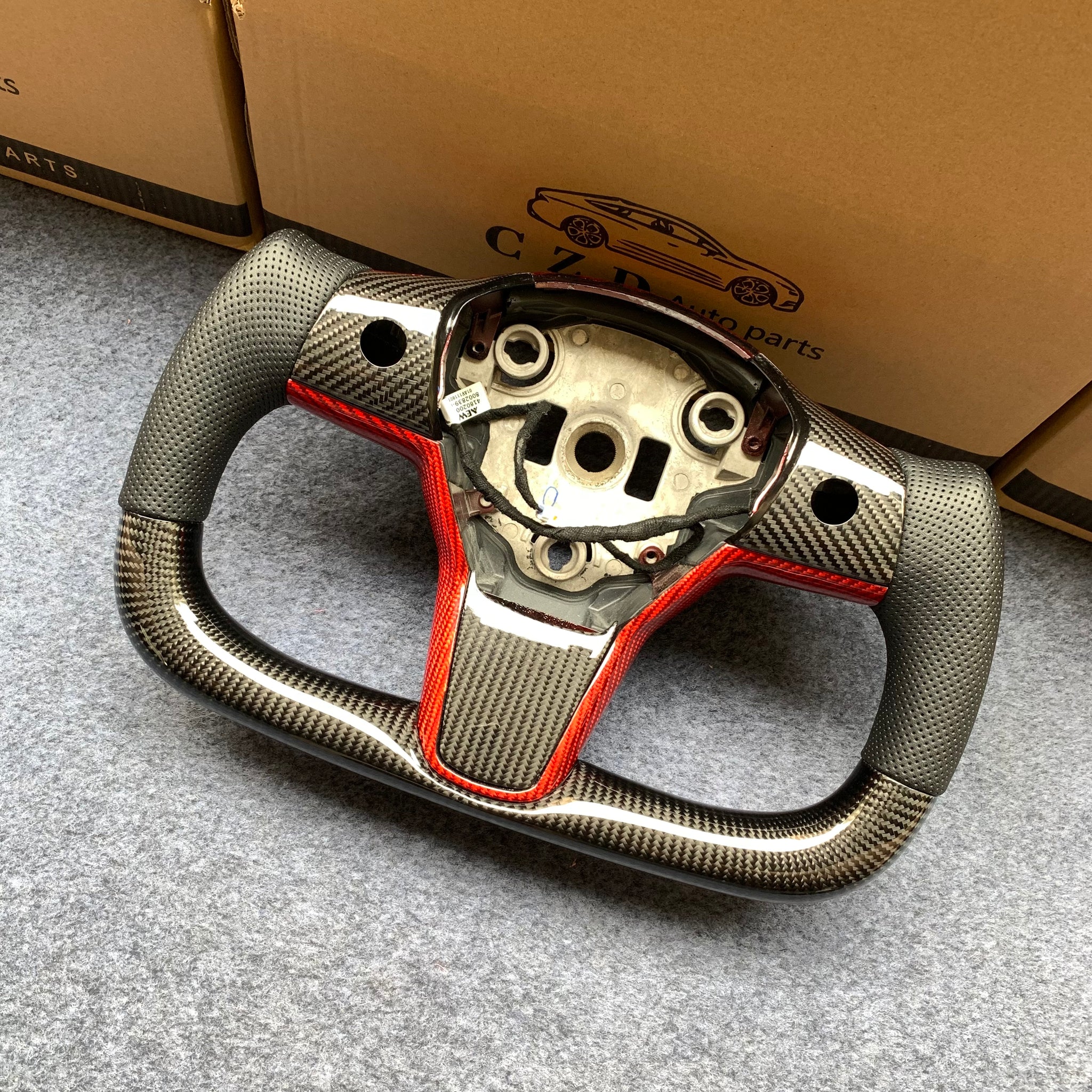 CZD auto parts for Tesla Model Y 2020-2021 carbon fiber steering wheel with yoke shape