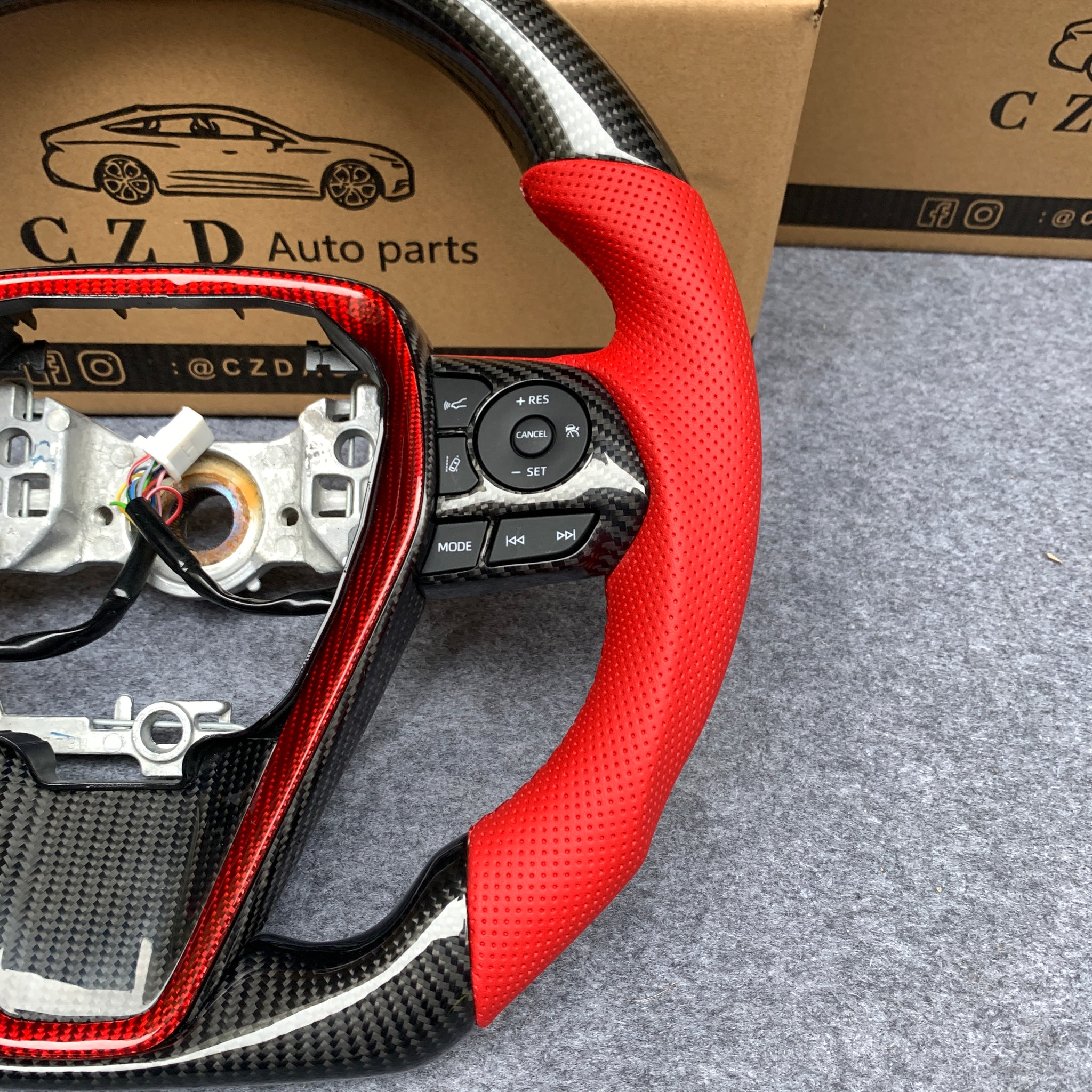 CZD For 8th Gen 2018/2019/2020/2021 Toyota Camry/SE/XSE/TRD carbon fiber steering wheel with red stitching