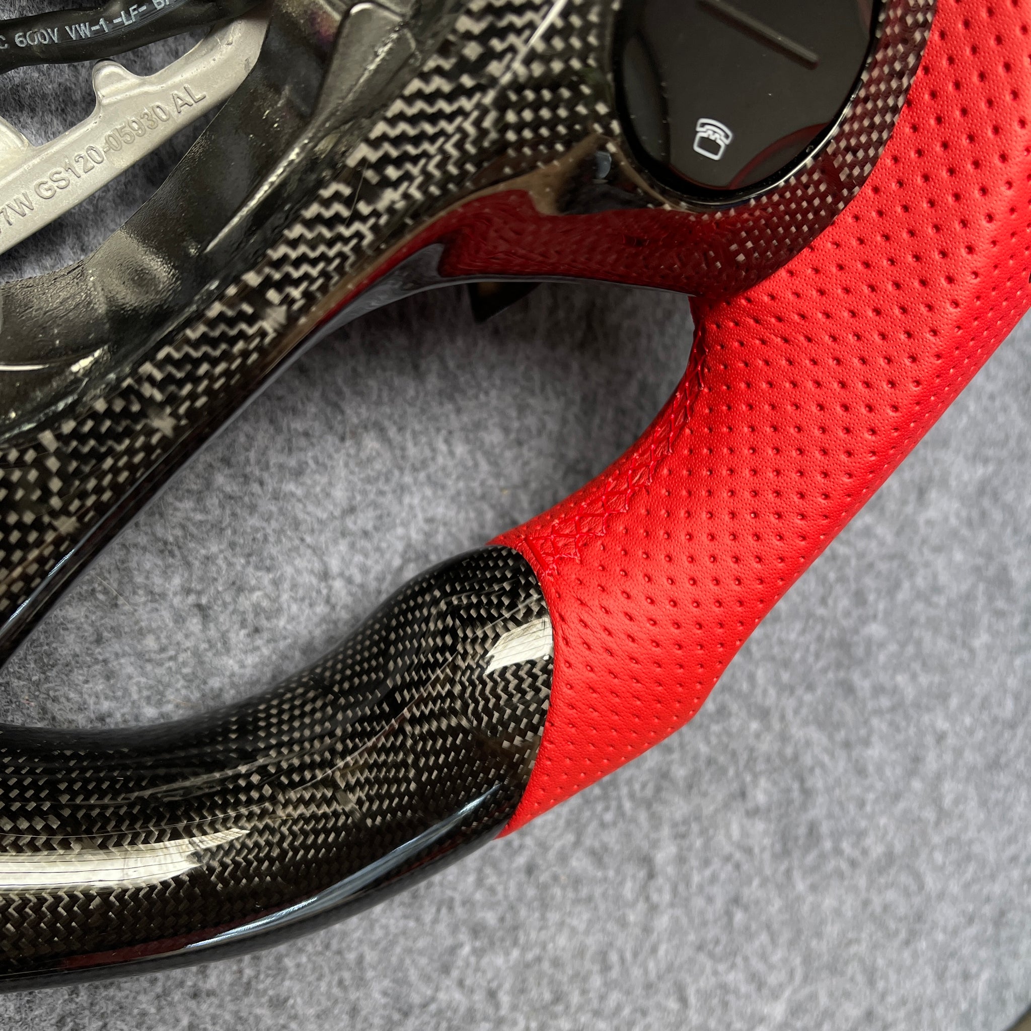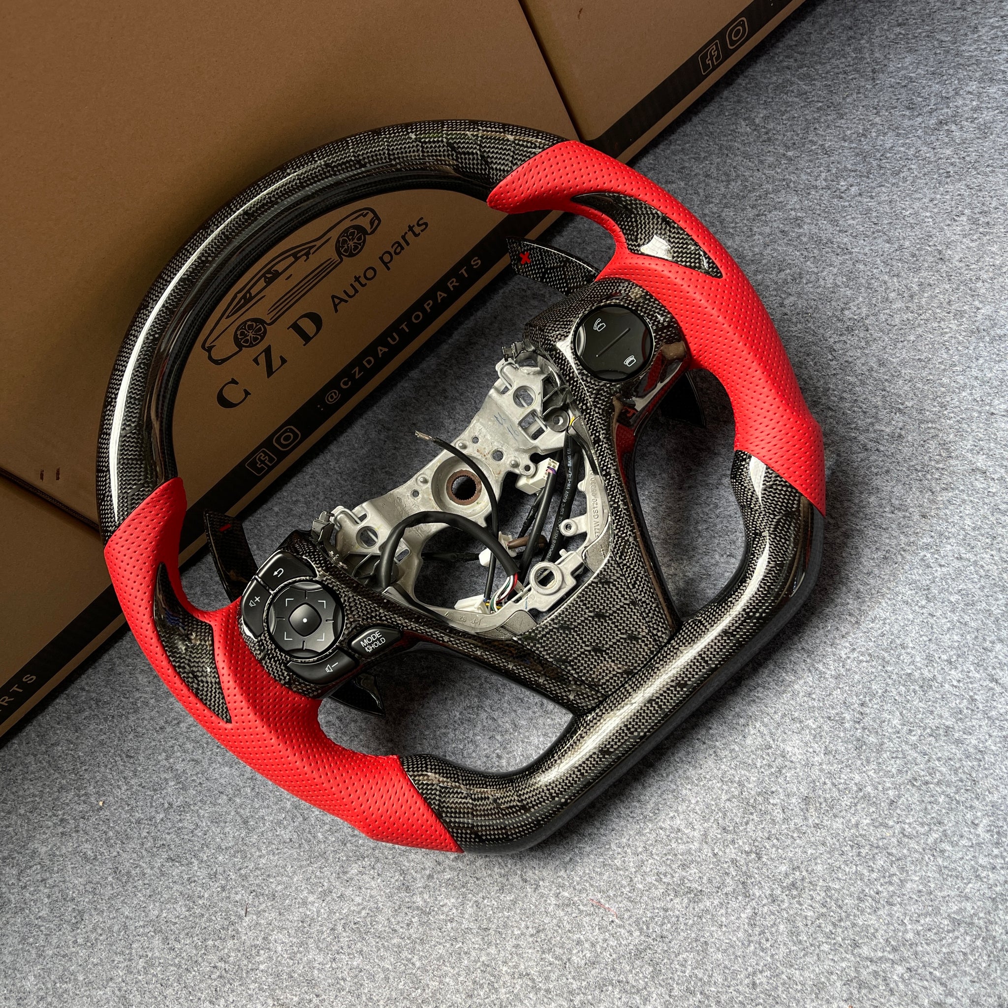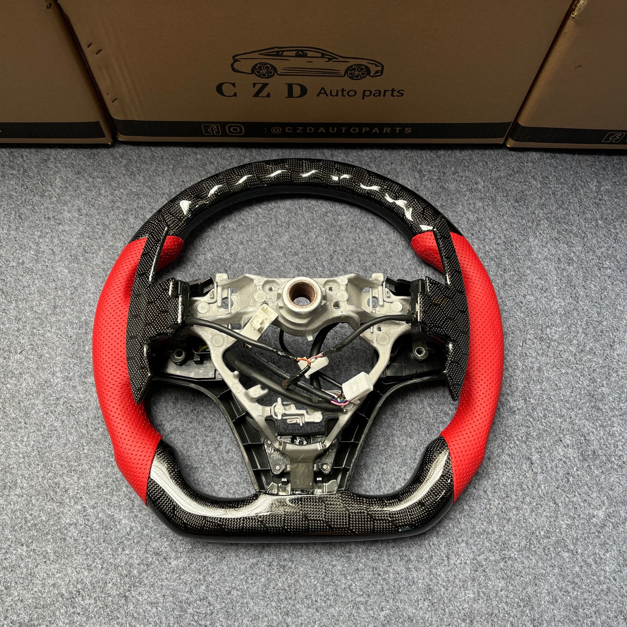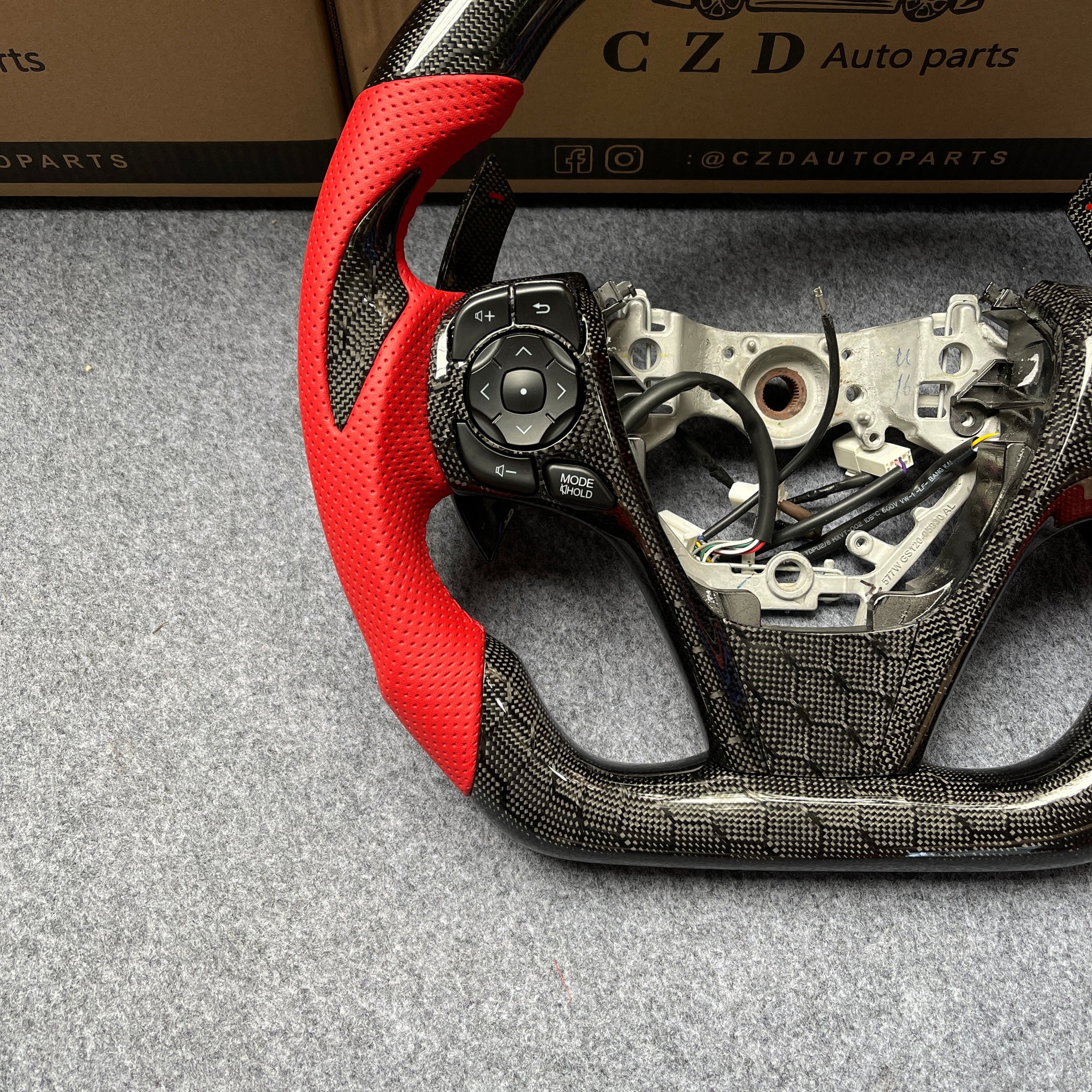 CZD auto parts for Toyota Camry with 3spoke 2012-2014 carbon fiber steering wheel with red perforated leather side