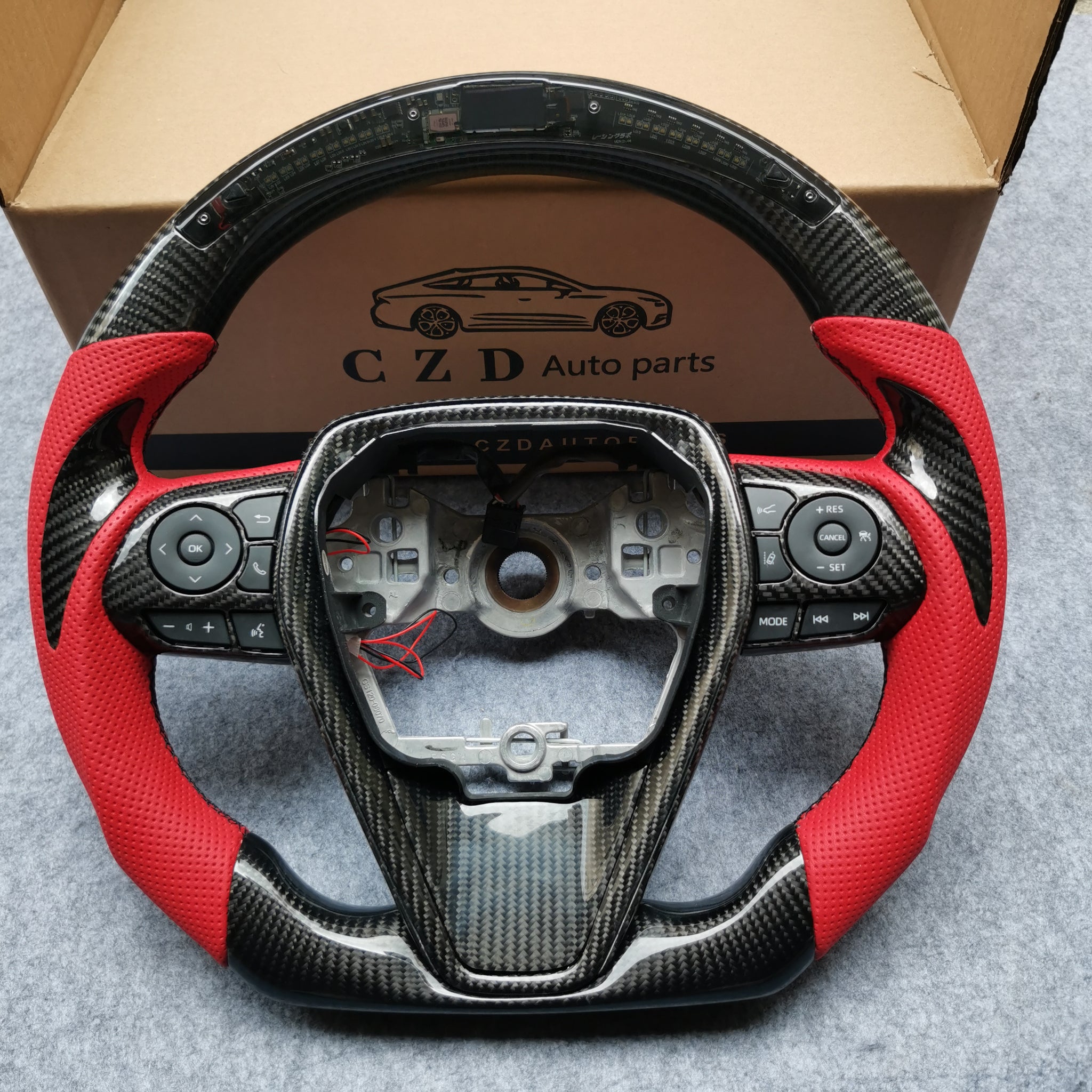 CZD For 8th 2018/2019/2020/2021 Toyota camry/SE/XSE/TRD carbon fiber steering wheel with gloss black carbon fiber top&bottom