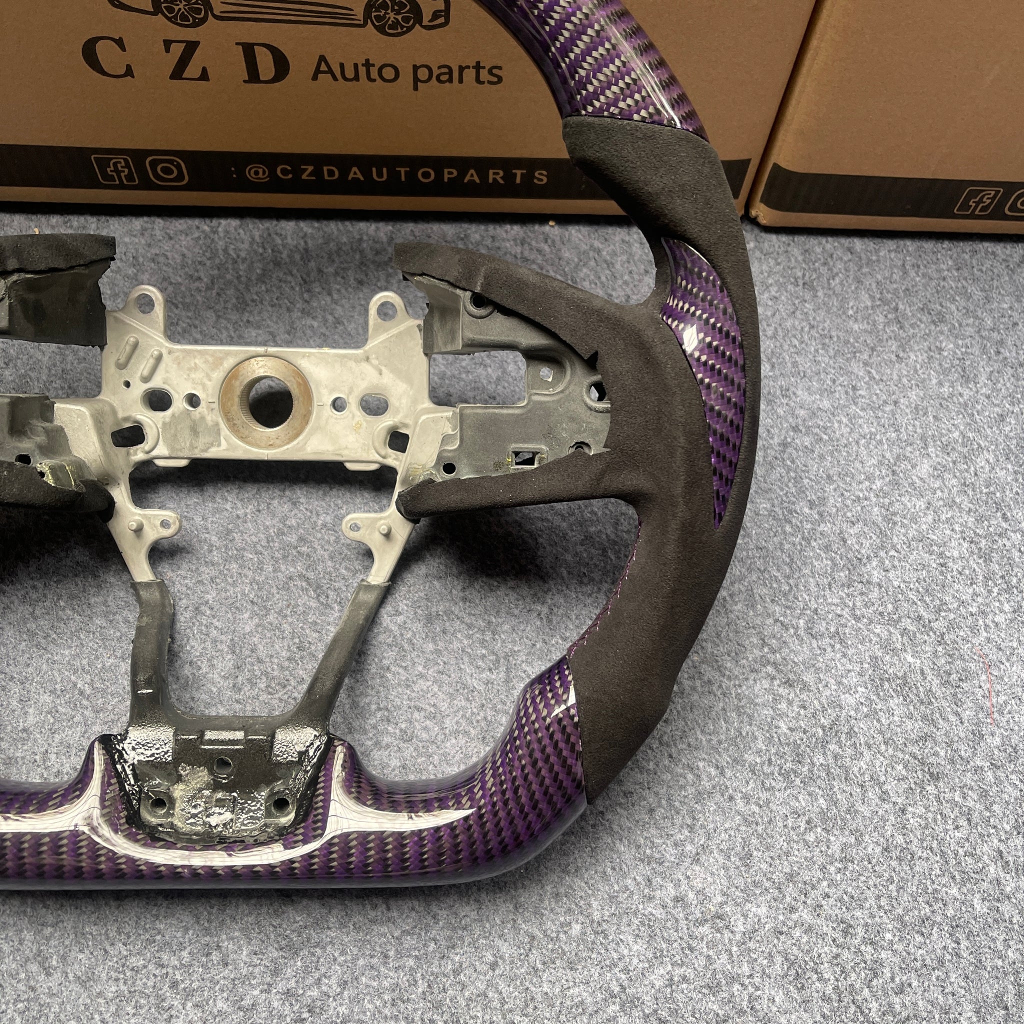 czd auto parts for Honda 10th gen Civic SI 2016-2021 carbon fiber steering wheel with gloss purple carbon fiber & alcantara leather side