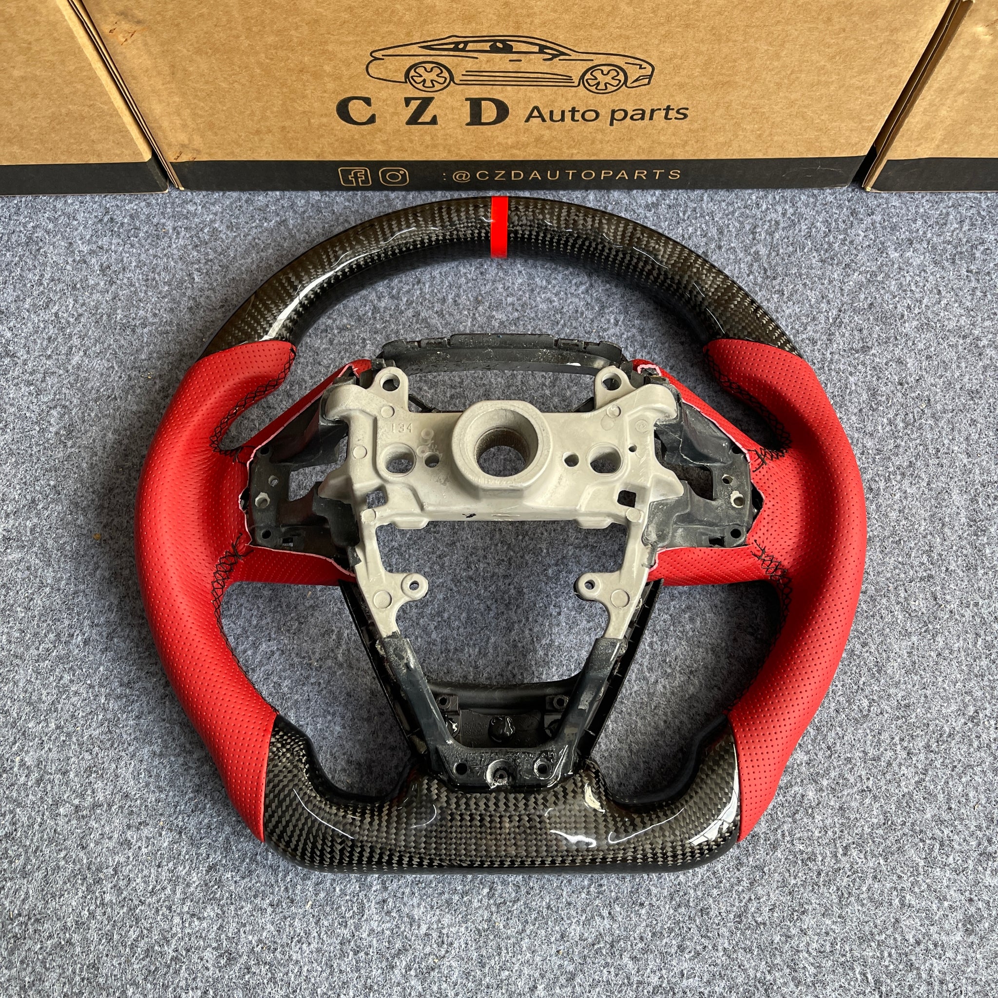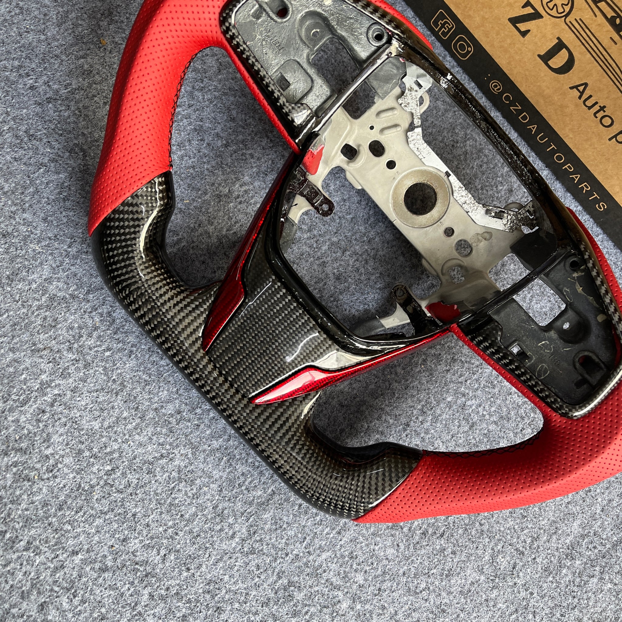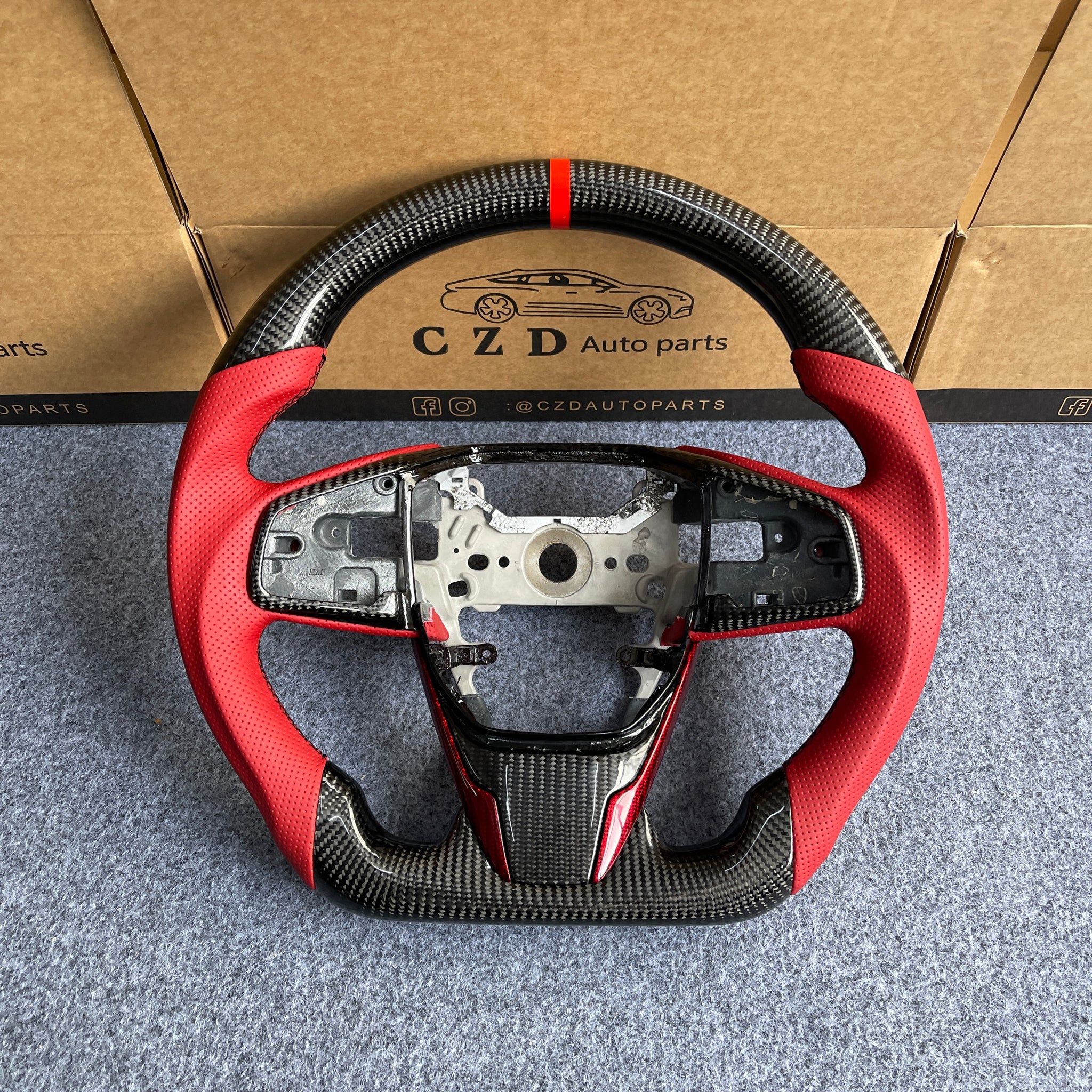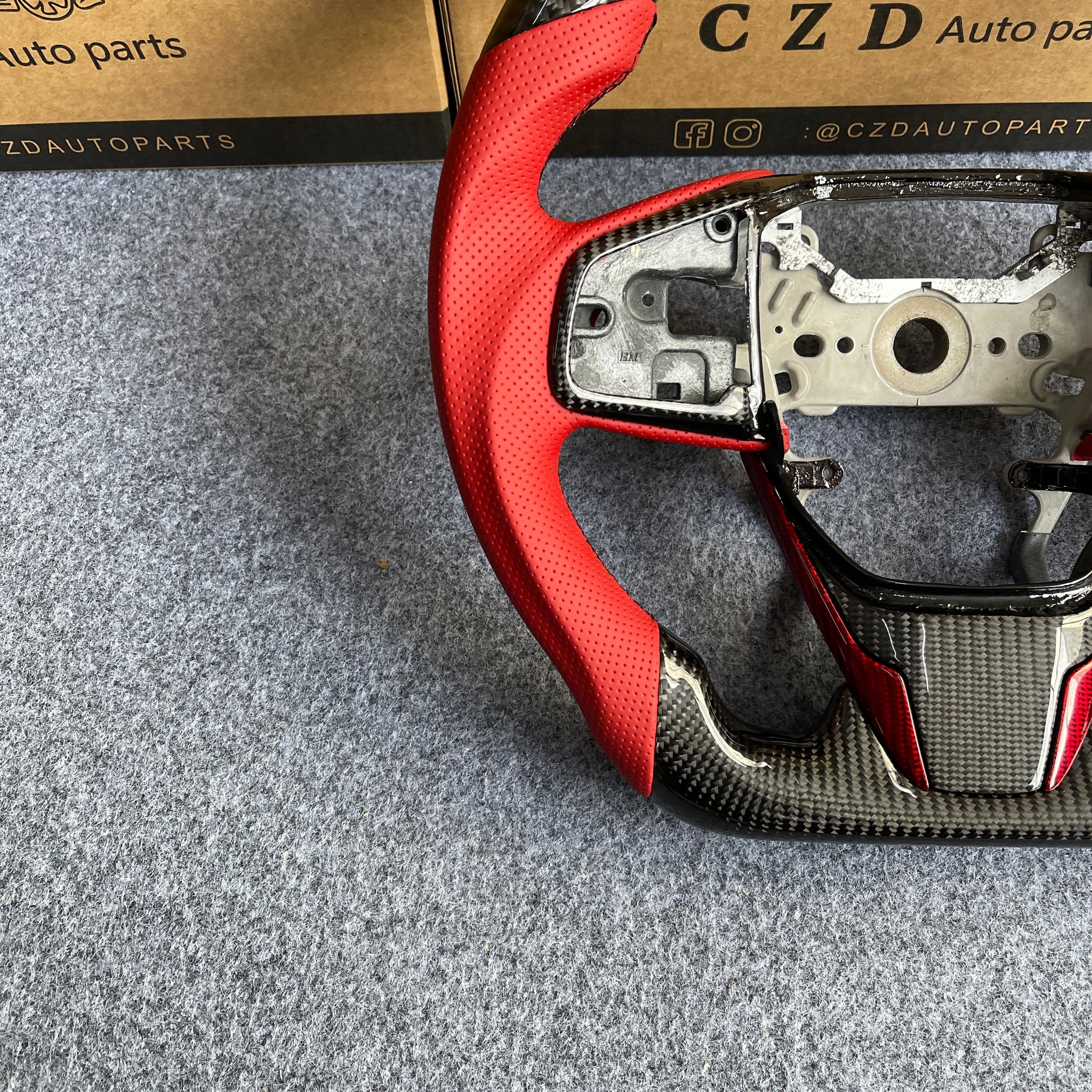 CZD auto parts for Honda 10th gen Civic SI 2016-2021 carbon fiber steering wheel with red perforated leather side