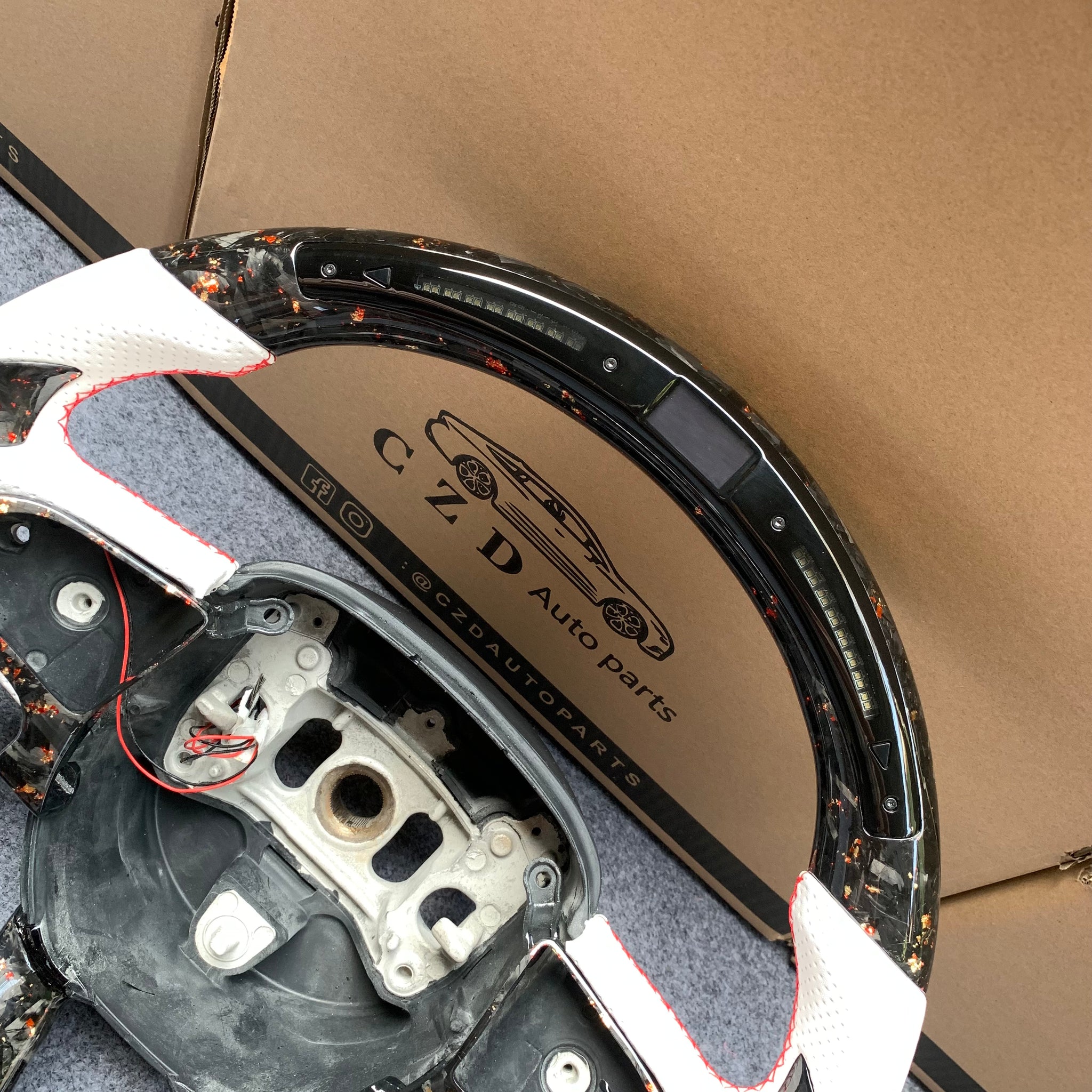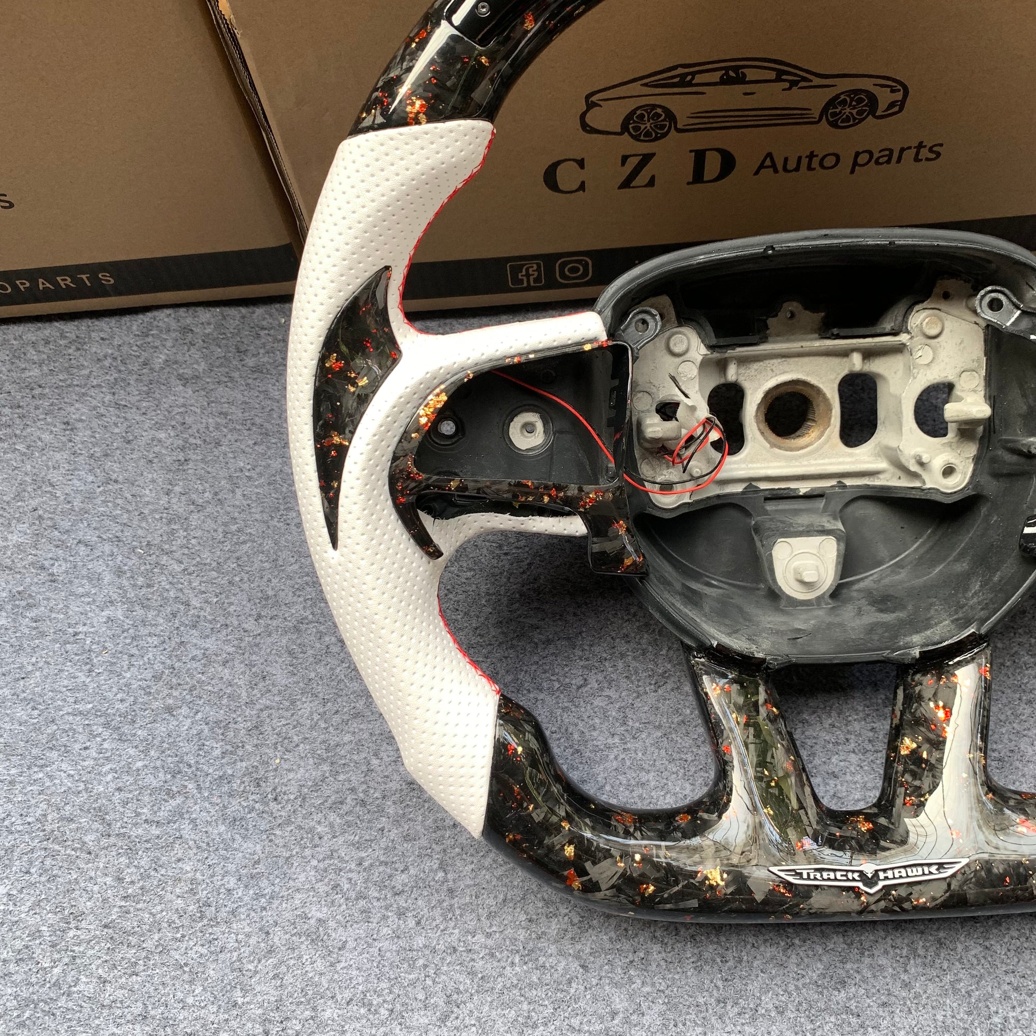 CZD auto parts for Dodge Durango 2018-2021 carbon fiber steering wheel with red & golden flakes forged carbon fiber