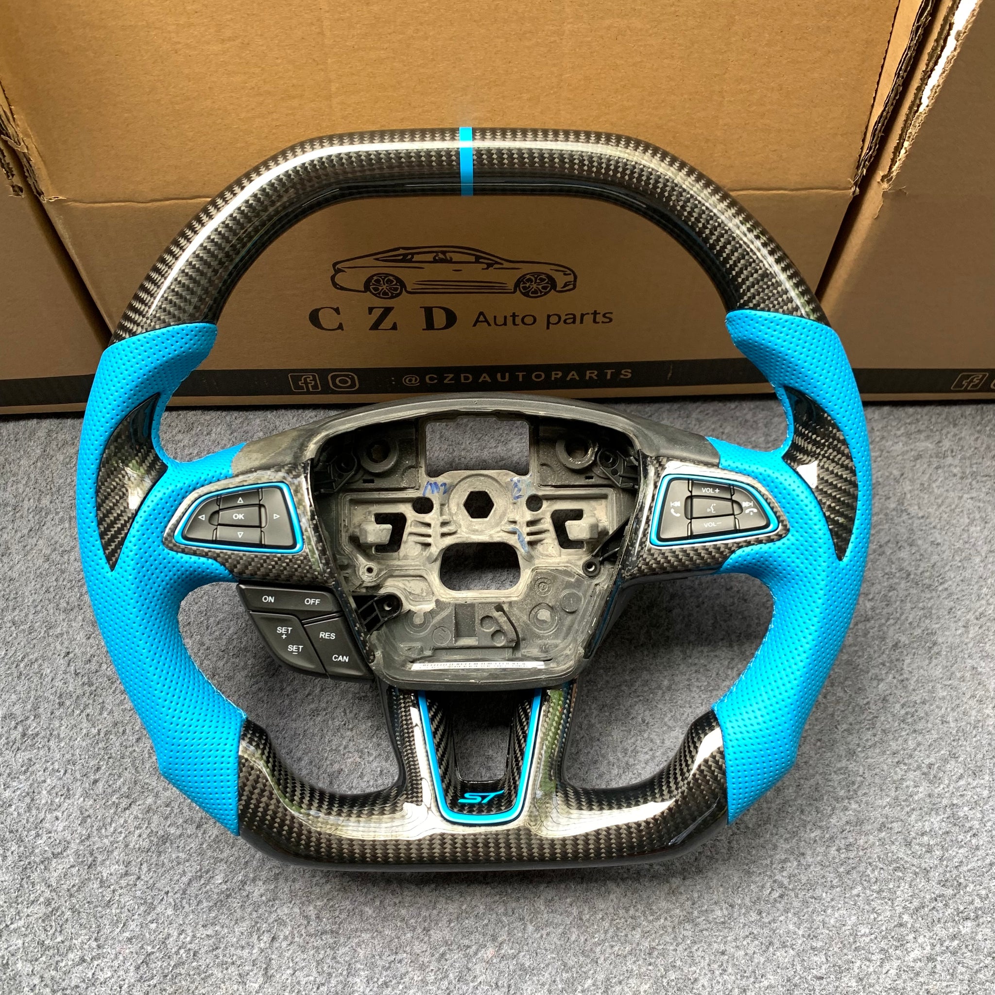 CZD auto parts for Ford Focus RS ST 2015-2018 carbon fiber steering wheel with blue perforated leather side