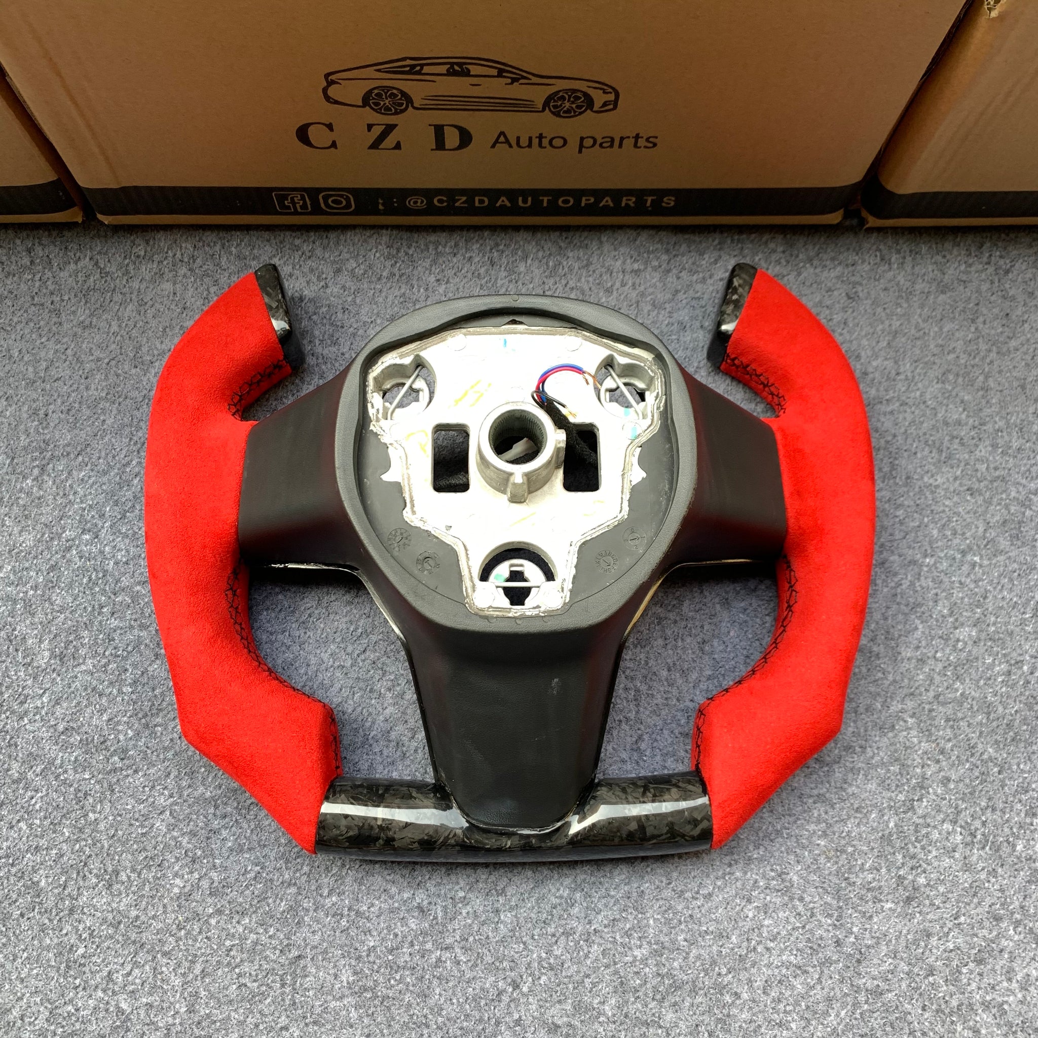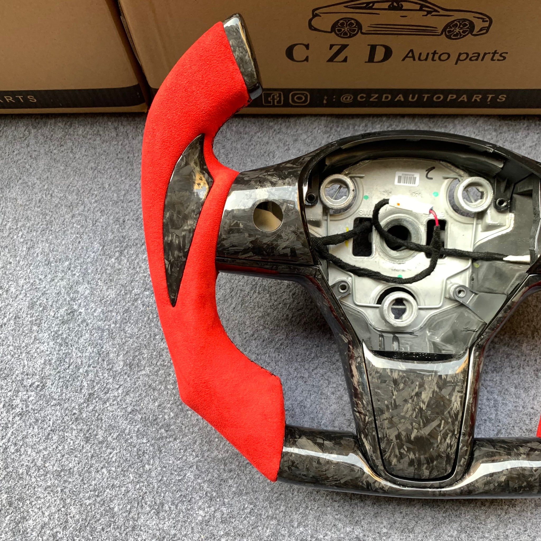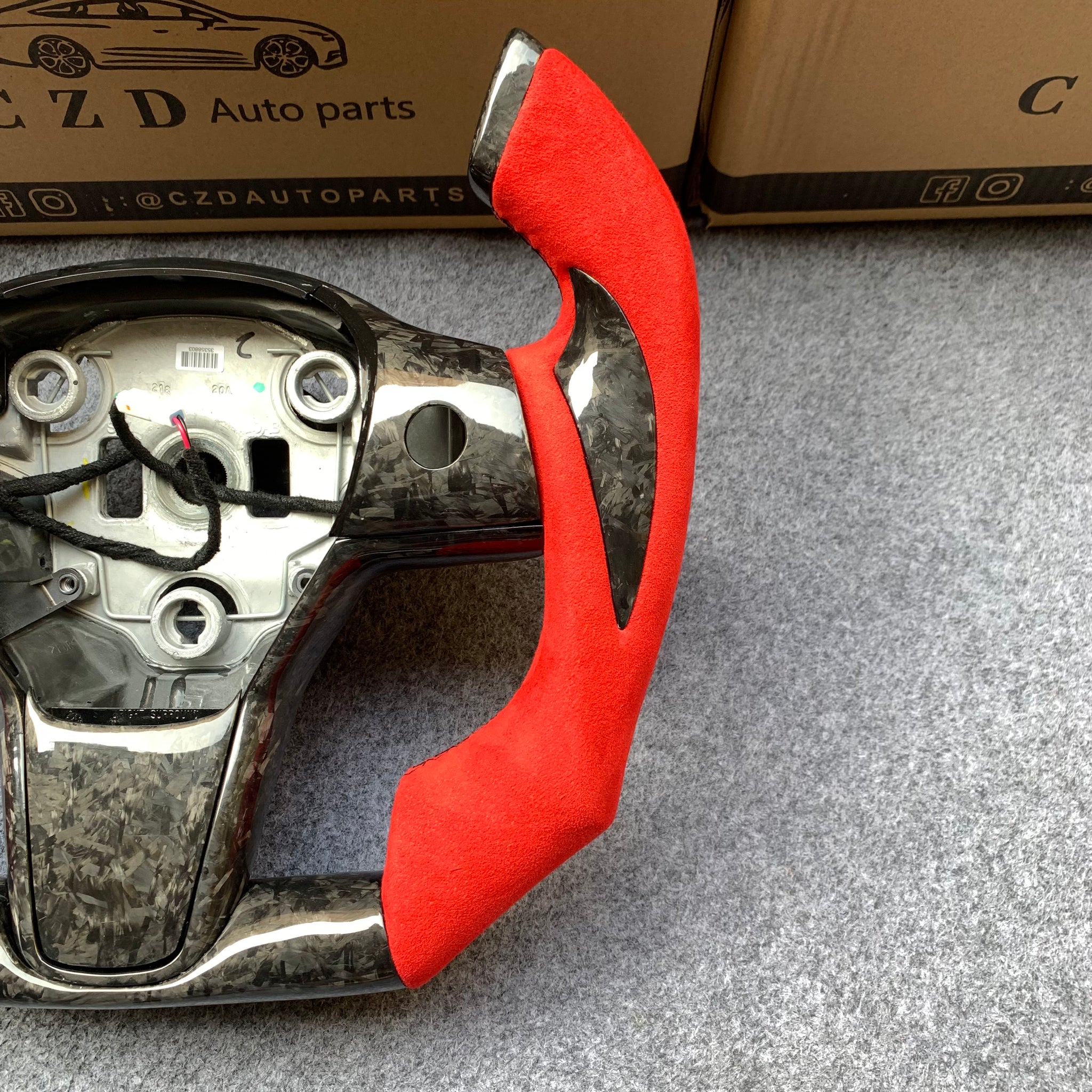 CZD auto parts for Tesla Model 3 2017-2020 carbon fiber steering wheel with F1 shape & alcantara leather side