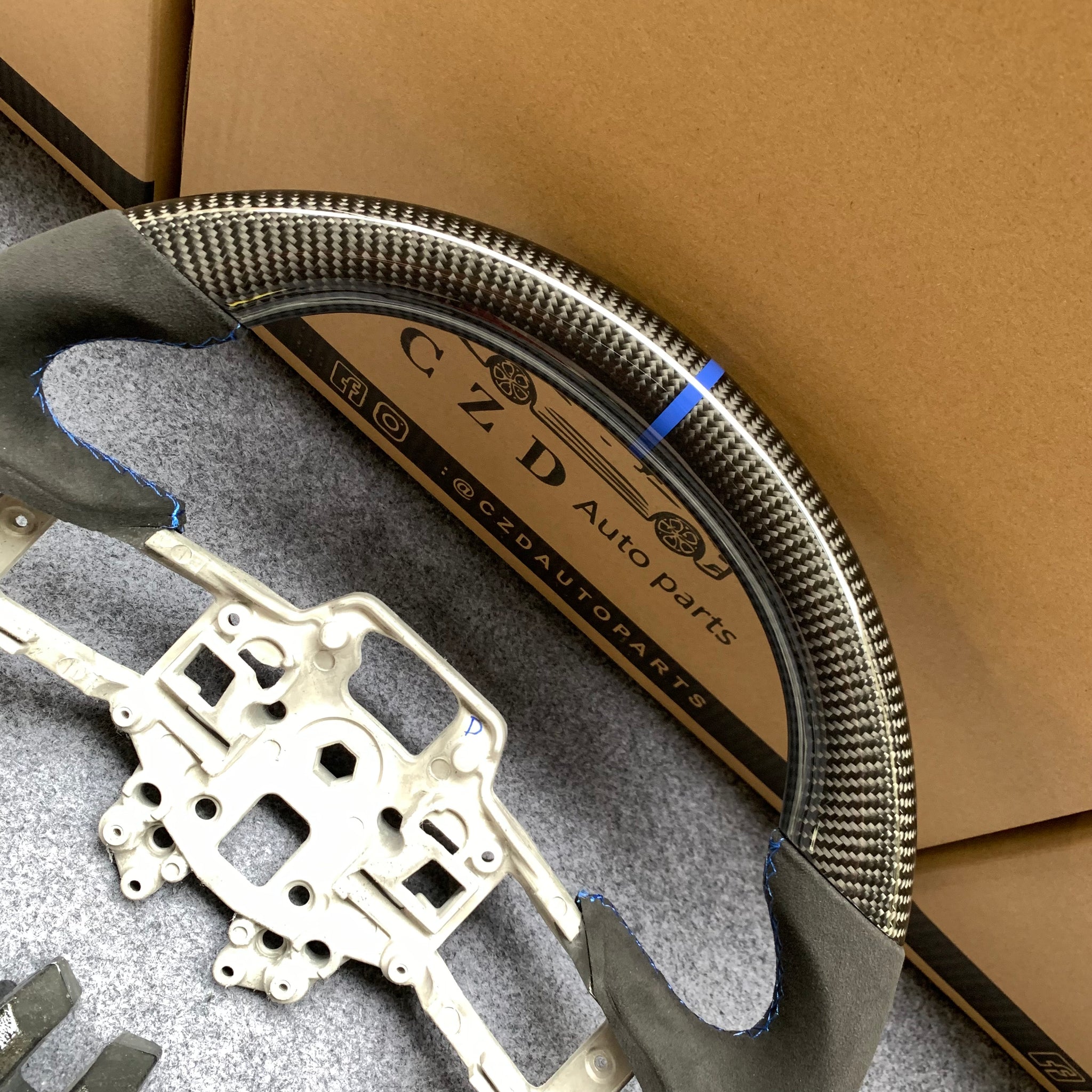 CZD auto parts for Ford Mustang/SHELBY/GT350R 2018-2022 Carbon Fiber Steering Wheel with black alcantara and blue stripe line