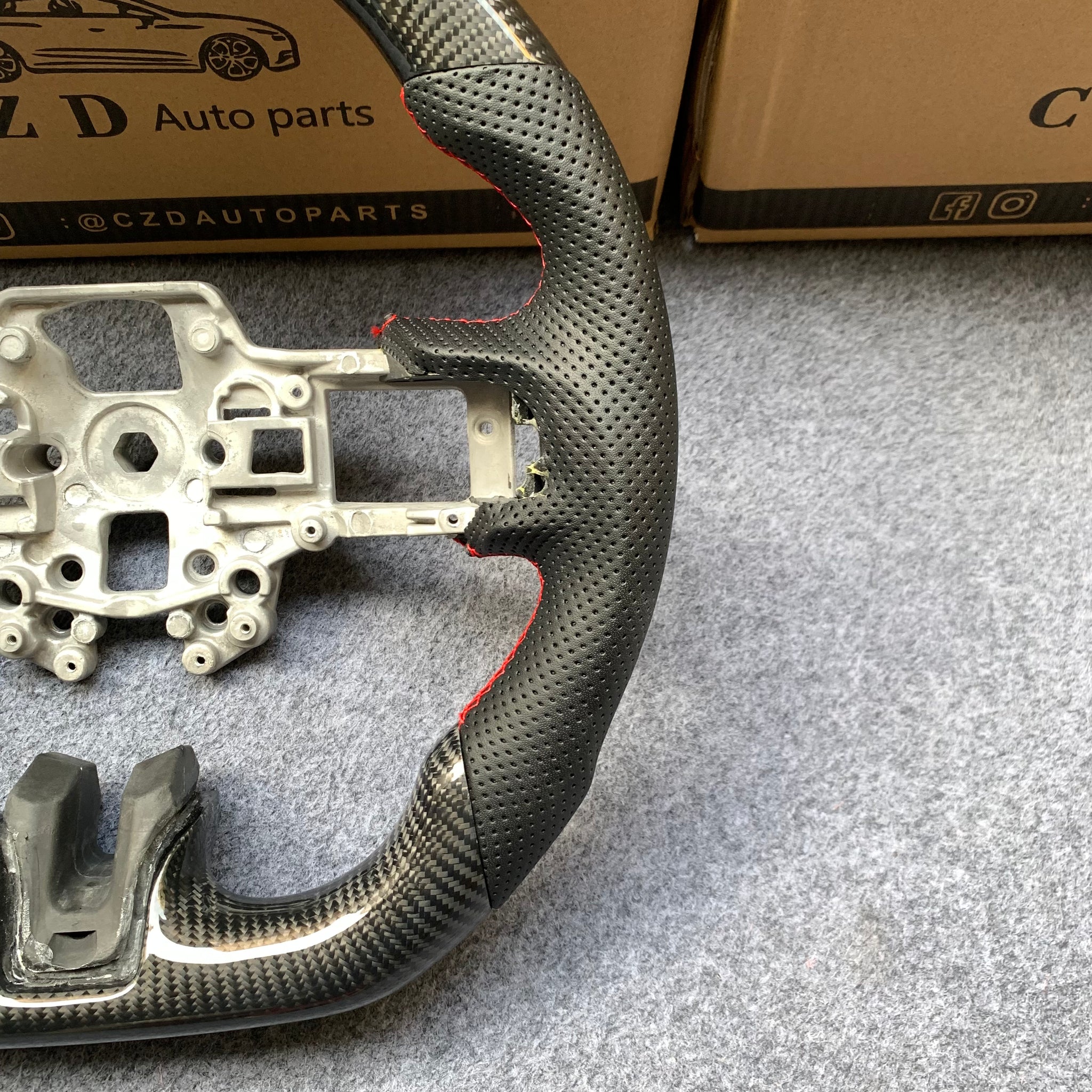 CZD auto parts for Ford Mustang/SHELBY/GT350R 2018-2022 Carbon Fiber Steering Wheel with red stitching and red stripe line