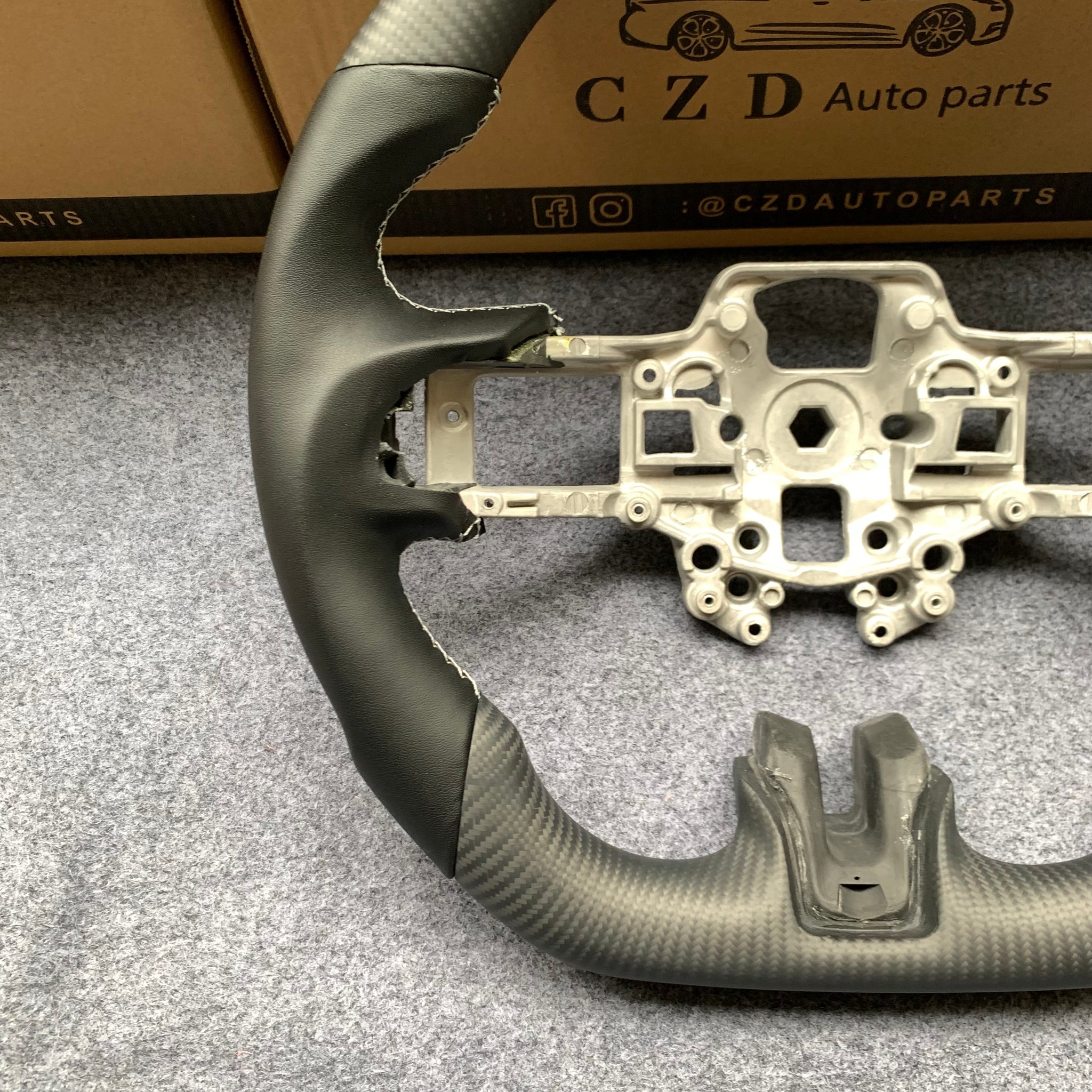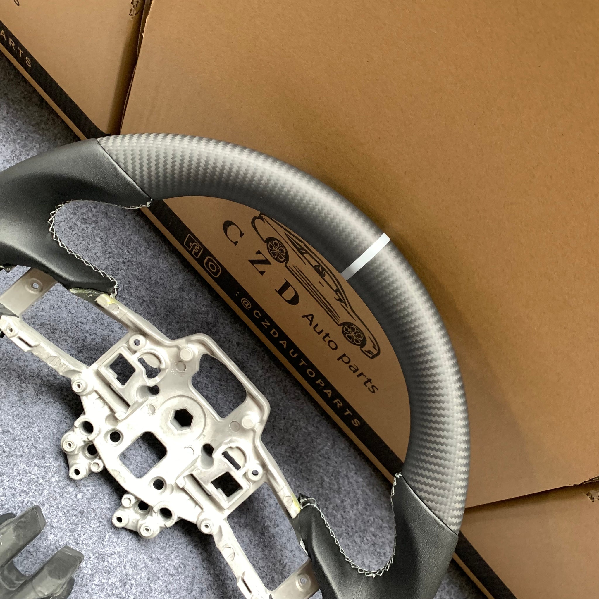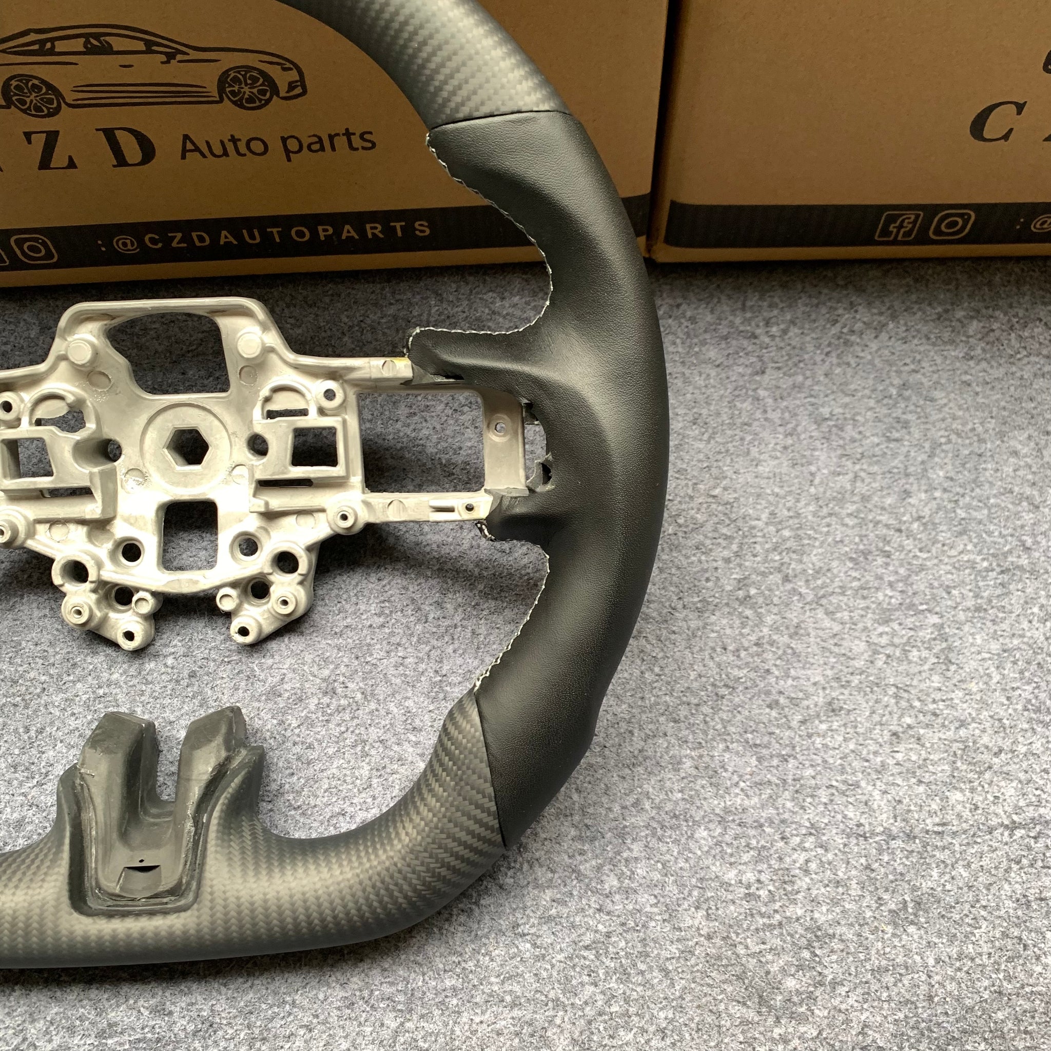 CZD auto parts for Ford Mustang/SHELBY/GT350R 2018-2022 Carbon Fiber Steering Wheel with white stripe line and stitching