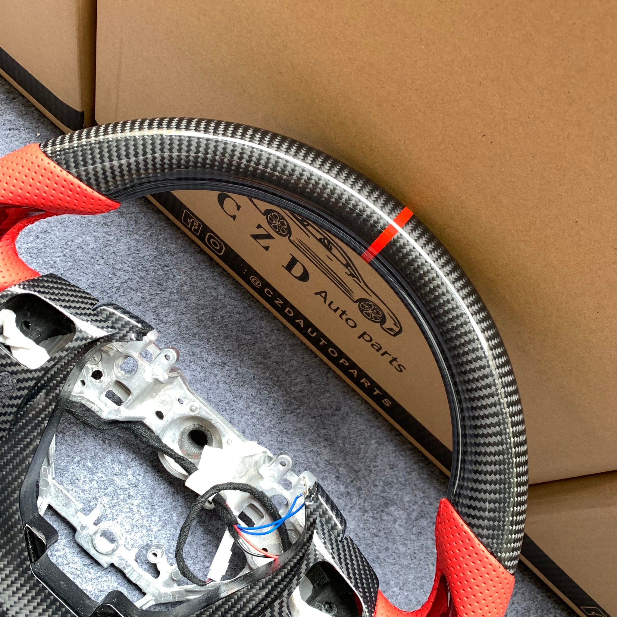 CZD auto parts carbon fiber steering wheel for Lexus RCF F sport with red carbon fiber thumbgrips