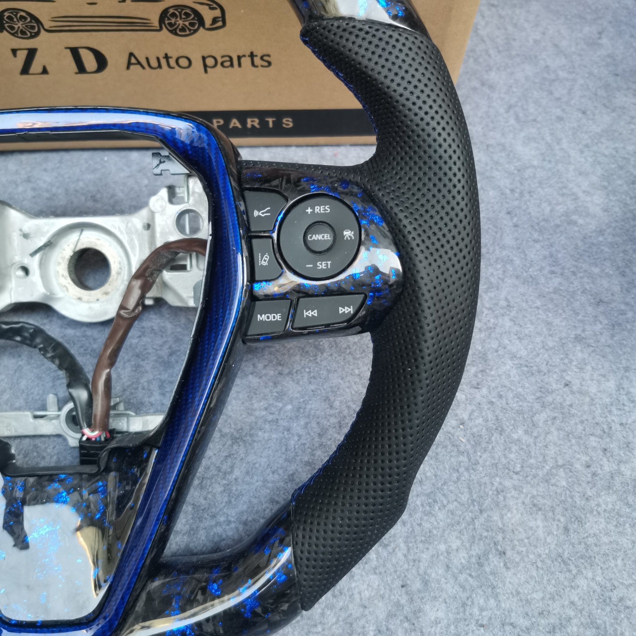 CZD Autoparts for Toyota Avalon 2018-2022 carbon fiber steering wheel gloss forged carbon fiber with blue flakes swith cover