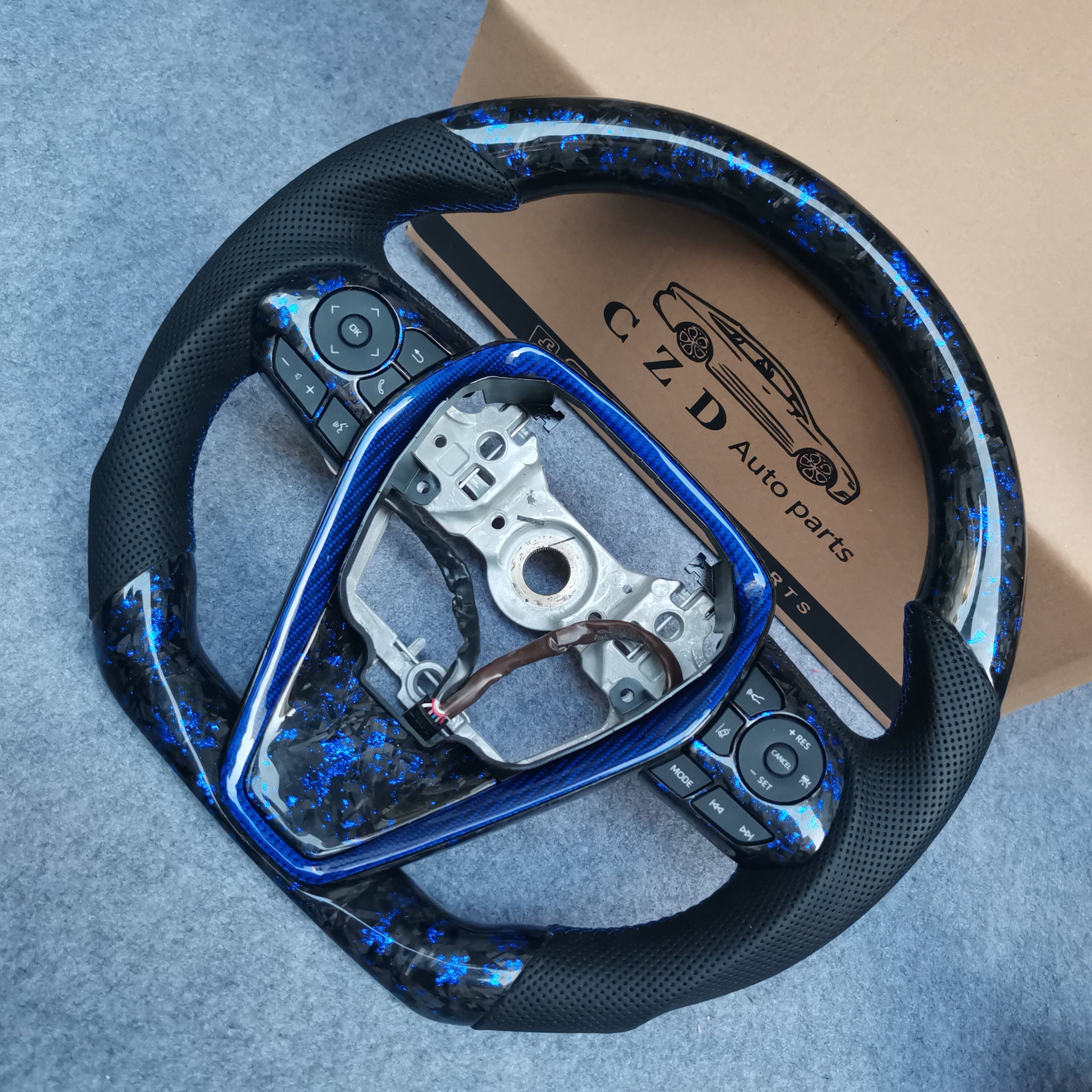 CZD Autoparts for Toyota Avalon 2019-2022 carbon fiber steering wheel gloss forged carbon fiber  with blue flakes top and bottom
