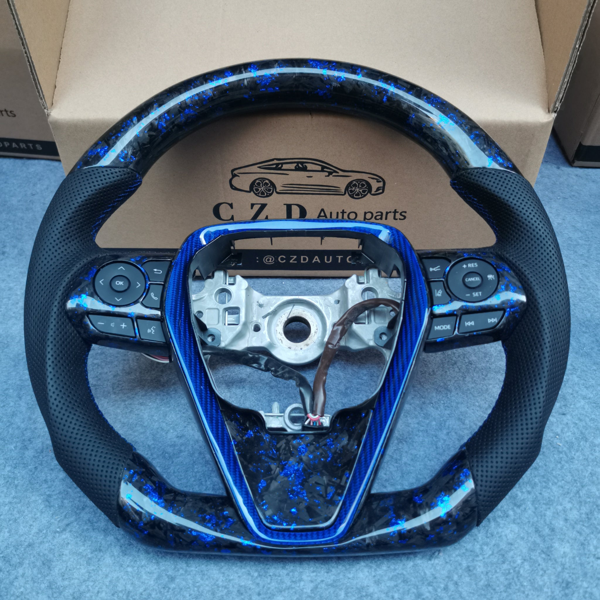 CZD Autoparts for Toyota Avalon 2019-2022 carbon fiber steering wheel gloss forged carbon fiber with blue flakes top and bottom