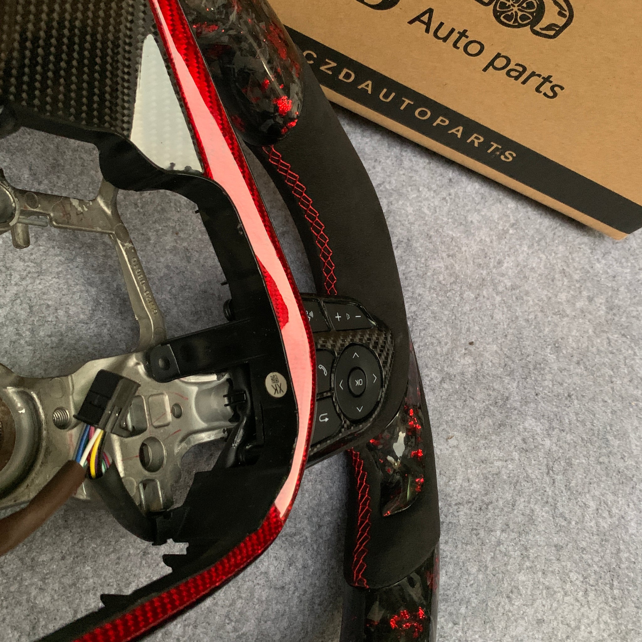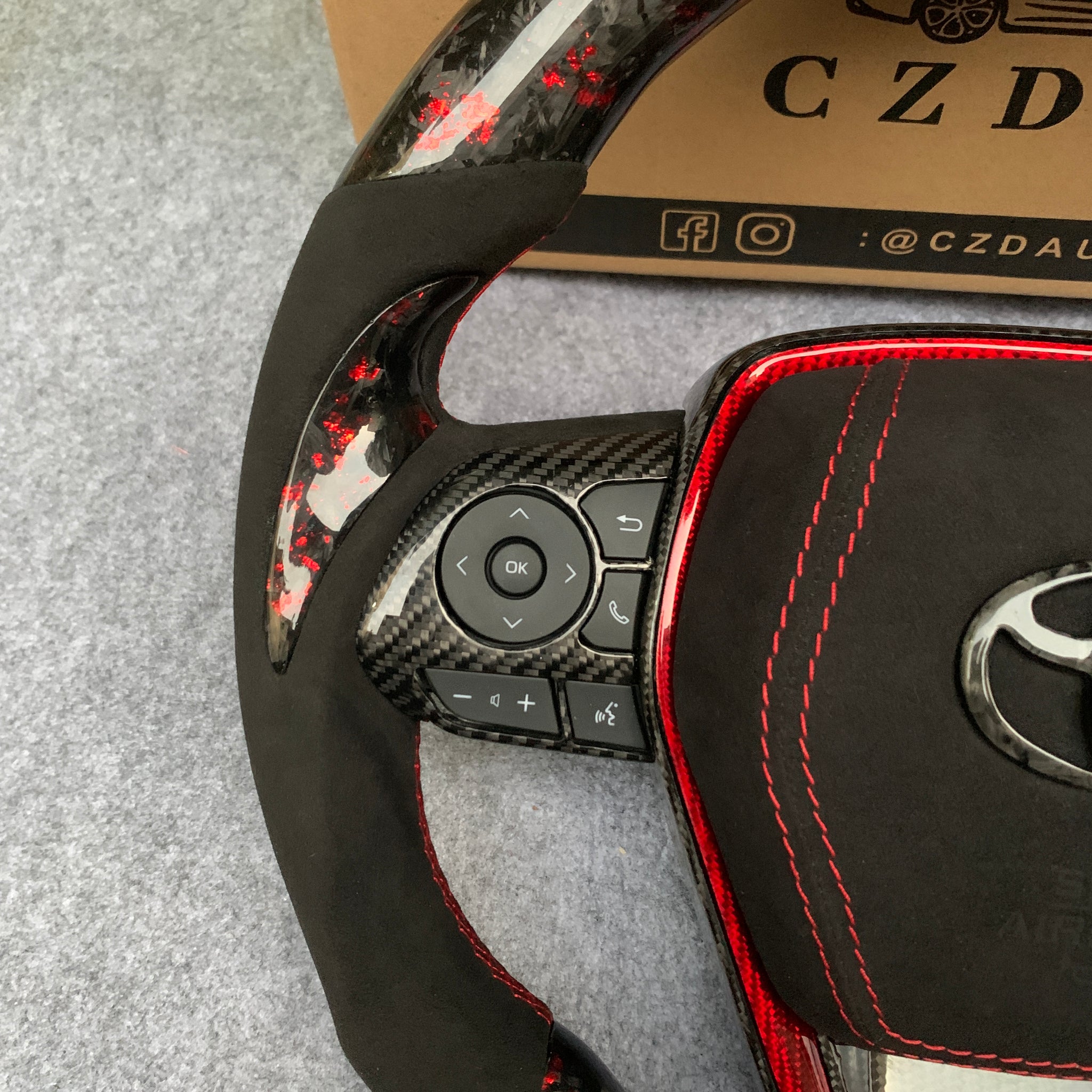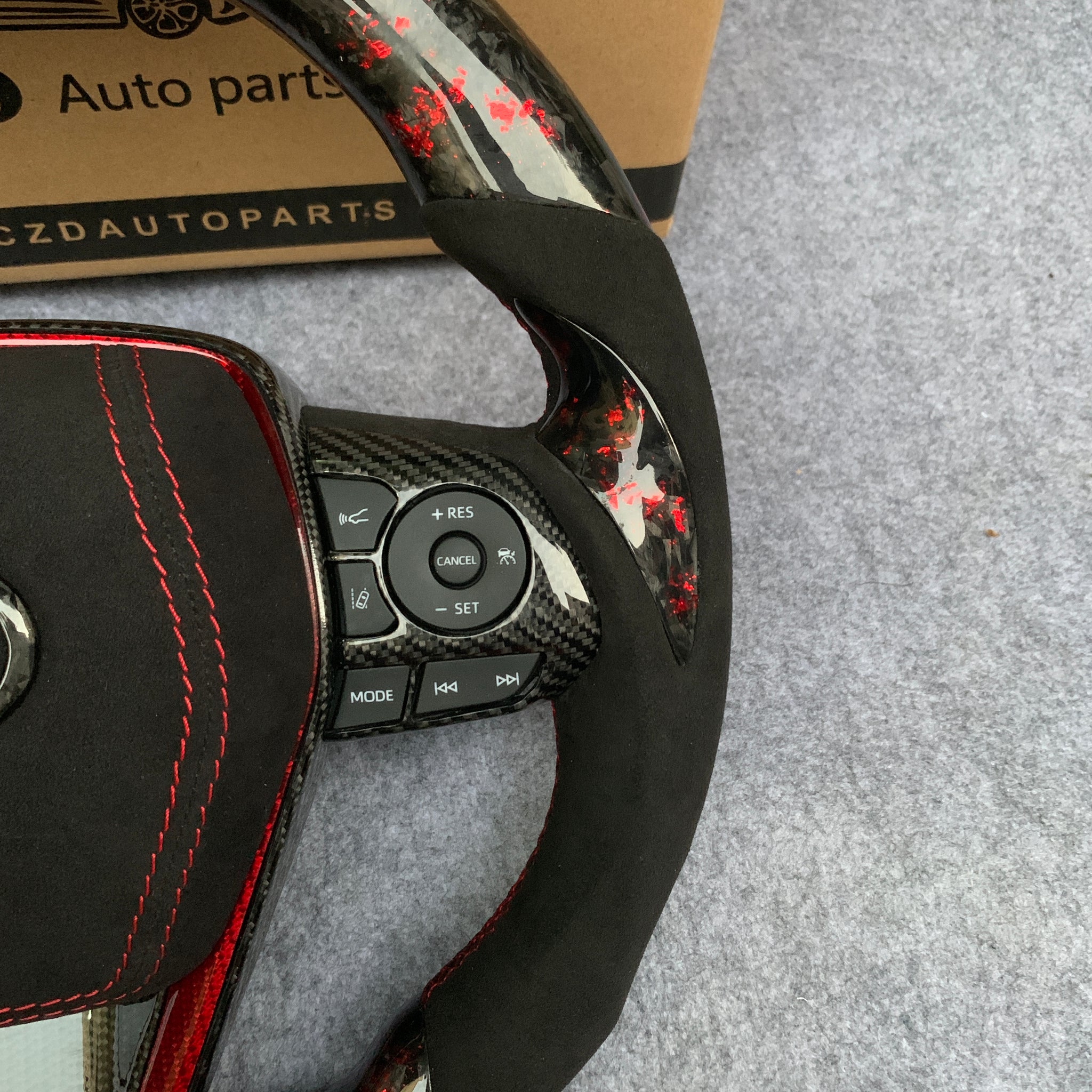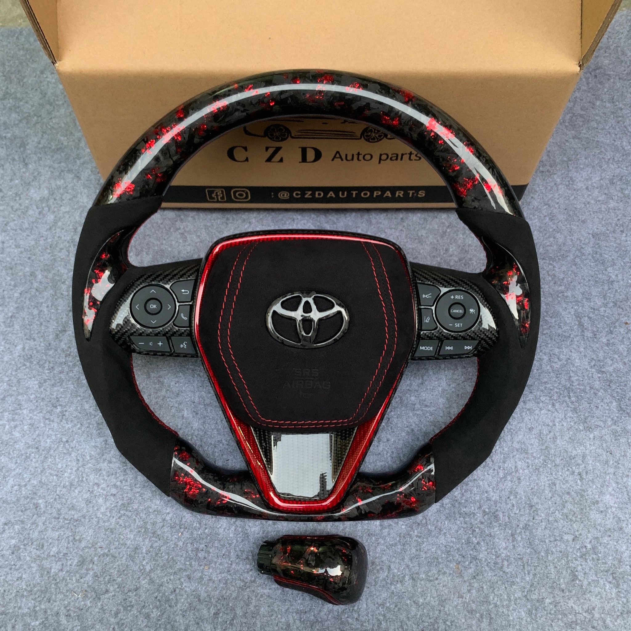 CZD Autoparts for Toyota Avalon 2019-2022 carbon fiber steering wheel gloss forged carbon fiber with red flakes top and bottom