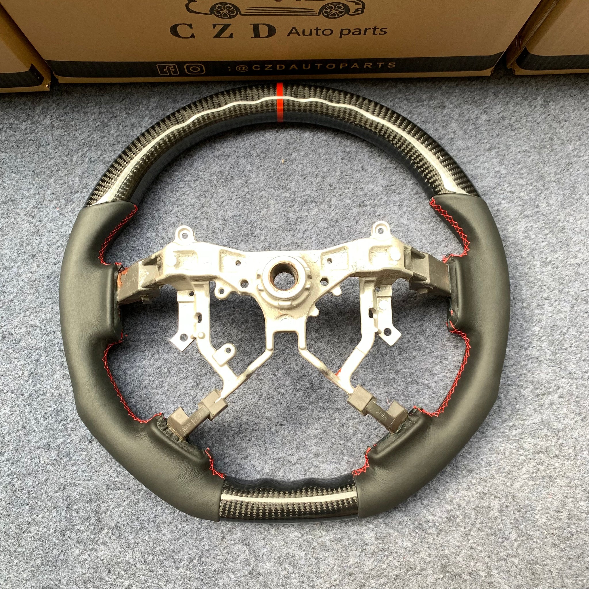 CZD Autoparts For Toyota Land Cruiser 70 Series 2010-2019 carbon fiber steering wheel black smooth leather sides