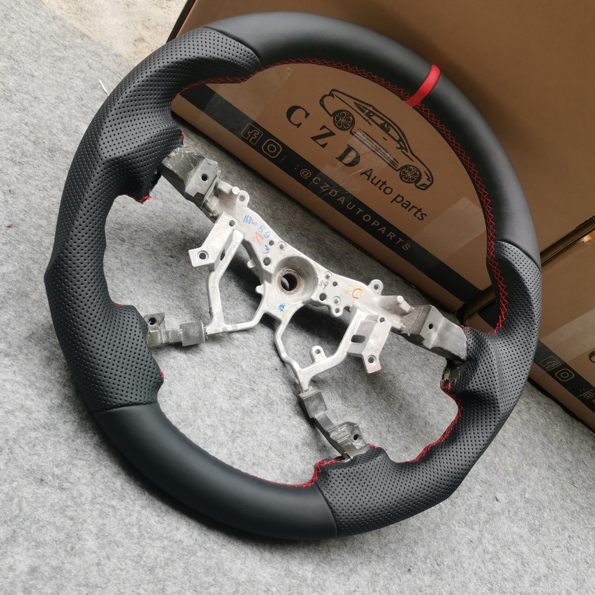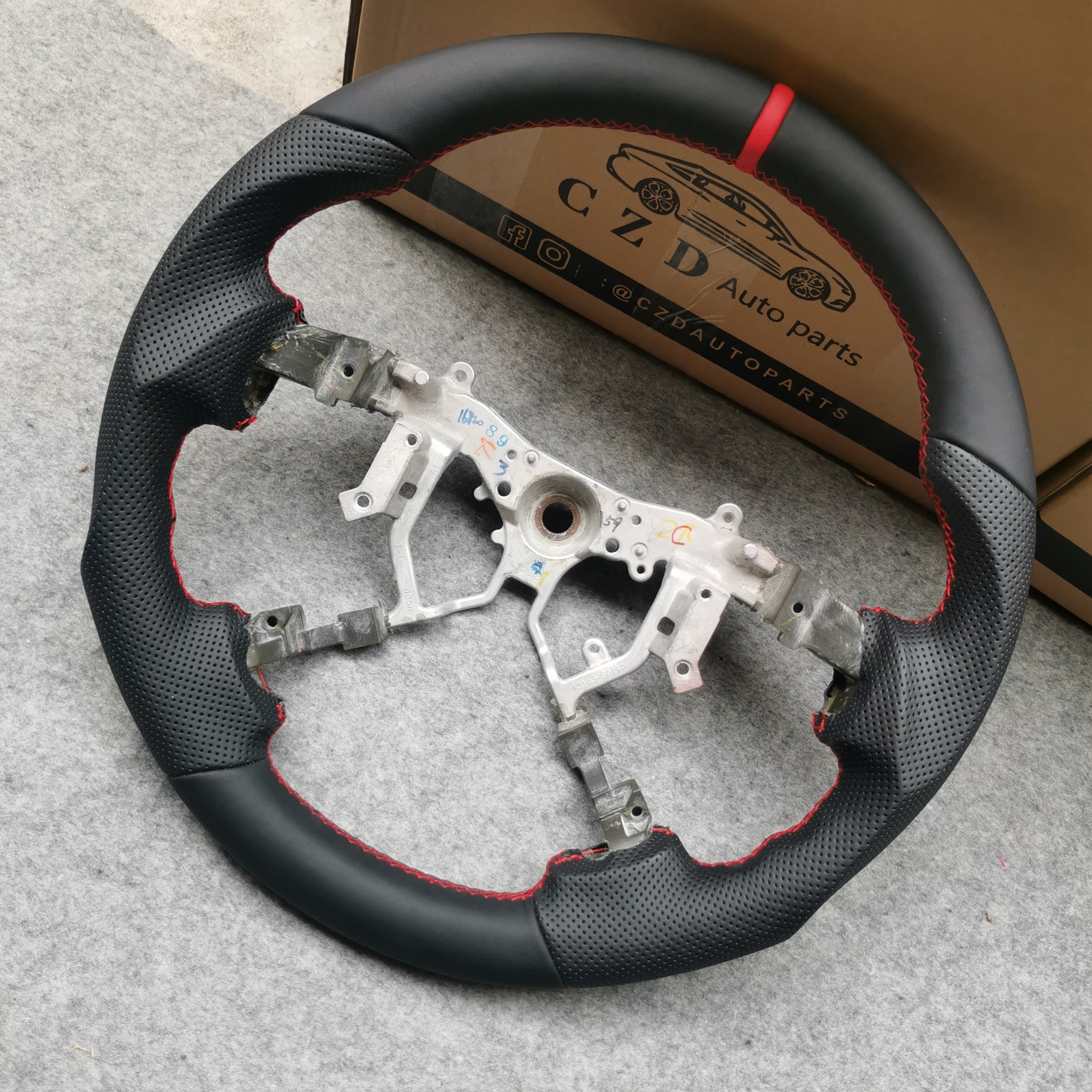CZD Autoparts For Toyota TACOMA 2005-2011 black smooth leather steering wheel with perforated leather sides