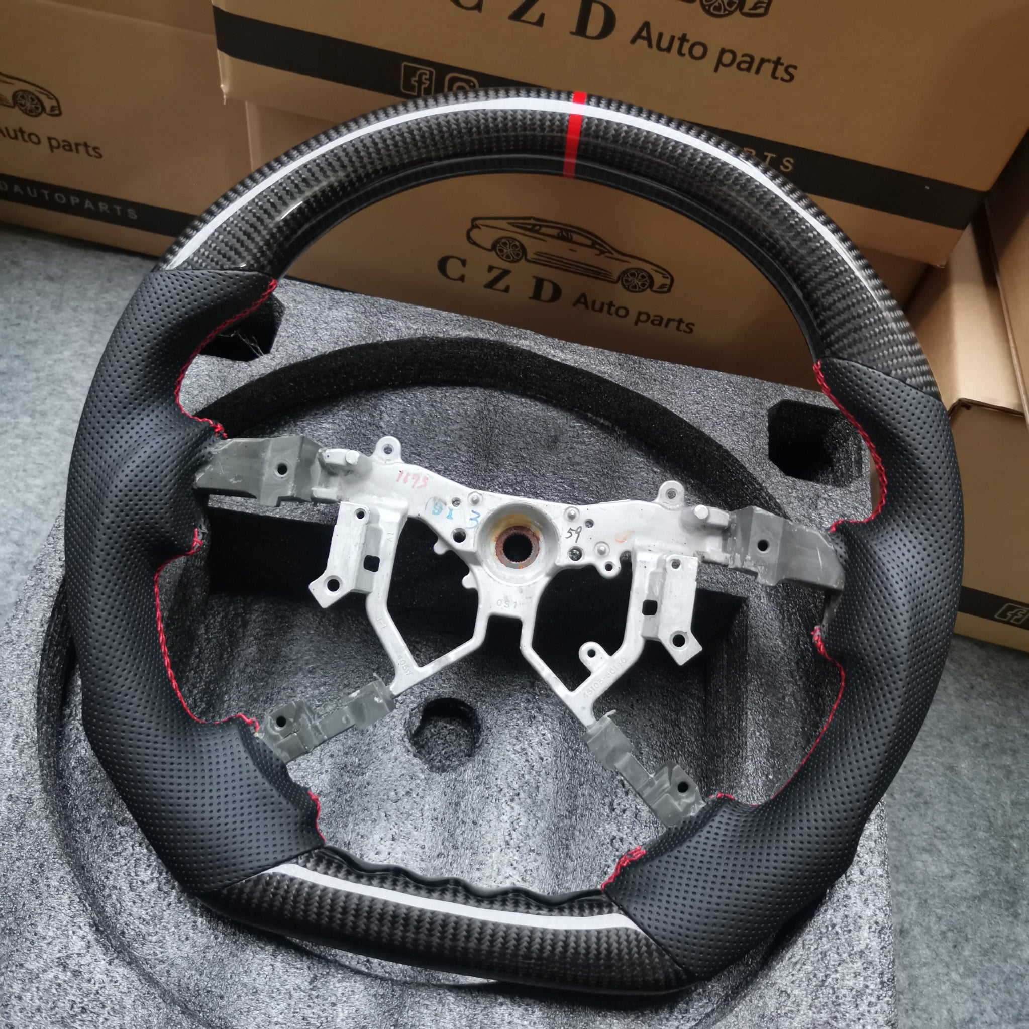 CZD Autoparts For Toyota TACOMA 2005-2011 carbon fiber steering wheel gloss finish with red stripe