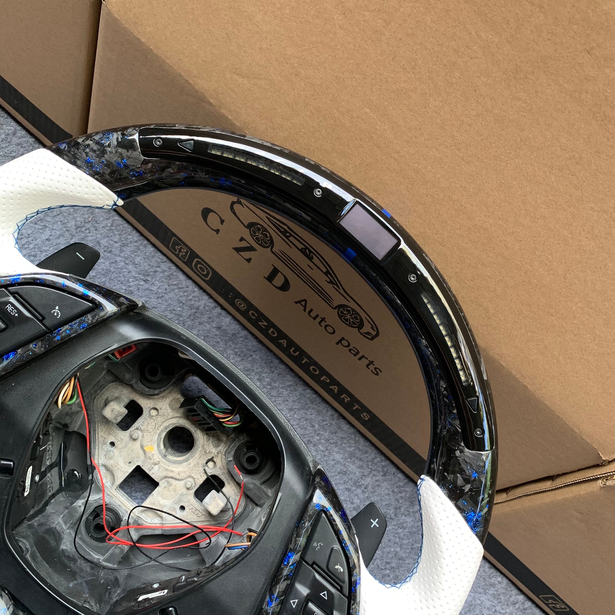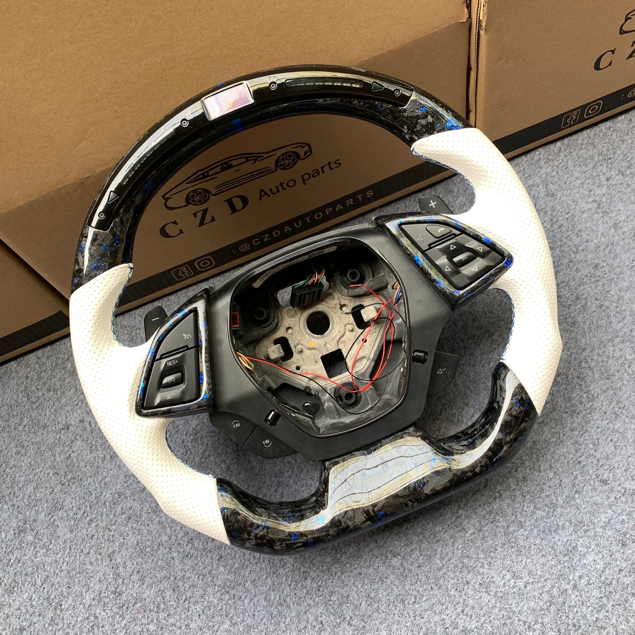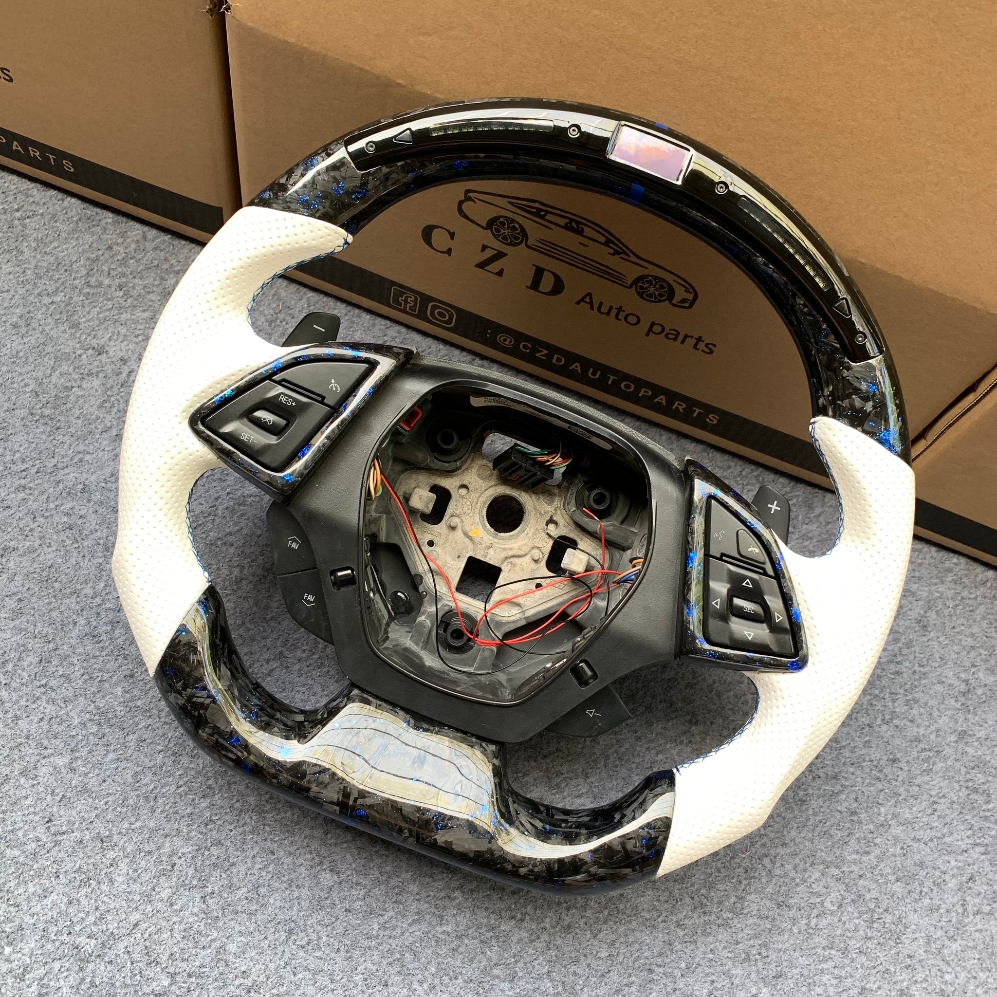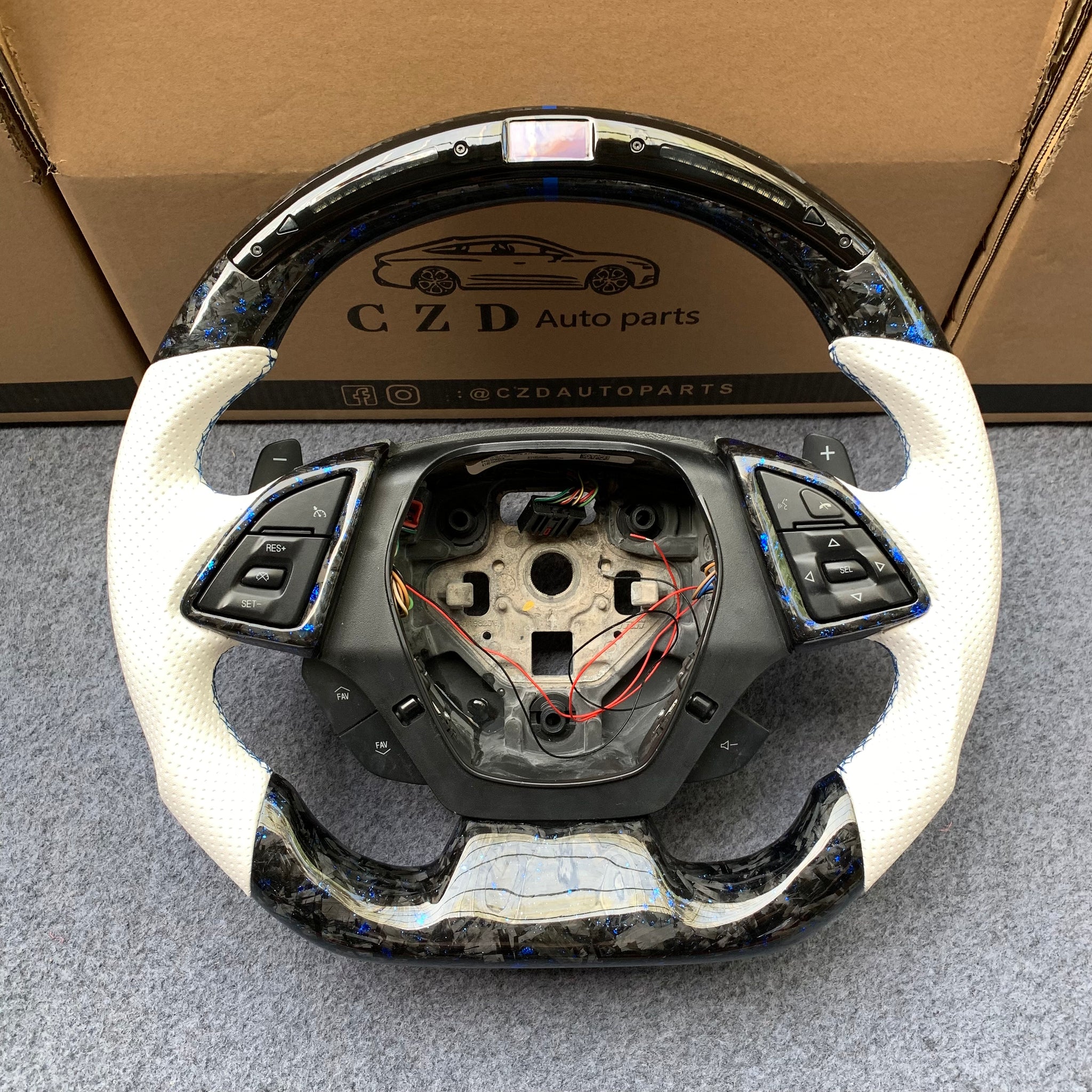 CZD auto parts carbon fiber steering wheel for Chevrolet 6th gen Camaro 2016-2020 with gloss blue flakes forge carbon fiber