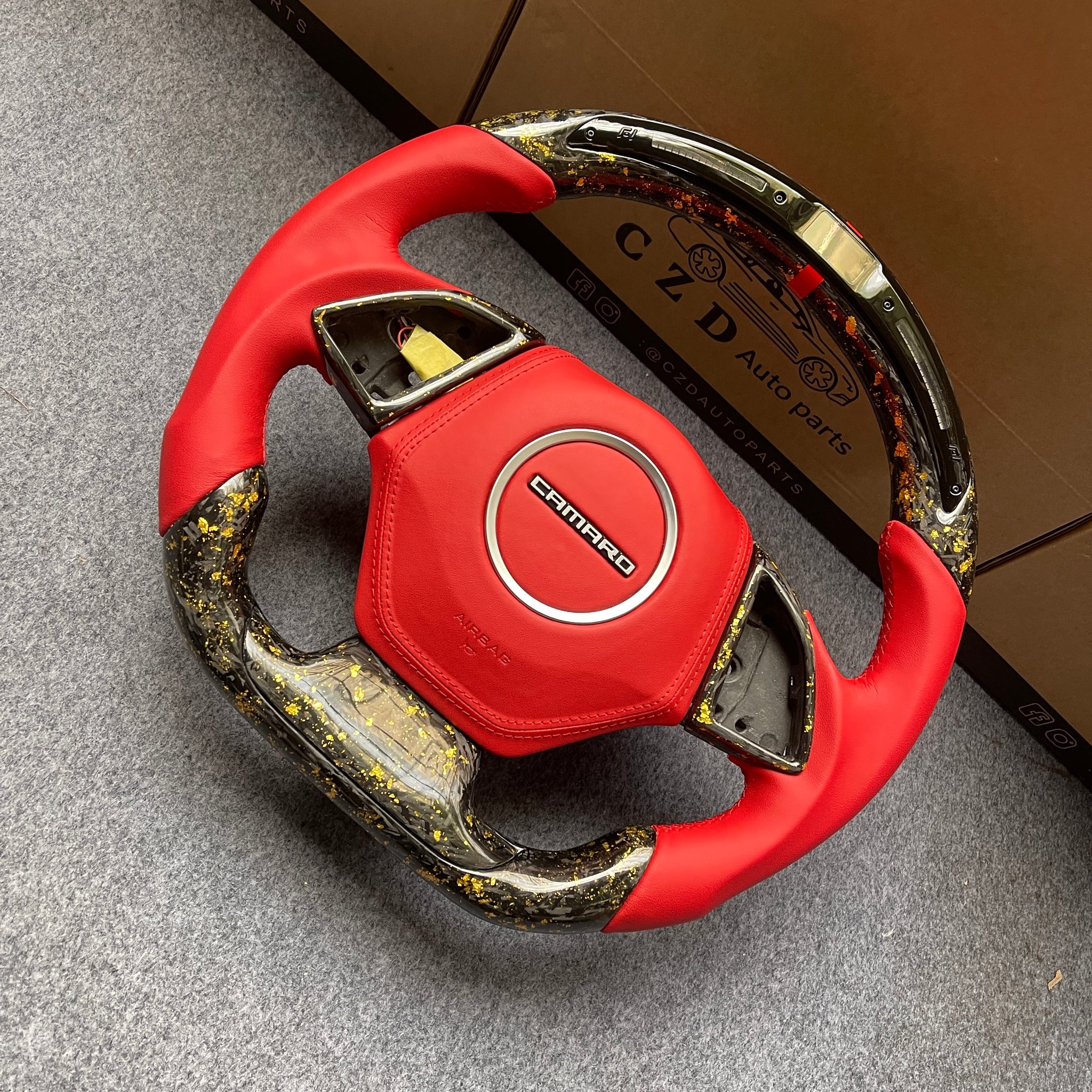 CZD auto parts carbon fiber steering wheel for Chevrolet 6th gen Camaro 2016-2020 with led shift light