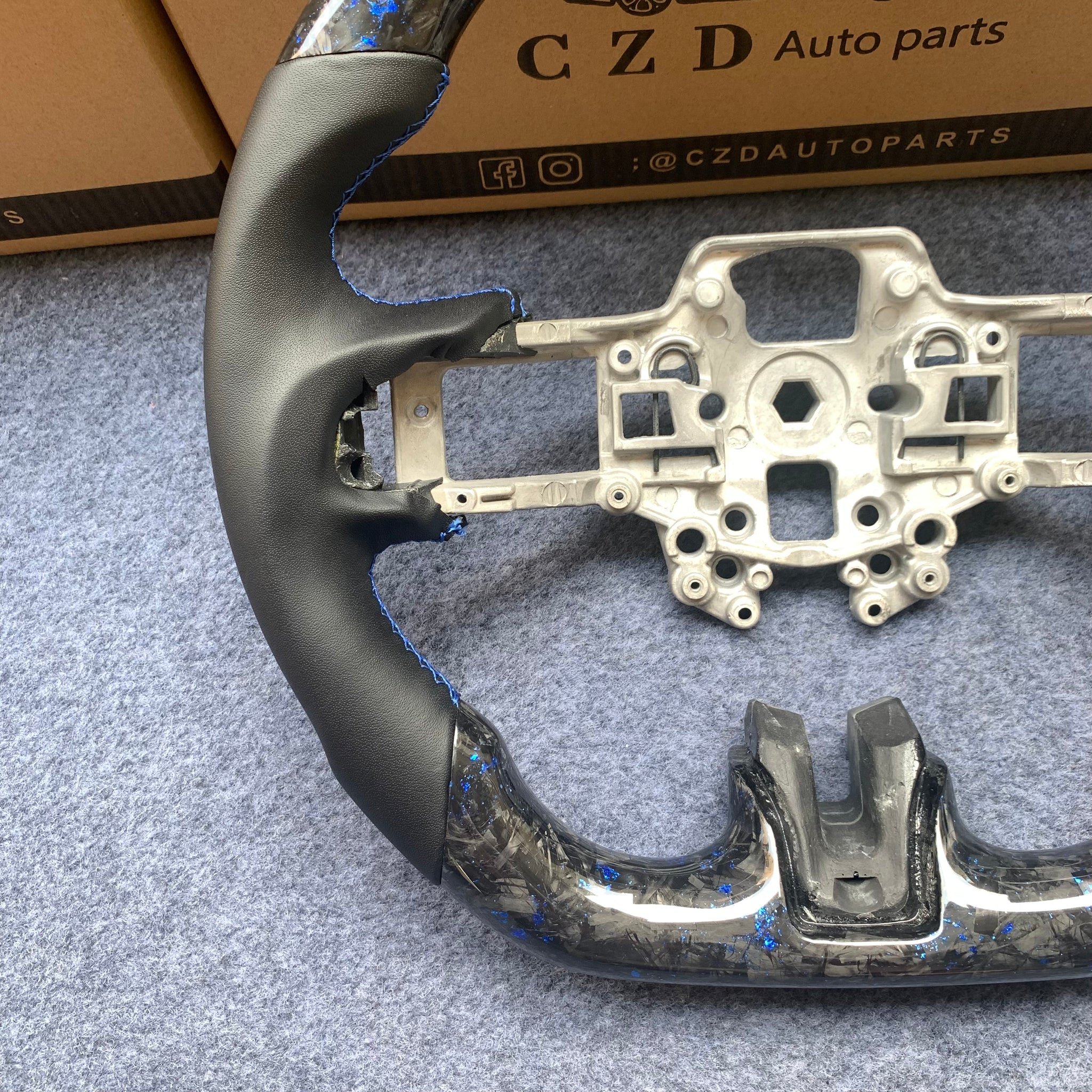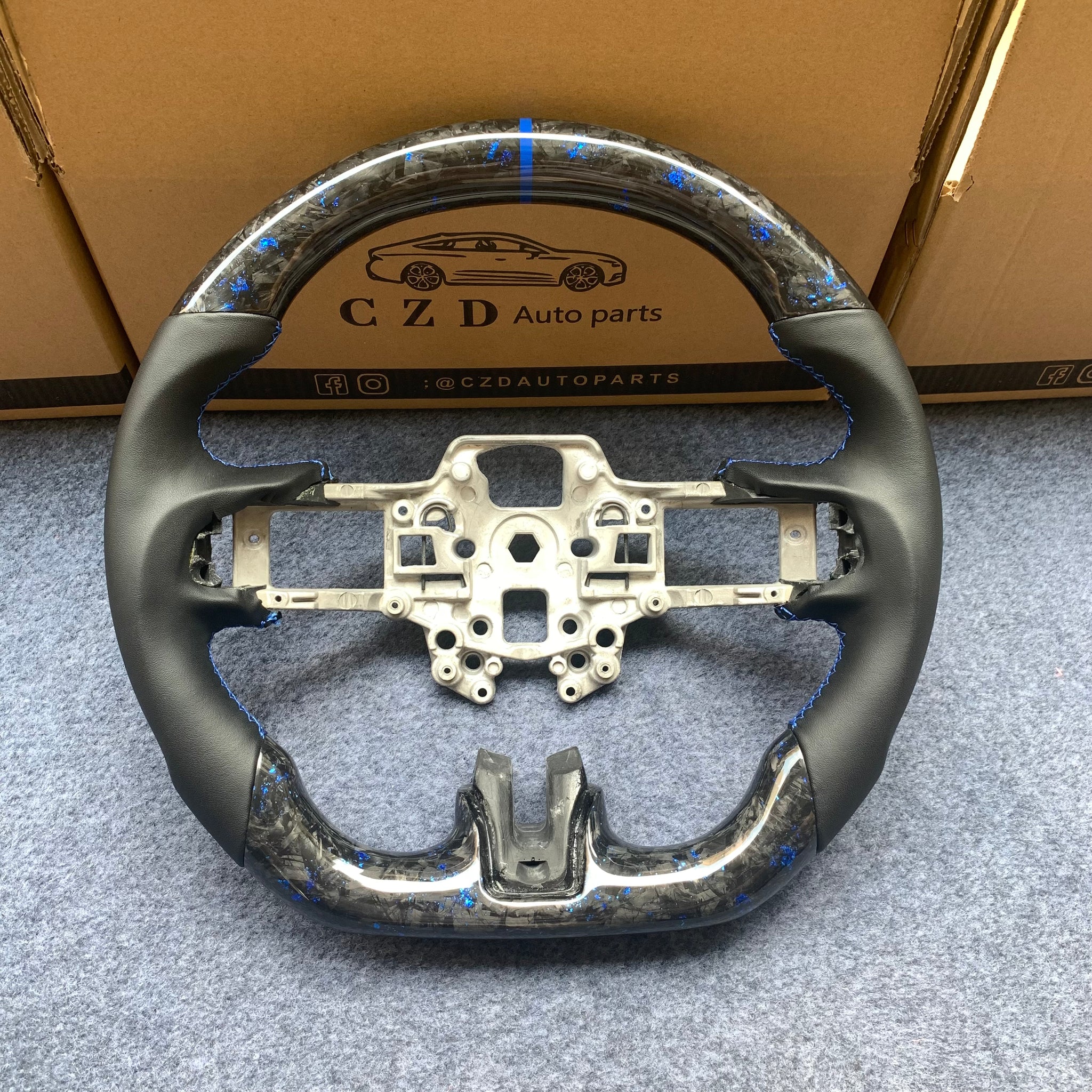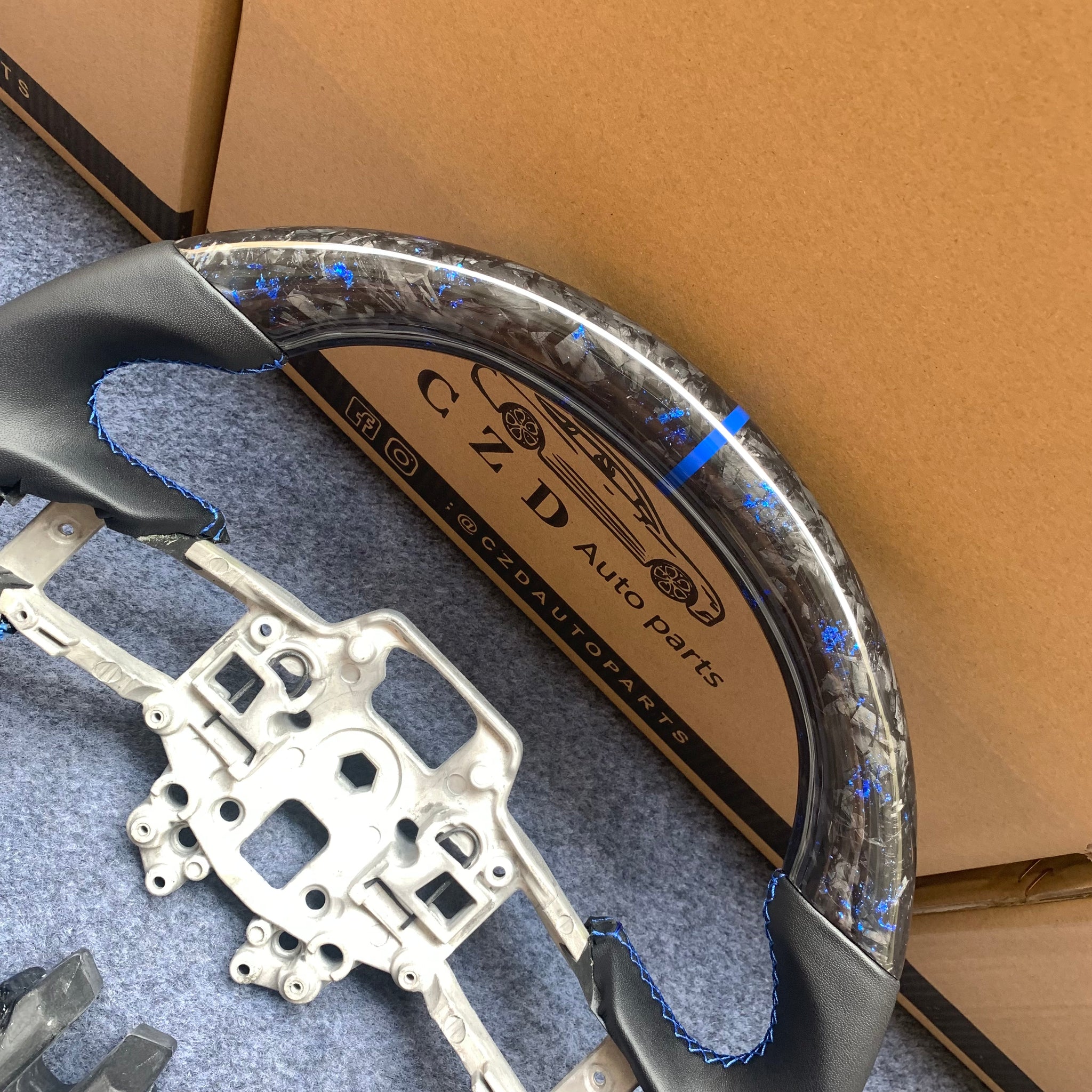 CZD auto parts for Ford Mustang/SHELBY/GT350R 2018-2022 Carbon Fiber Steering Wheel with forged carbon fiber with blue flakes