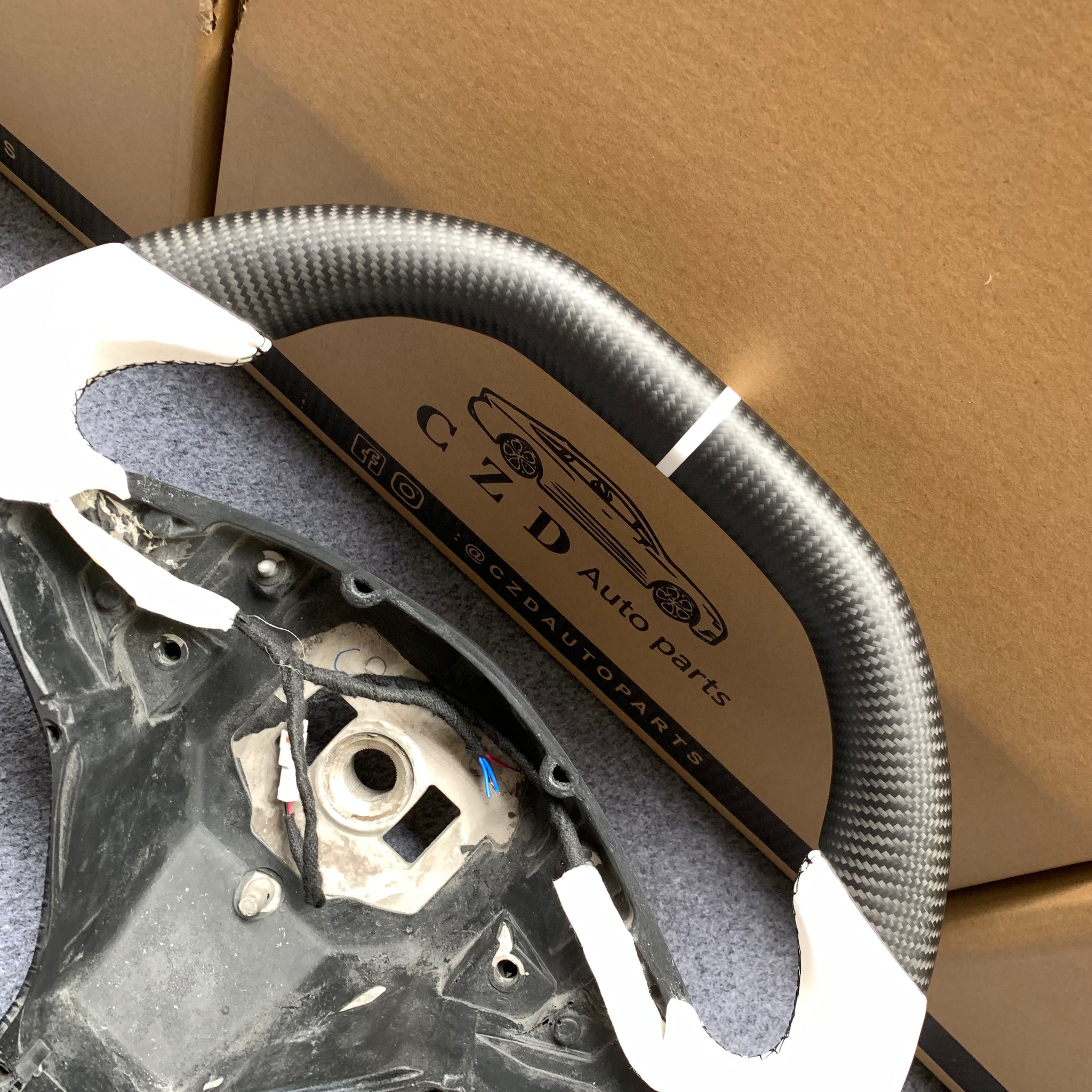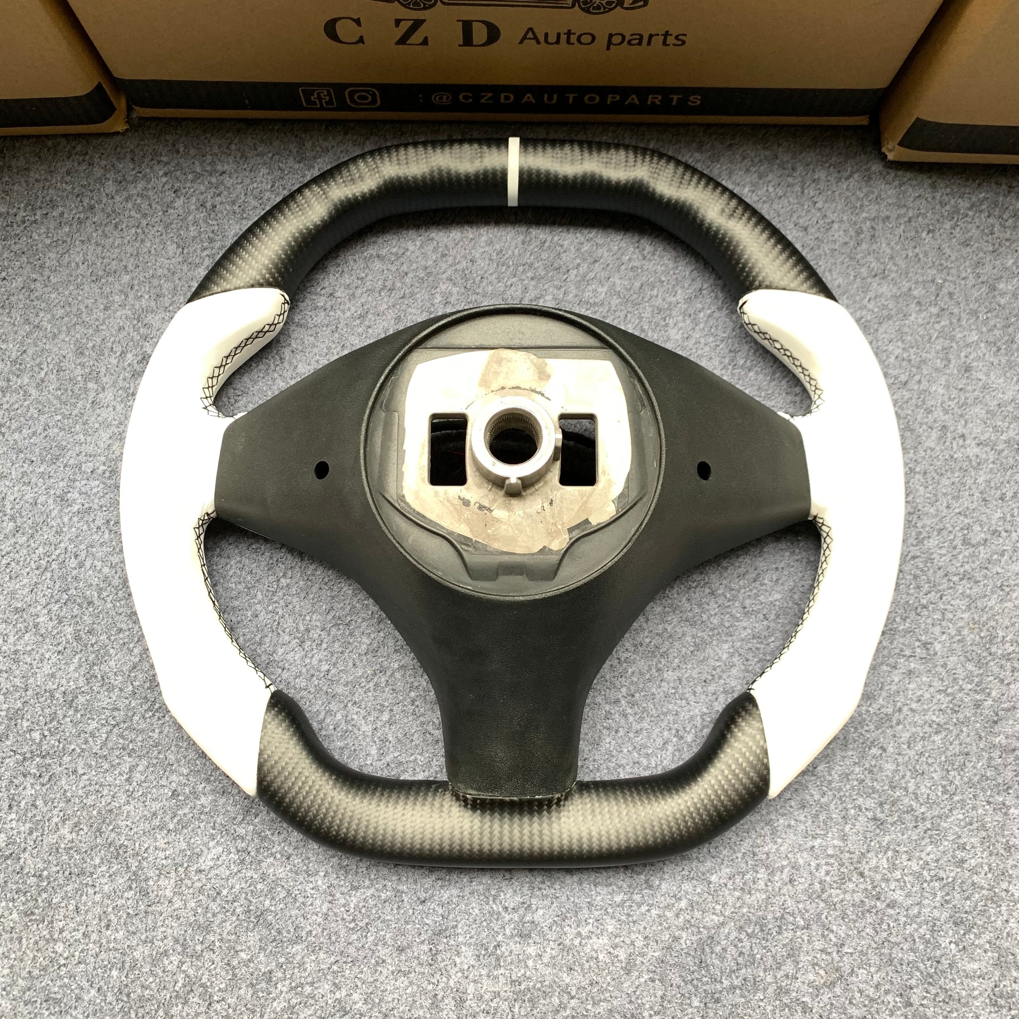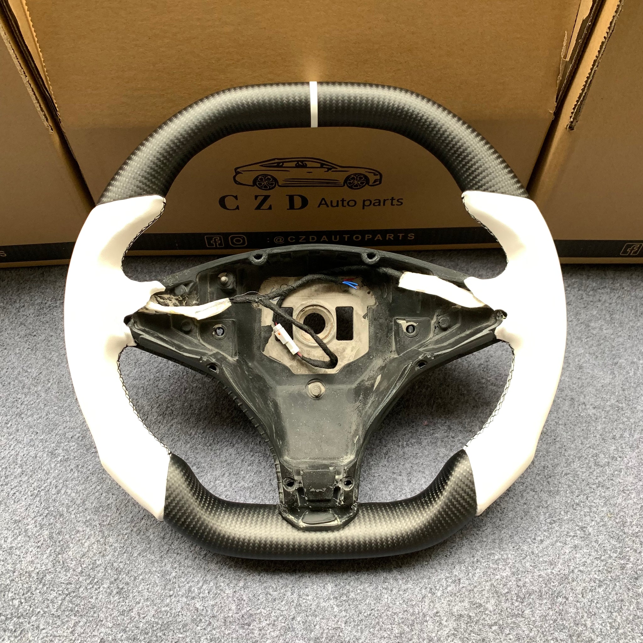 CZD auto parts for Tesla Model X 2016-2020 carbon fiber steering wheel with white alcantara leather side