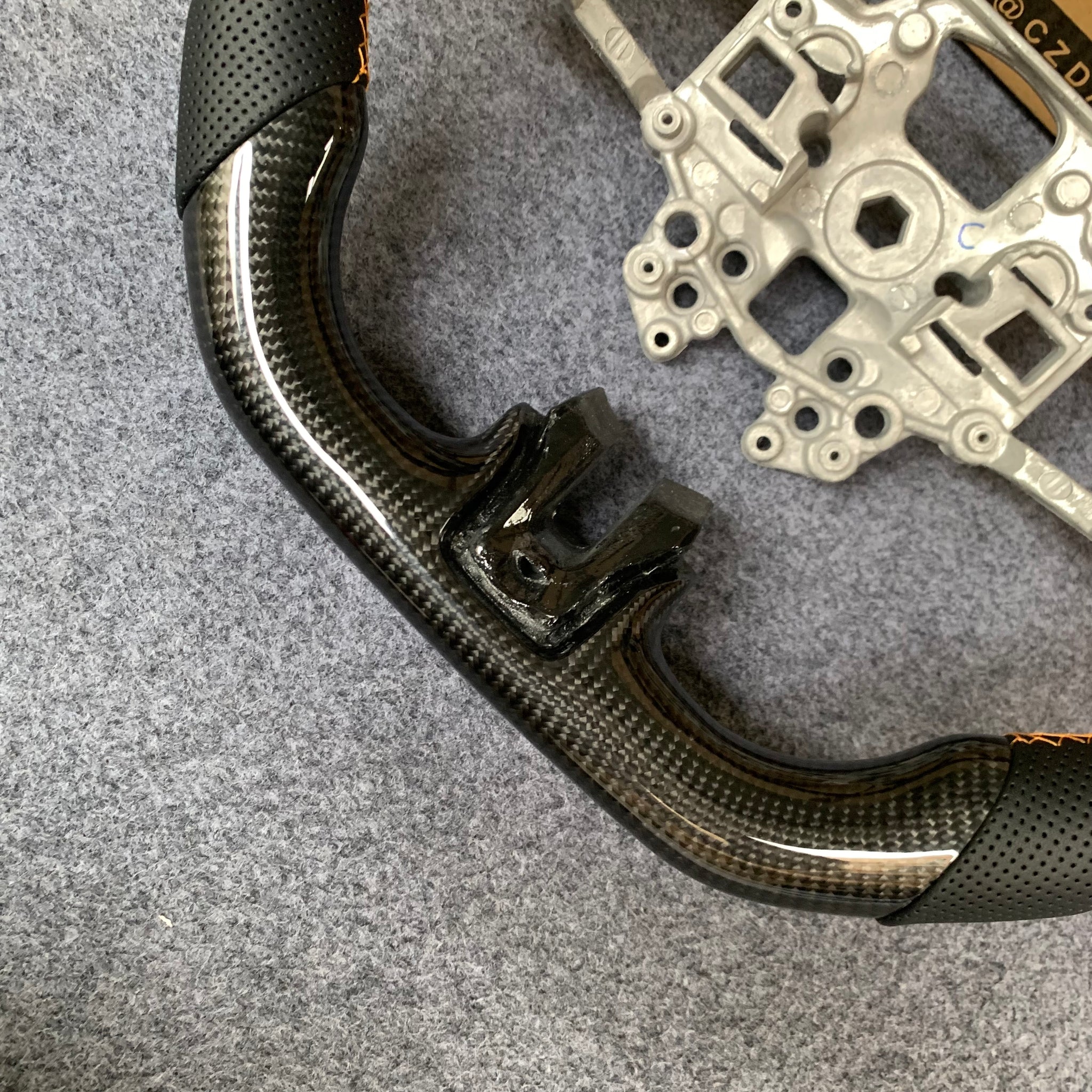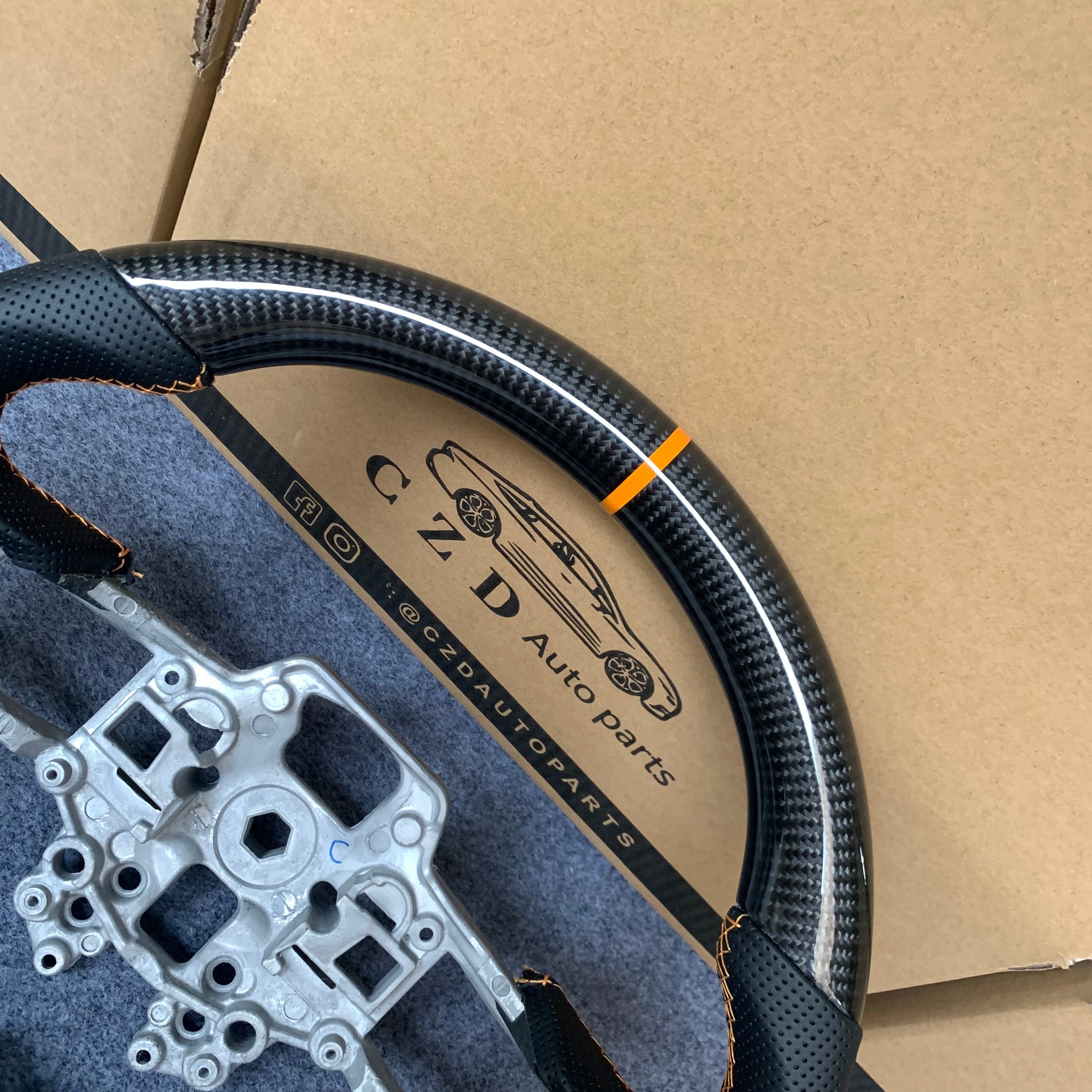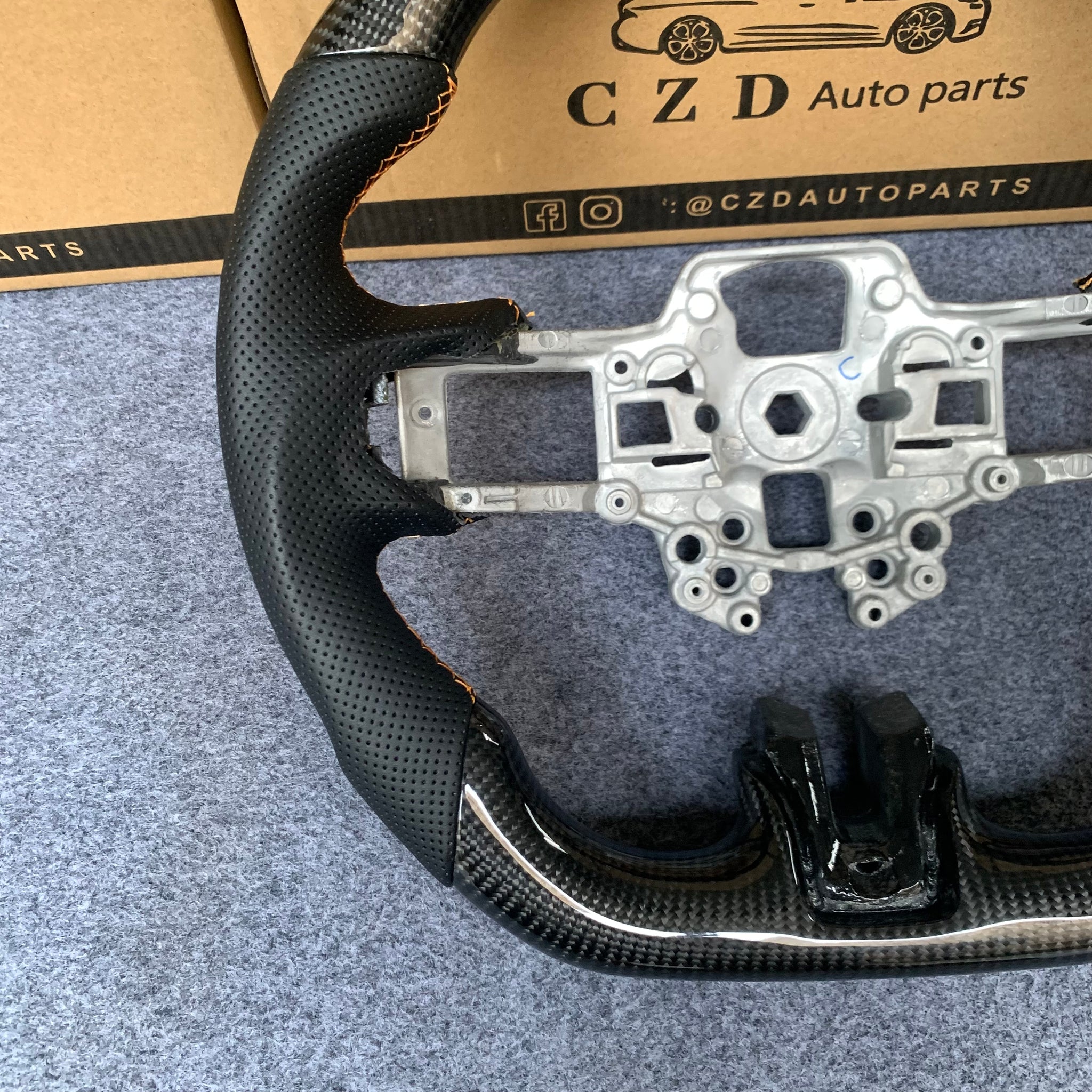 CZD auto parts for Ford Mustang 2018-2022 carbon fiber steering wheel with black perforated leather side