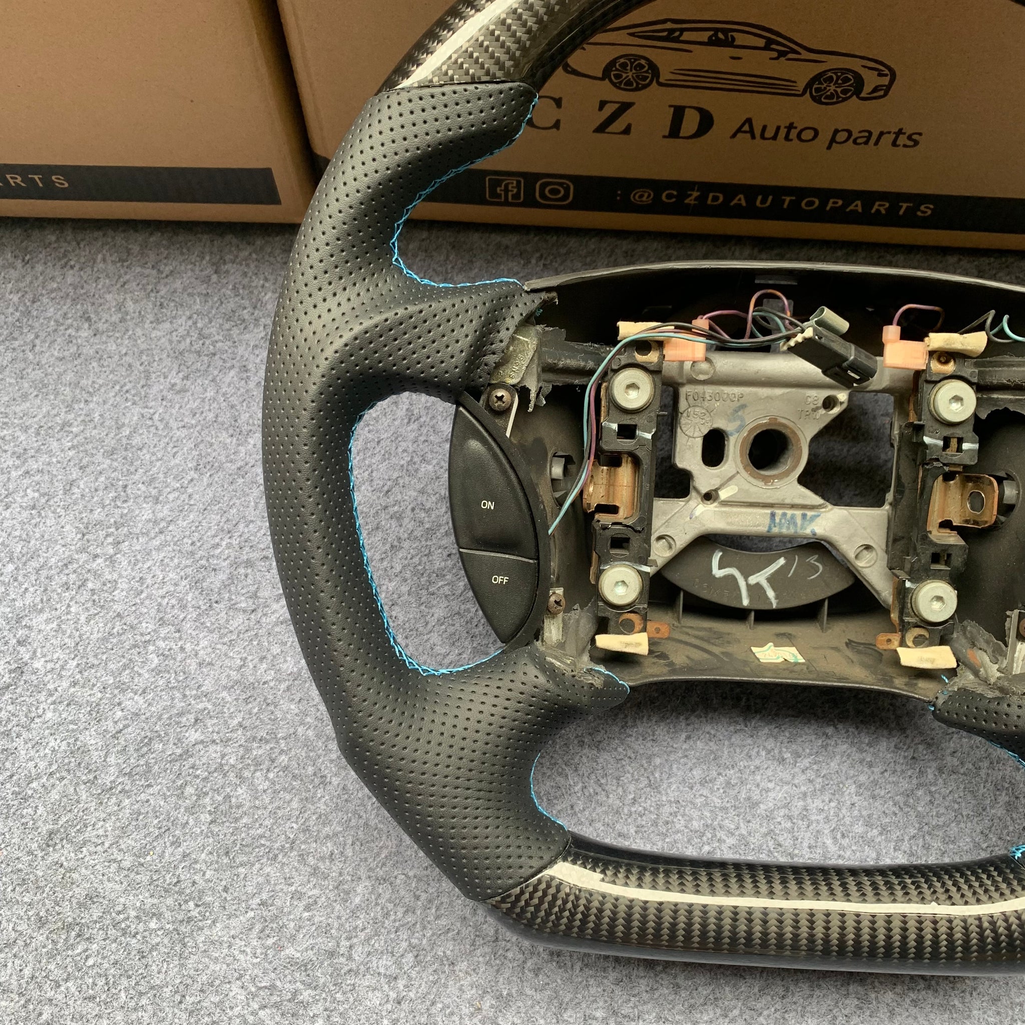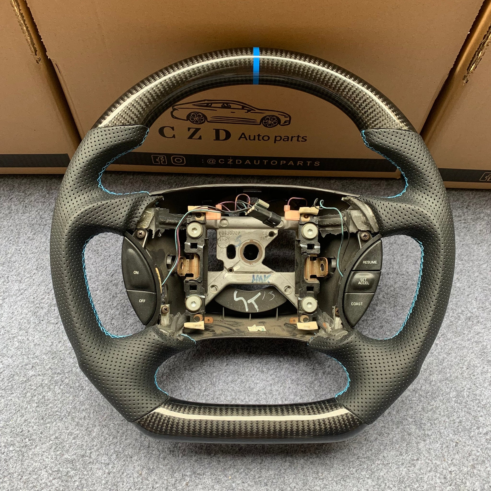 CZD auto parts for Ford Mustang GT Cobra SVT Saleen Roush 1999-2004 carbon fiber steering wheel with blue stripe line