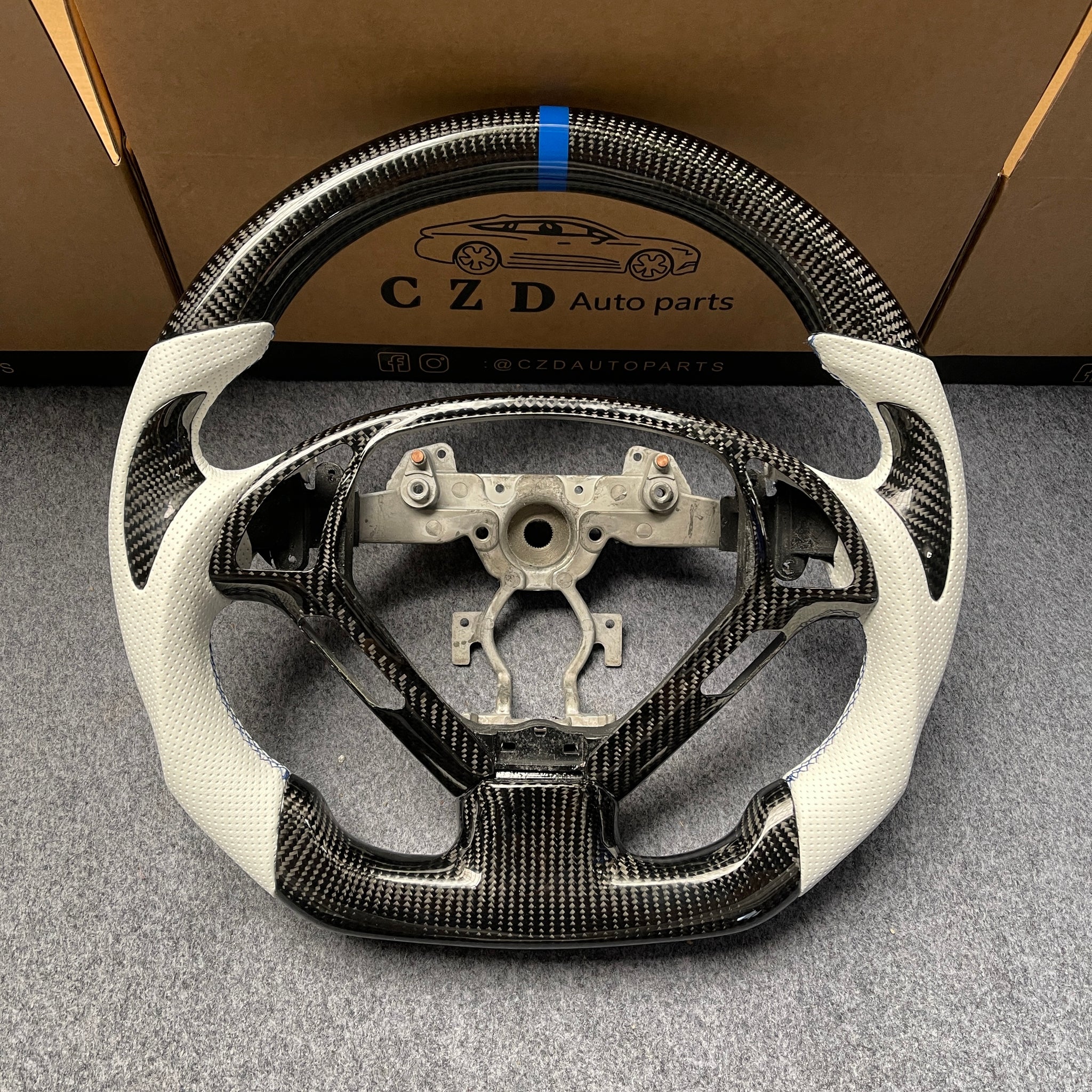 CZD auto parts for Infiniti EX35 EX37 2008-2017 carbon fiber steering wheel with gloss black thumb grips
